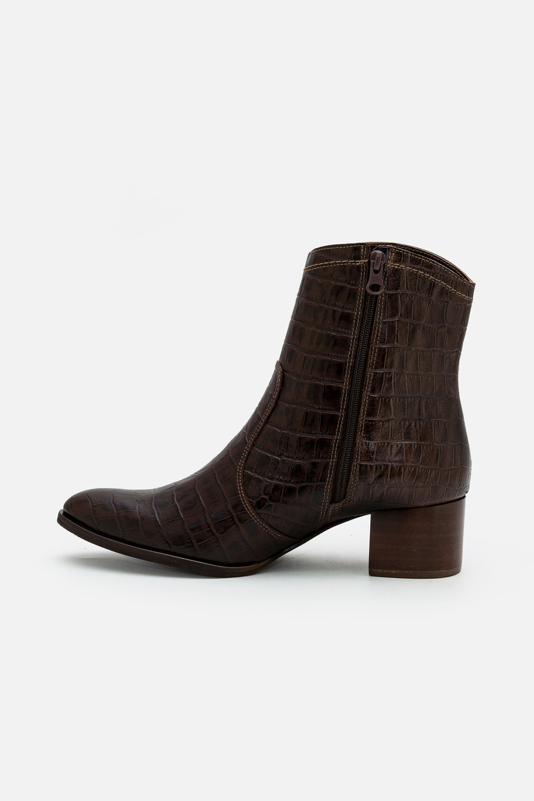 Com presença marcante e acabamento sofisticado, esta bota em couro com textura croco na tonalidade café traduz elegância contemporânea com personalidade. O relevo do material valoriza o design e adiciona profundidade ao visual, tornando o modelo uma escolha refinada para quem busca diferenciação com discrição.