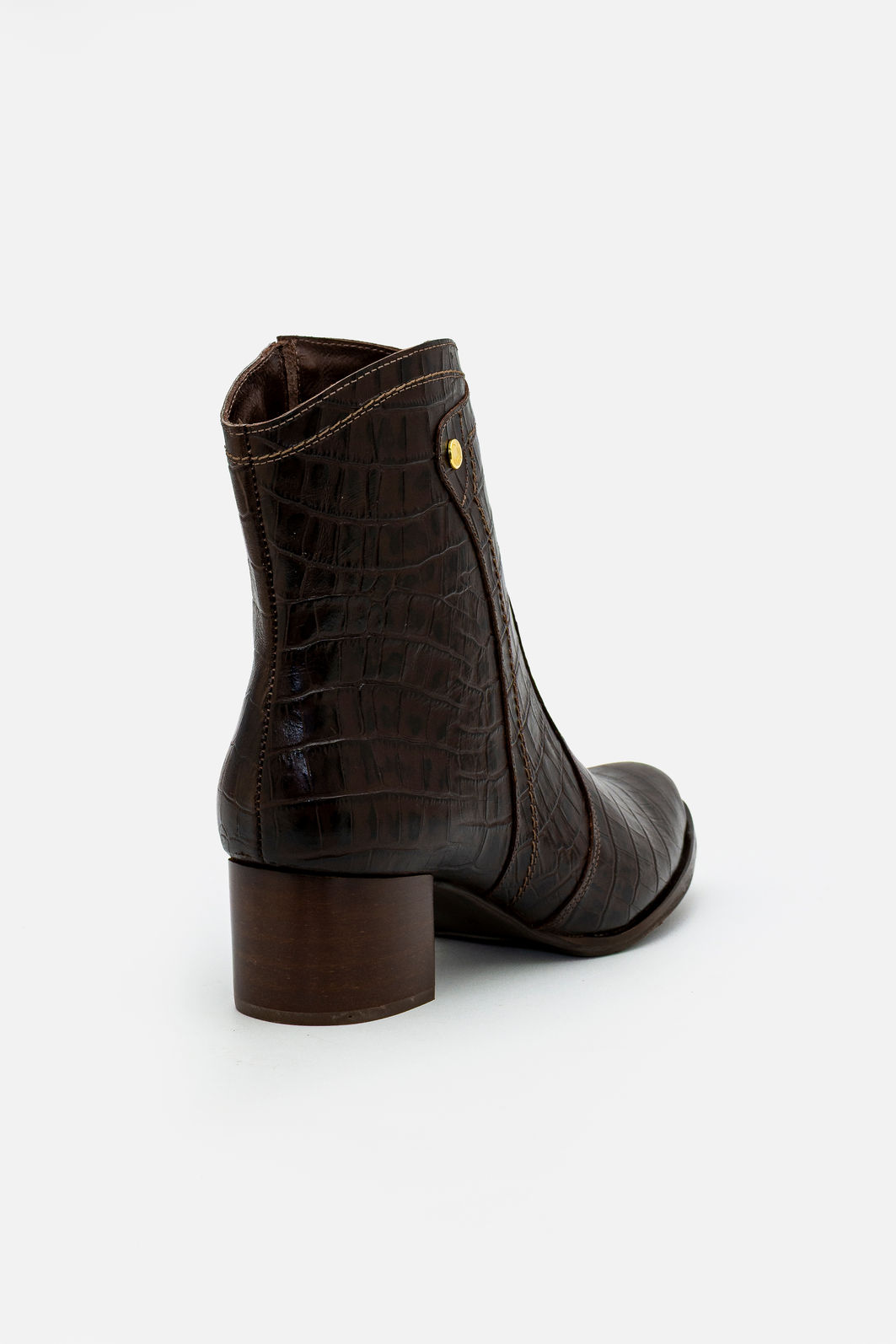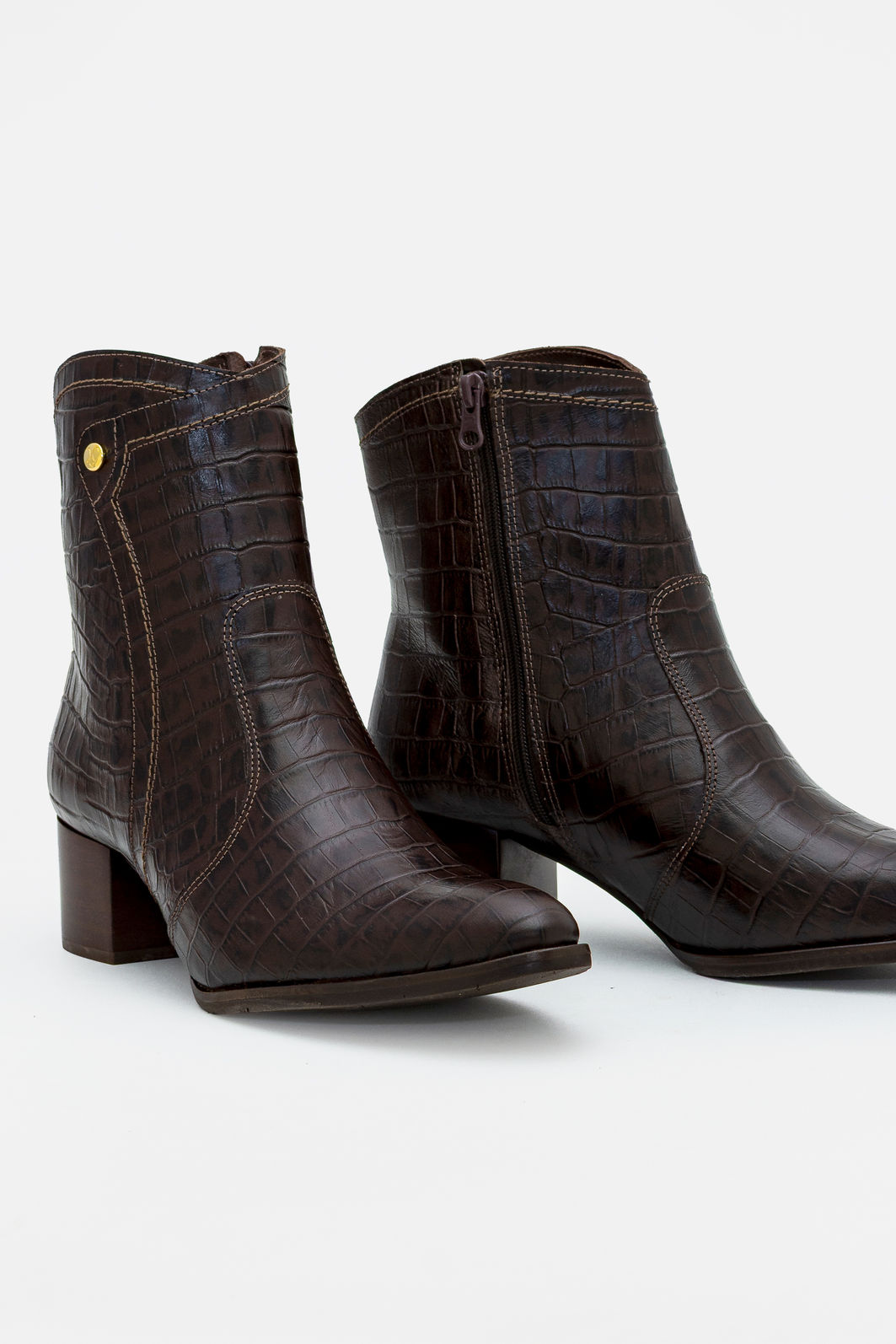 O salto bloco proporciona equilíbrio e conforto ao caminhar, garantindo estabilidade ao longo do dia sem abrir mão da estética elegante. O cano médio abraça o tornozelo com ajuste preciso, enquanto o acabamento impecável revela atenção aos detalhes em cada costura.