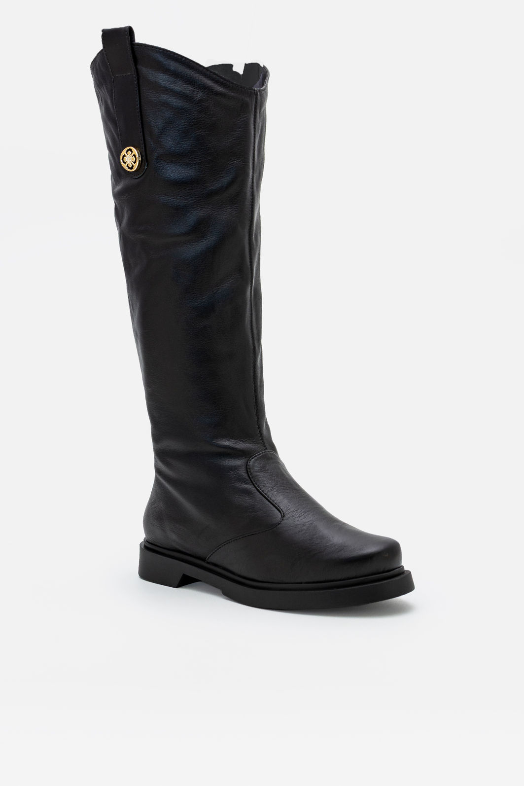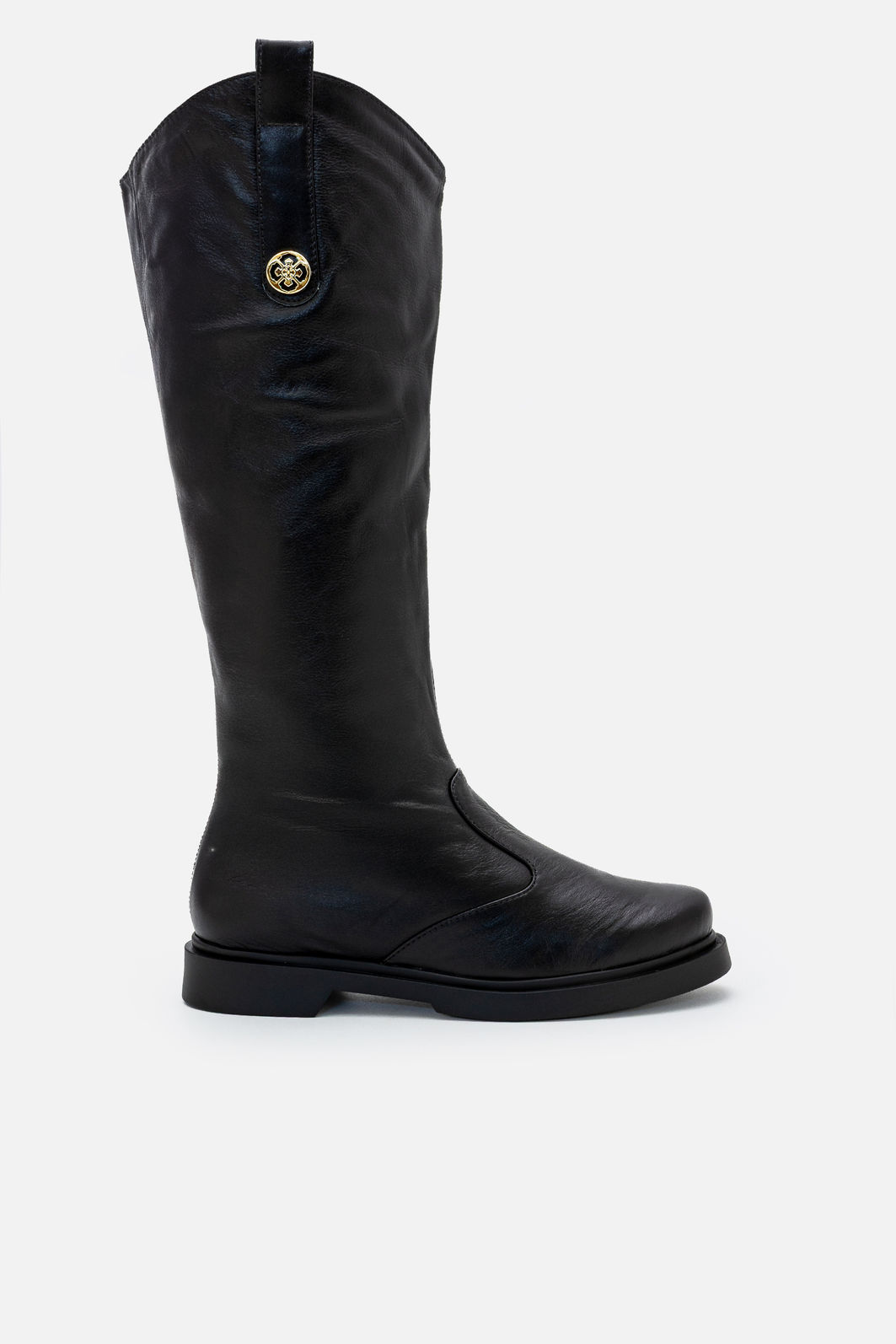 Confeccionada em couro legítimo, apresenta textura macia e acabamento de alta qualidade, que proporciona durabilidade e aparência impecável ao longo do uso. O cano alto possui caimento elegante e estrutura confortável, adaptando-se naturalmente à perna. O detalhe metálico discreto na lateral adiciona um toque de sofisticação ao visual, elevando o design clássico com um elemento contemporâneo.