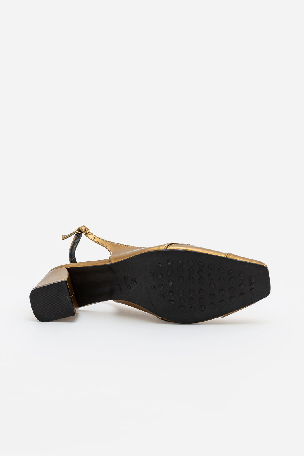 O Chanel Bronze com salto bloco é a tradução perfeita de sofisticação moderna. Seu design atemporal ganha um toque glamouroso com o acabamento metalizado, que reflete elegância em cada detalhe. Um modelo que eleva instantaneamente qualquer produção, do trabalho a eventos noturnos.