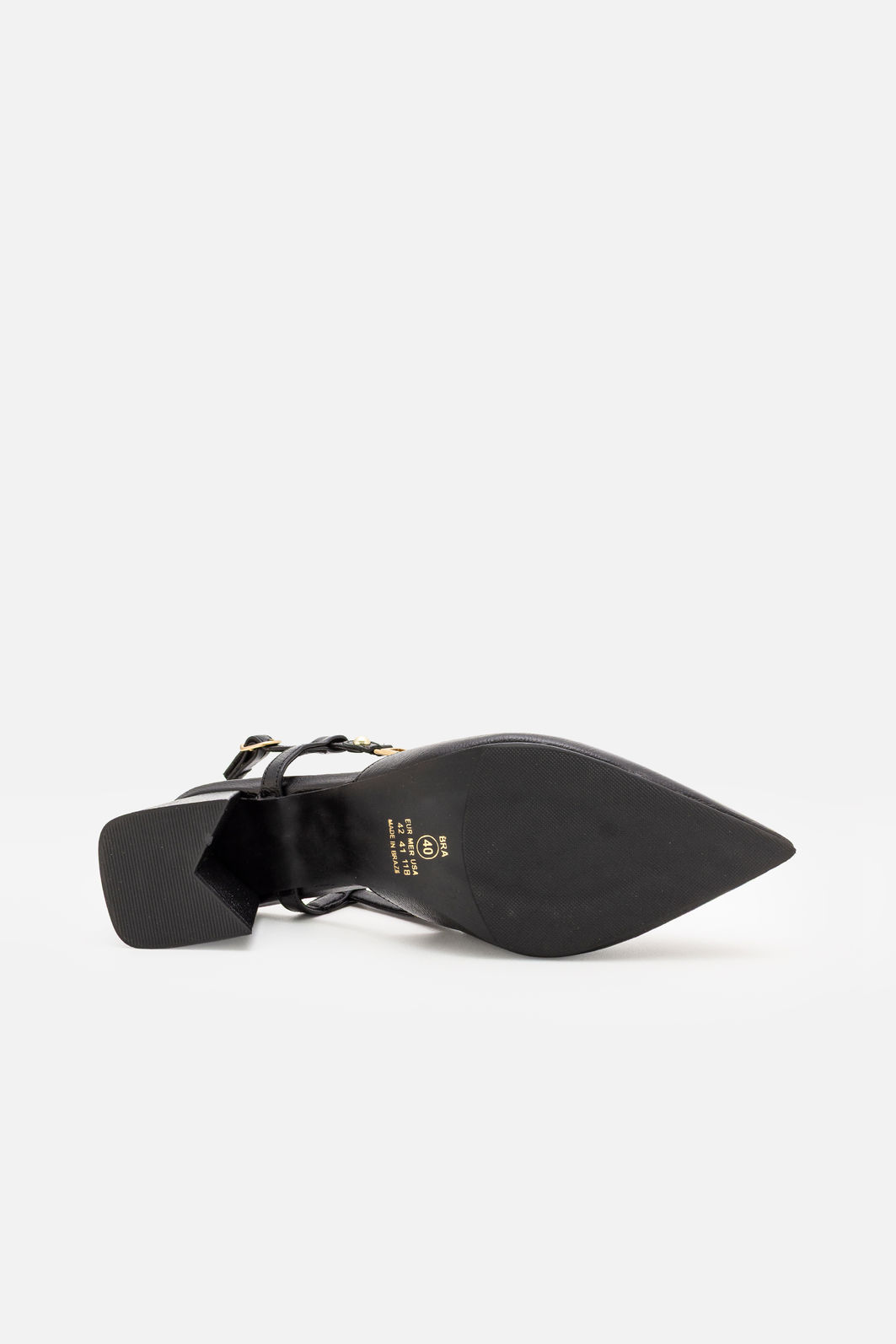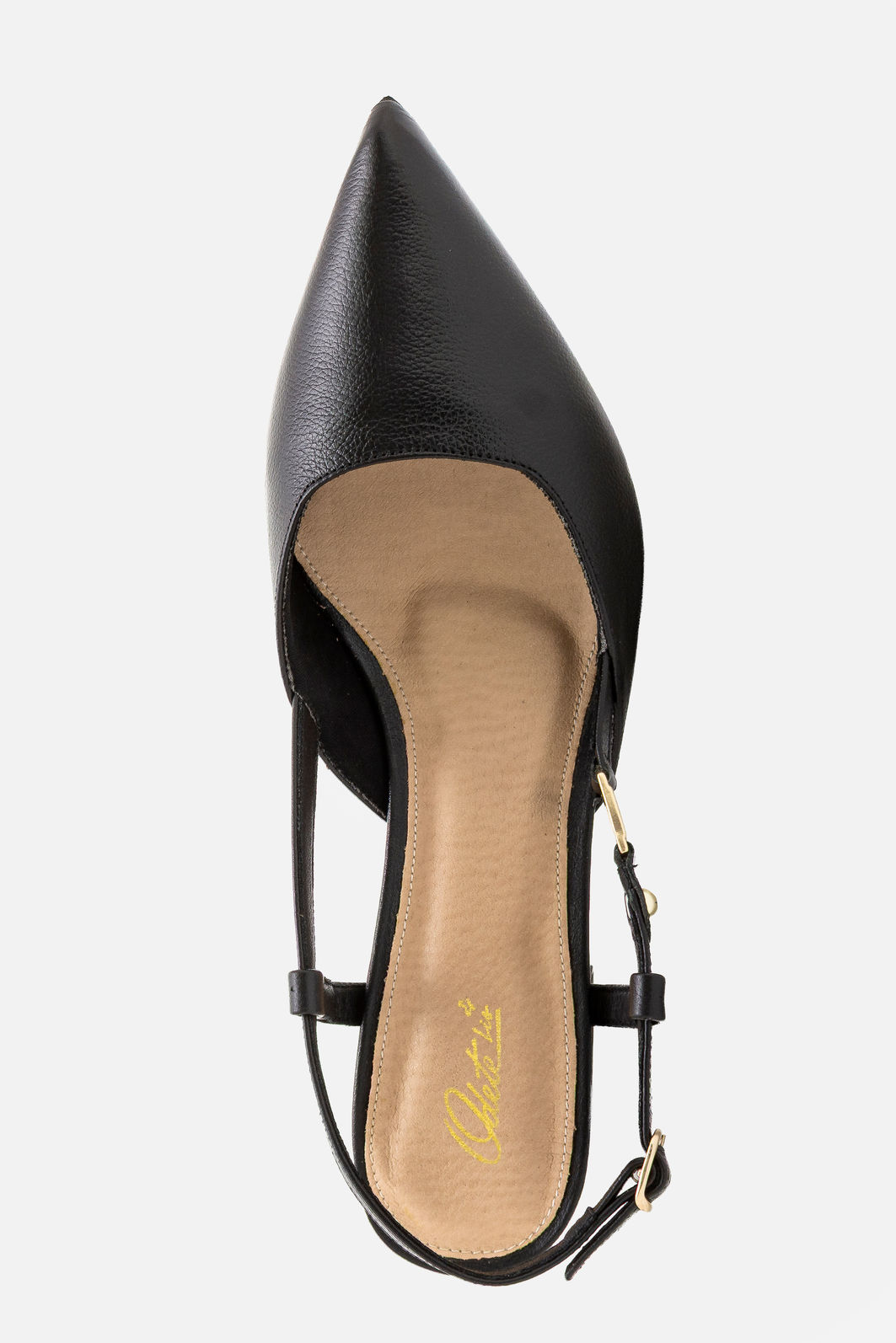 A chanel em couro preto apresenta um design elegante e preciso, pensado para quem busca sofisticação aliada ao conforto. O bico fino alonga o visual com naturalidade, criando uma estética refinada e versátil para diferentes ocasiões. O couro de textura suave entrega um acabamento impecável, valorizando o modelo e garantindo durabilidade.