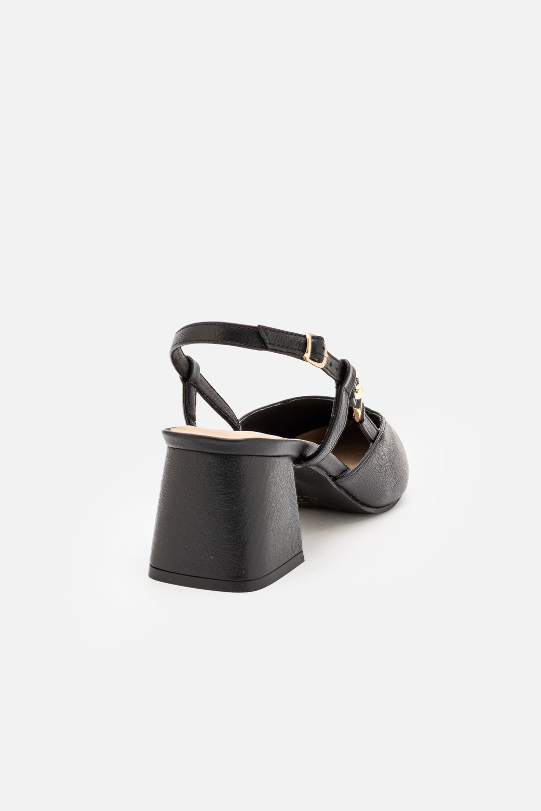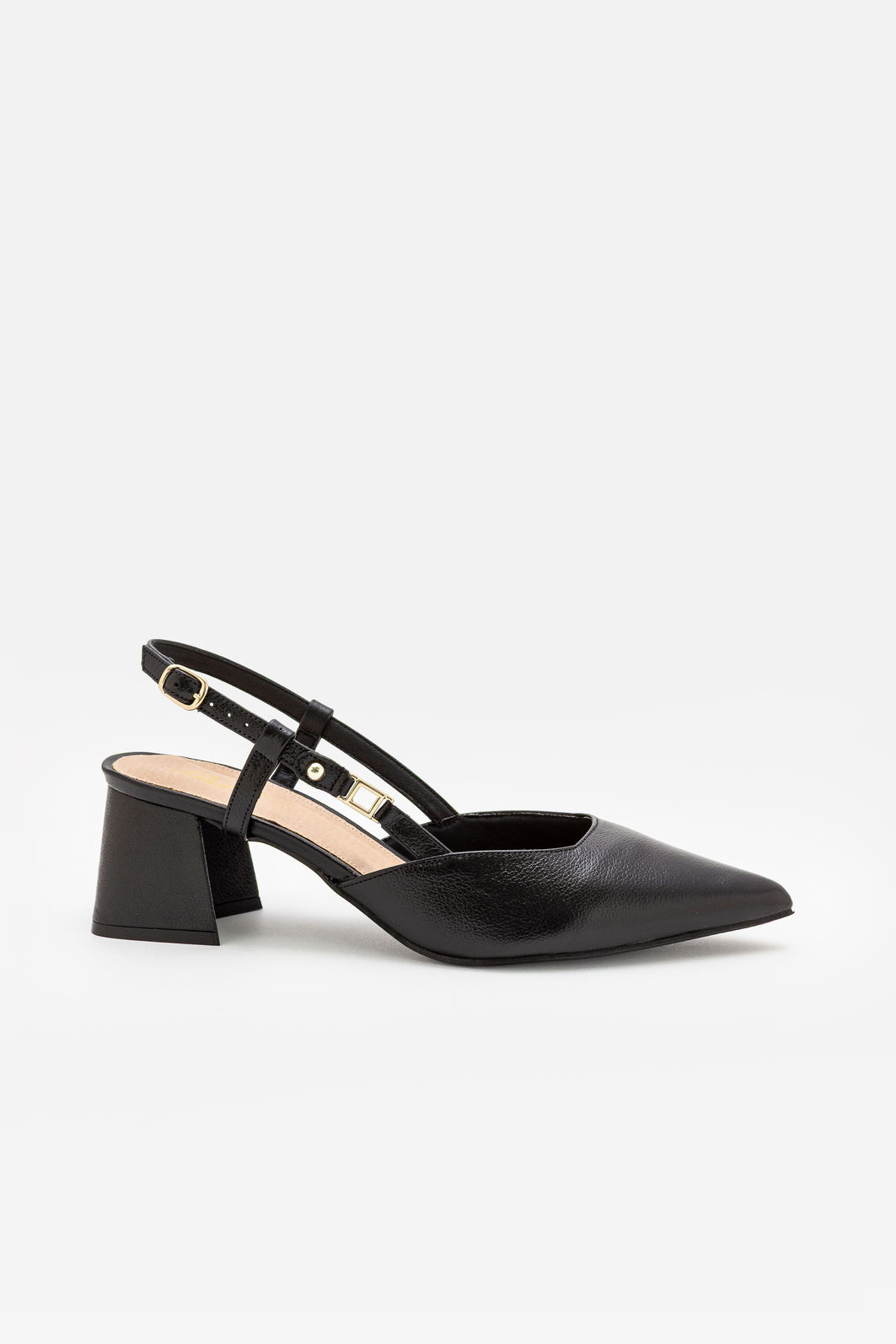 O salto bloco confere estabilidade superior, proporcionando segurança e conforto ao caminhar. A tira traseira ajustável permite um encaixe firme e bem-acabado, enquanto as laterais abertas trazem leveza e delicadeza ao desenho.