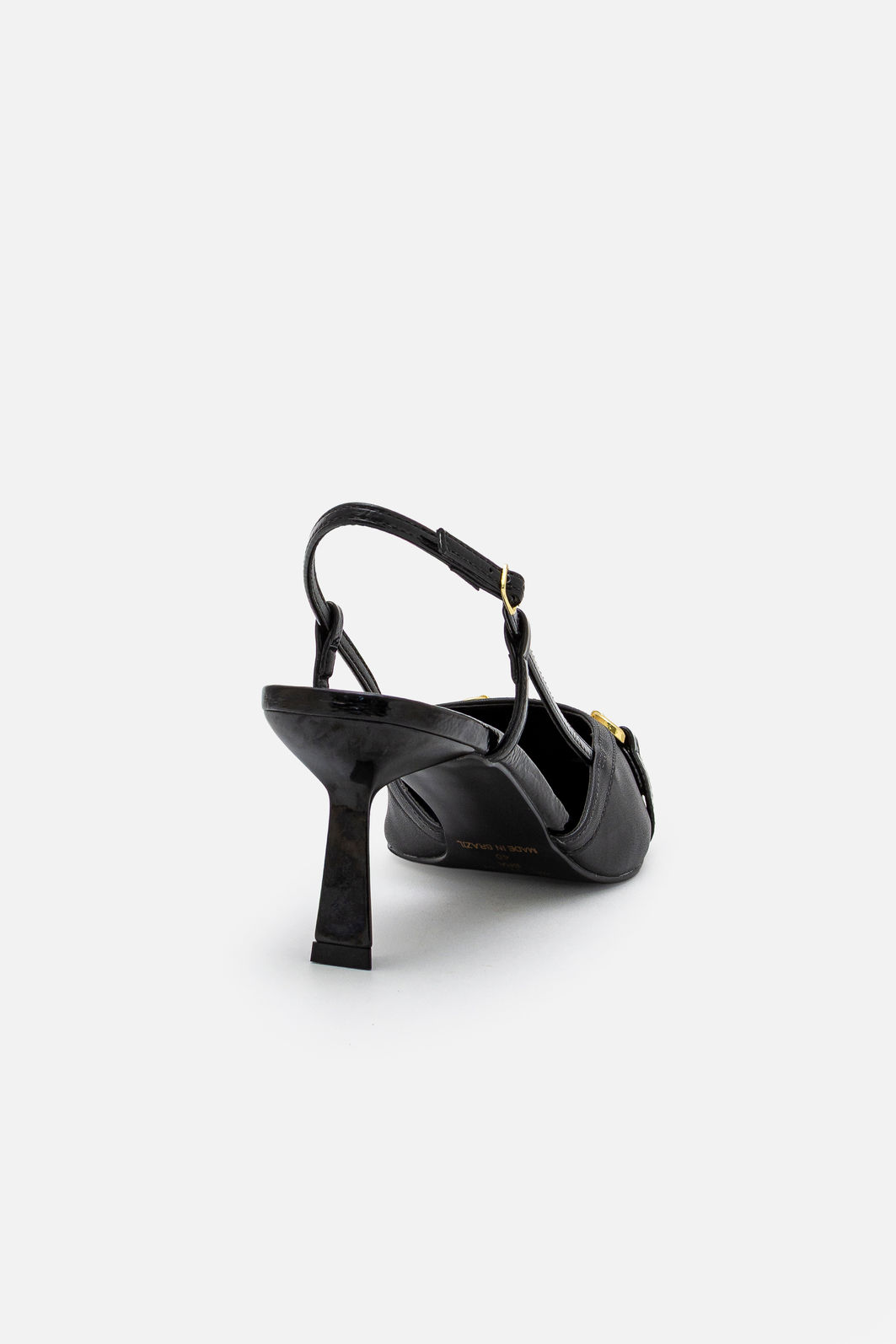 Confeccionado em material sintético de alta qualidade, apresenta acabamento impecável e visual uniforme, com toque macio e estrutura firme. O salto geométrico oferece estabilidade e segurança ao caminhar, equilibrando elegância e conforto ao longo do dia. A tira traseira ajustável garante melhor encaixe e praticidade no uso.