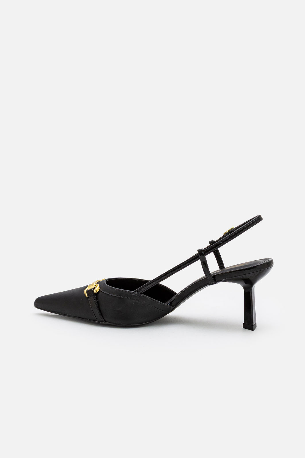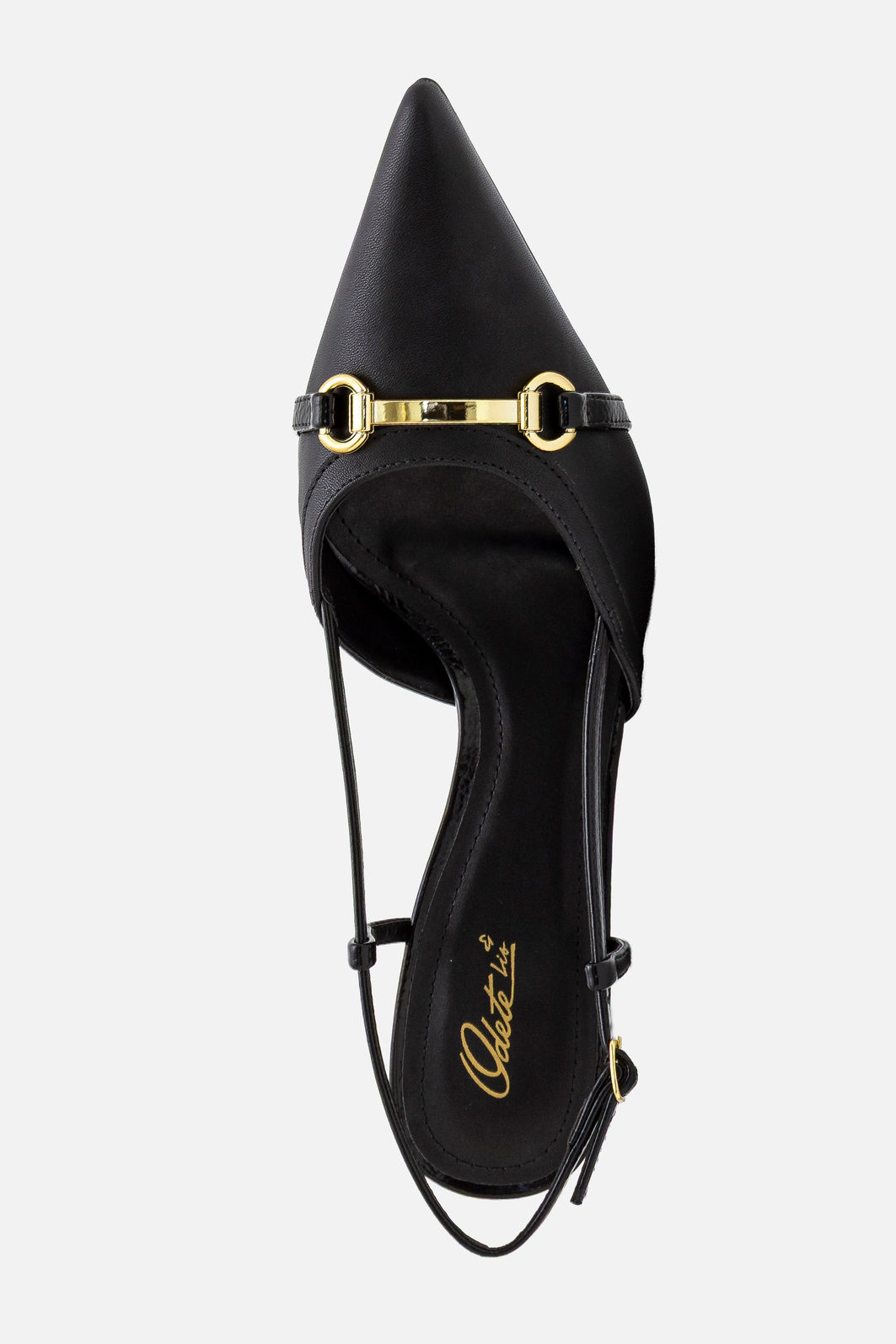 Elegante na medida certa, este chanel preto com salto geométrico traduz sofisticação contemporânea com um toque de personalidade. O design de bico fino alonga a silhueta e valoriza o visual, enquanto o enfeite metálico no cabedal adiciona um ponto de luz discreto e refinado, ideal para quem aprecia detalhes bem resolvidos.