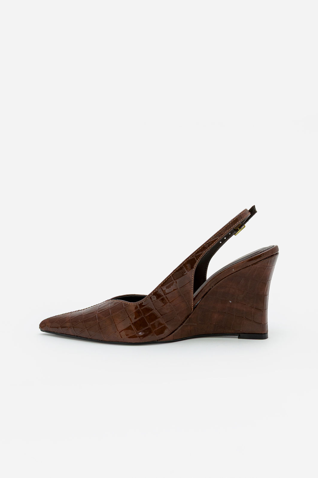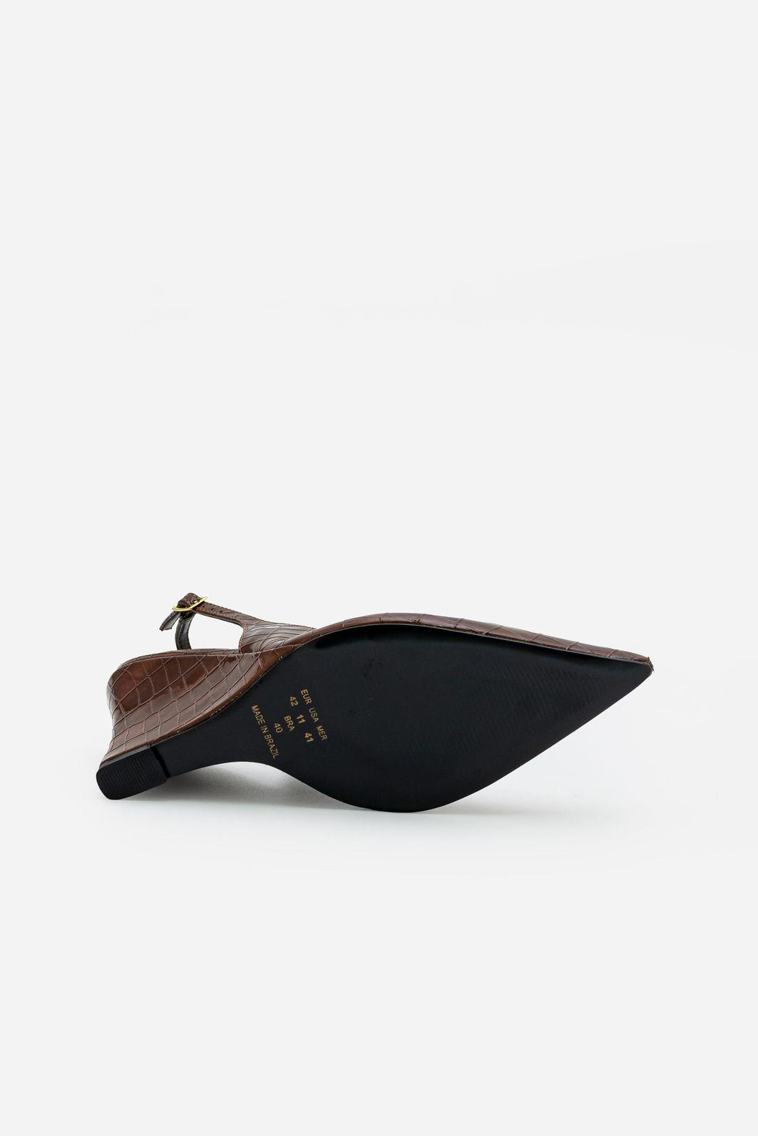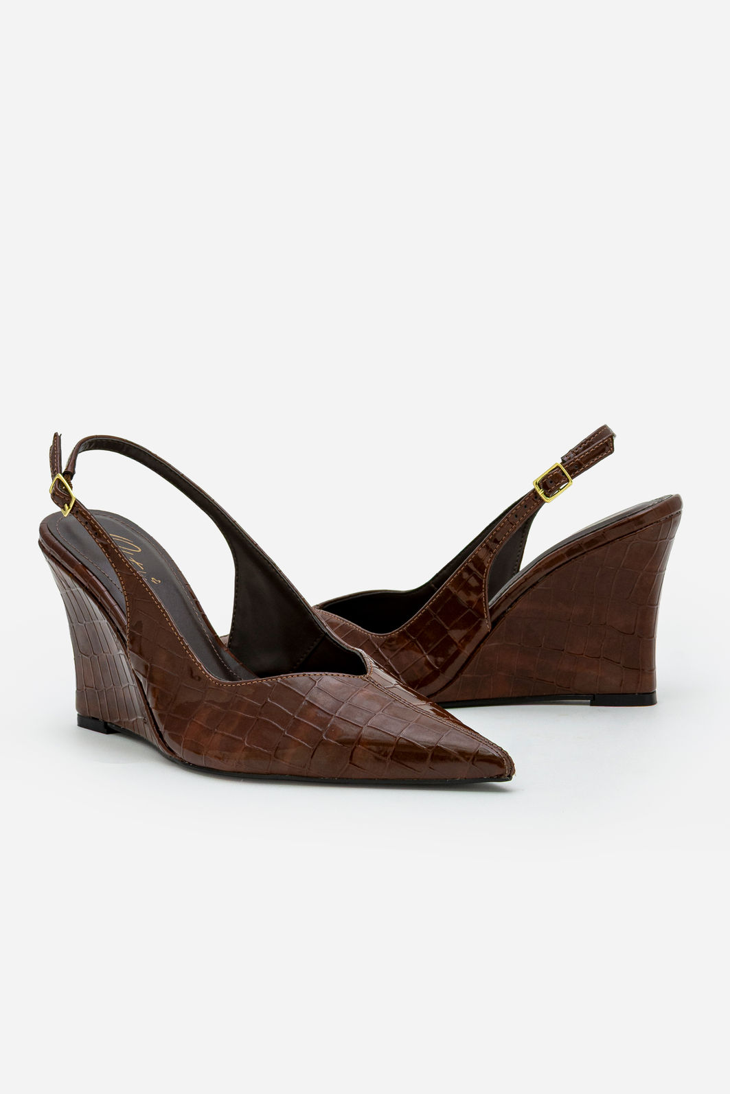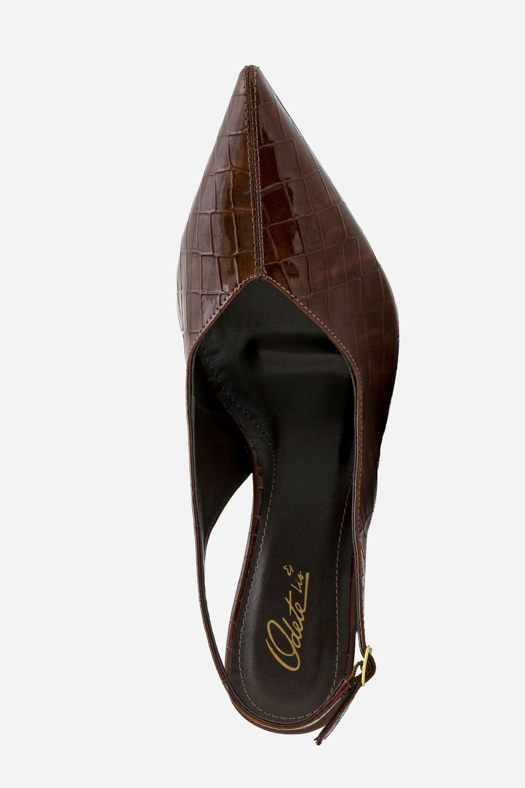 O chanel marrom com textura croco e salto anabela é a escolha ideal para quem busca elegância com personalidade. O acabamento texturizado traz sofisticação ao visual, enquanto o design slingback valoriza o pé com leveza e feminilidade. O bico fino alonga a silhueta e reforça a proposta refinada do modelo.