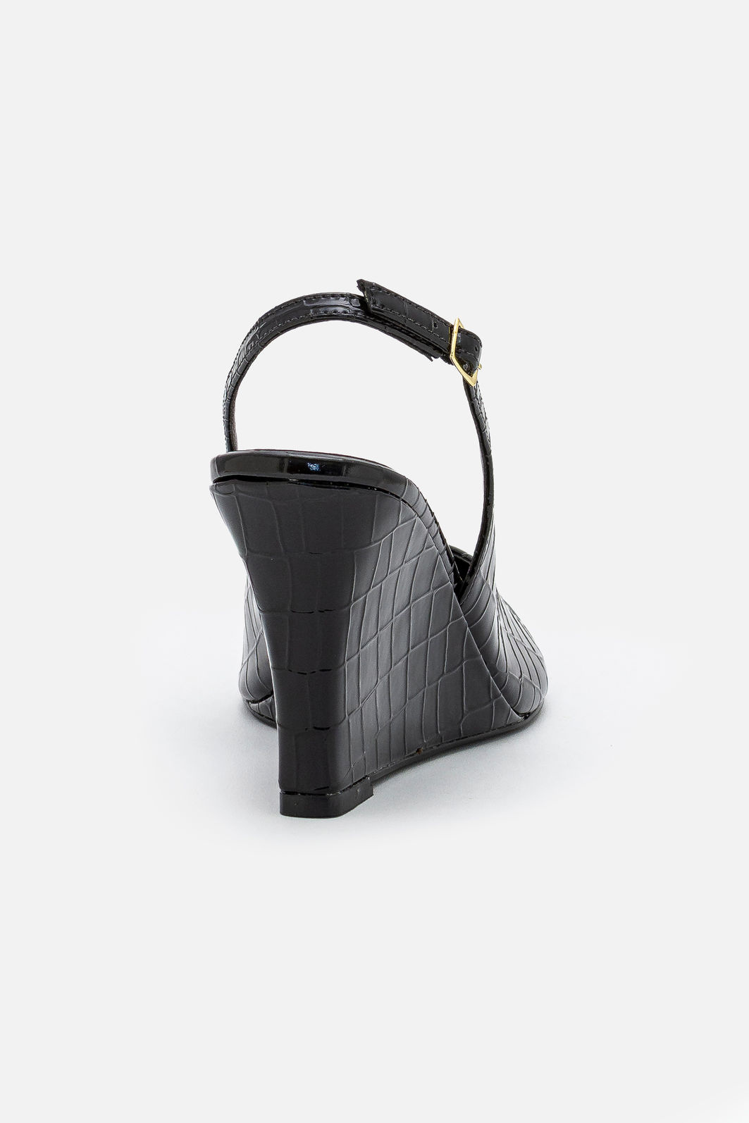 Elegante, atual e extremamente confortável, este chanel feminino em acabamento croco preto foi criado para mulheres que exigem presença e sofisticação em cada detalhe. O design de bico fino confere um visual alongado e refinado, enquanto a textura croco adiciona personalidade e um toque contemporâneo ao clássico preto.