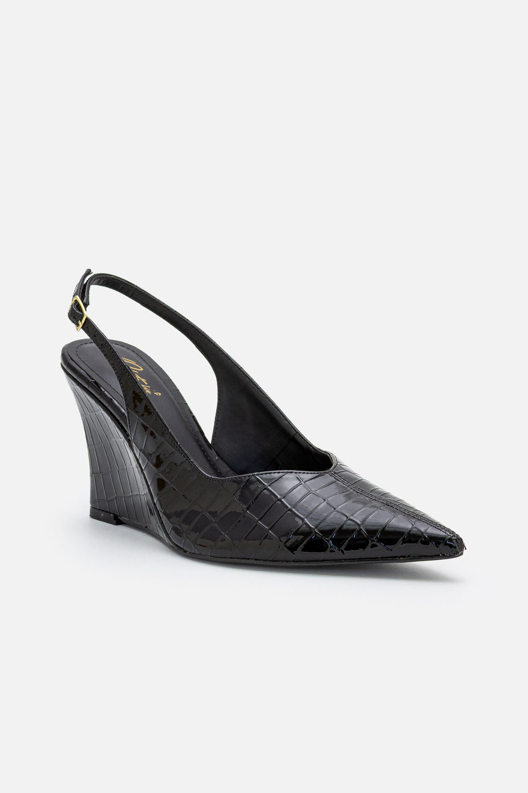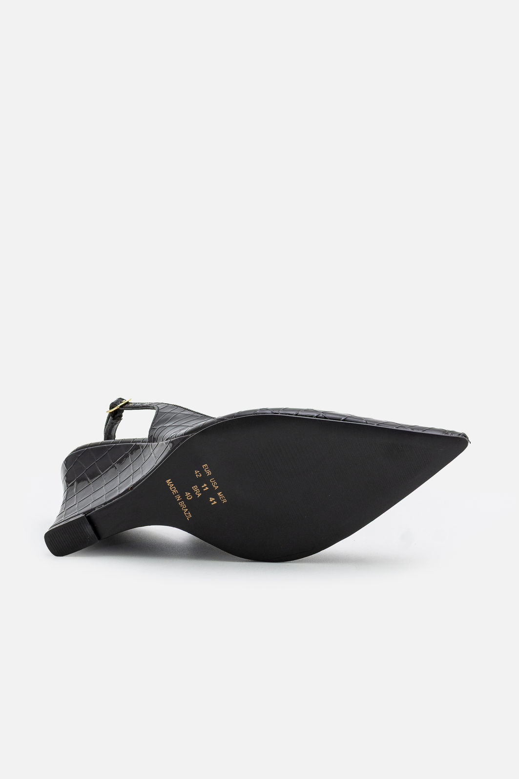 A tira traseira com fivela ajustável assegura encaixe preciso, mantendo o pé firme sem apertar. O acabamento impecável evidencia o cuidado na escolha dos materiais e no processo de fabricação, resultando em um calçado elegante, resistente e visualmente sofisticado.