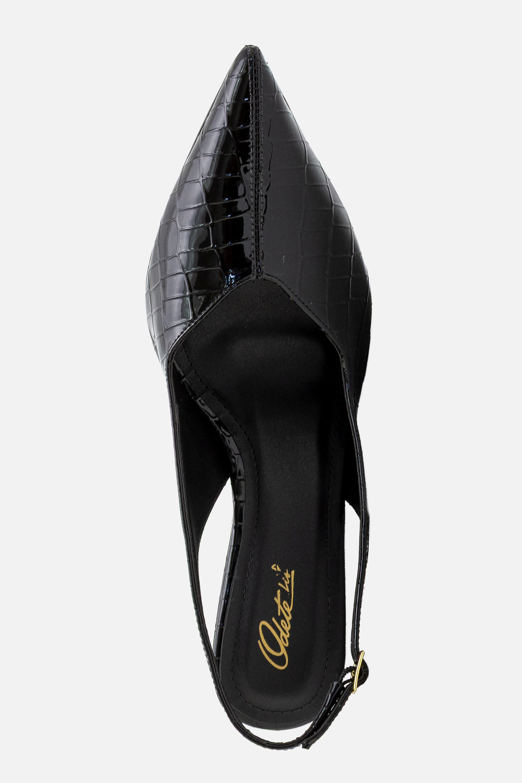 Elegante, atual e extremamente confortável, este chanel feminino em acabamento croco preto foi criado para mulheres que exigem presença e sofisticação em cada detalhe. O design de bico fino confere um visual alongado e refinado, enquanto a textura croco adiciona personalidade e um toque contemporâneo ao clássico preto.