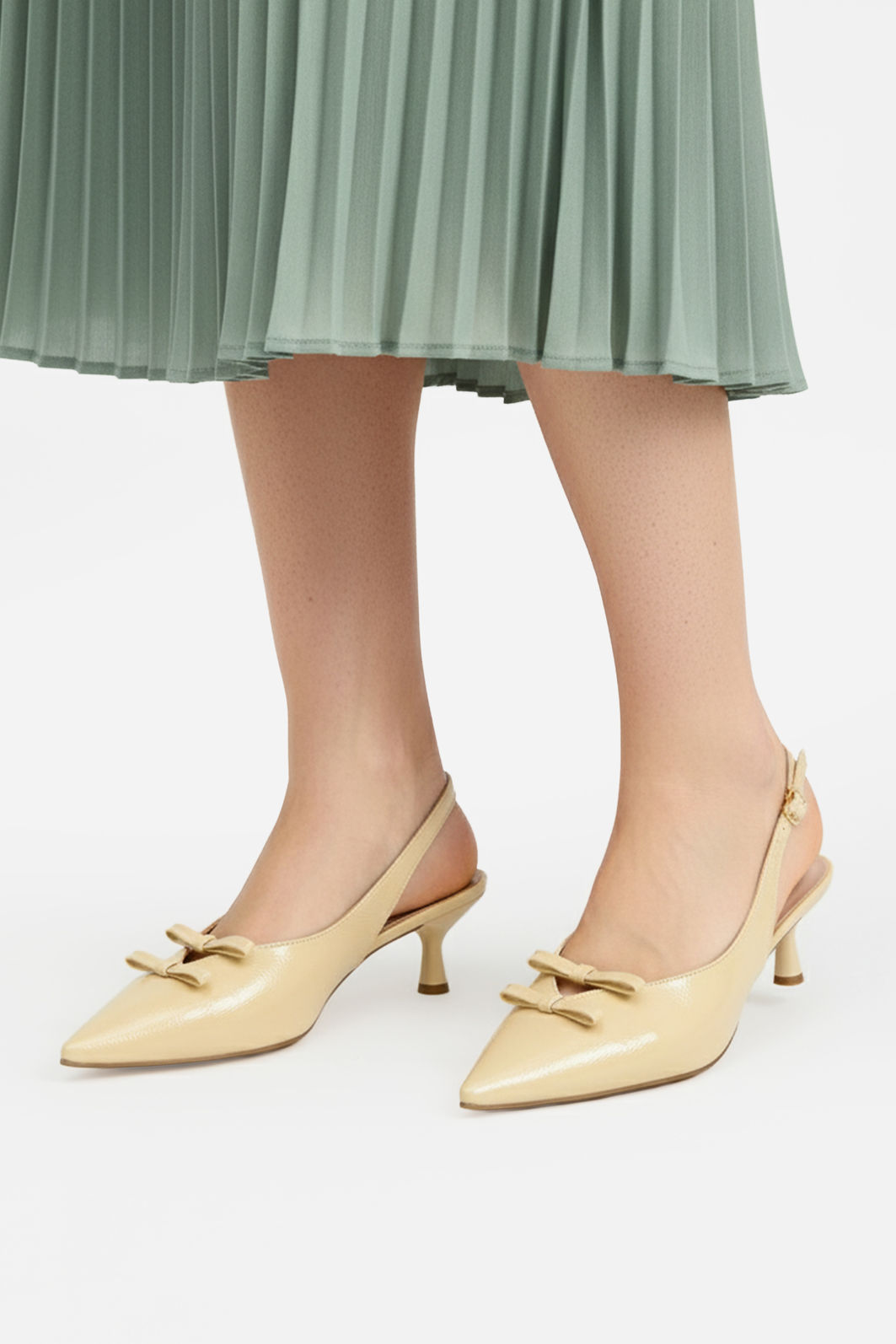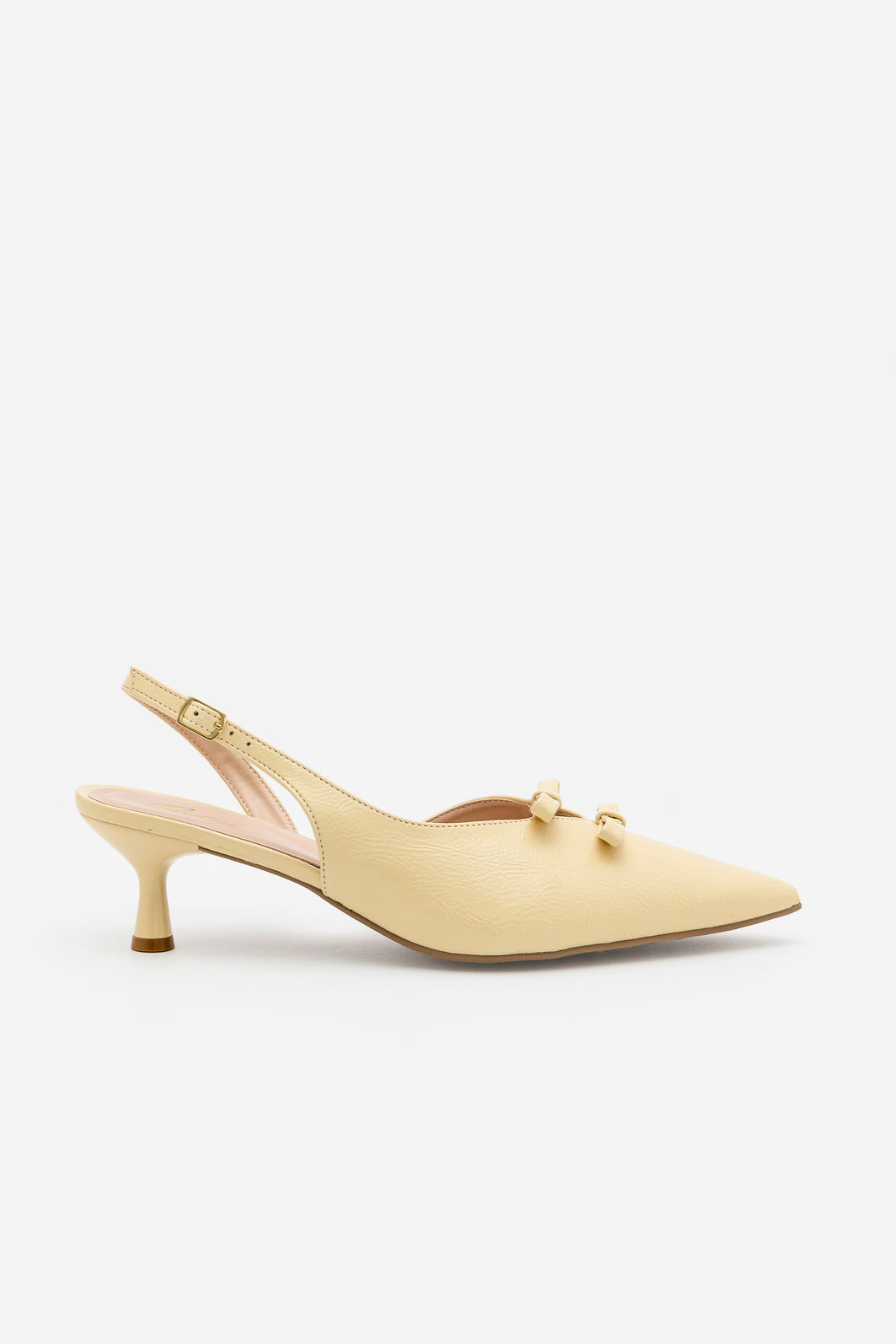 Elegância e charme se unem neste Chanel em amarelo claro, perfeito para realçar produções com sofisticação. O bico fino alonga a silhueta e valoriza o visual, enquanto os delicados laços aplicados no cabedal conferem um toque feminino e refinado.