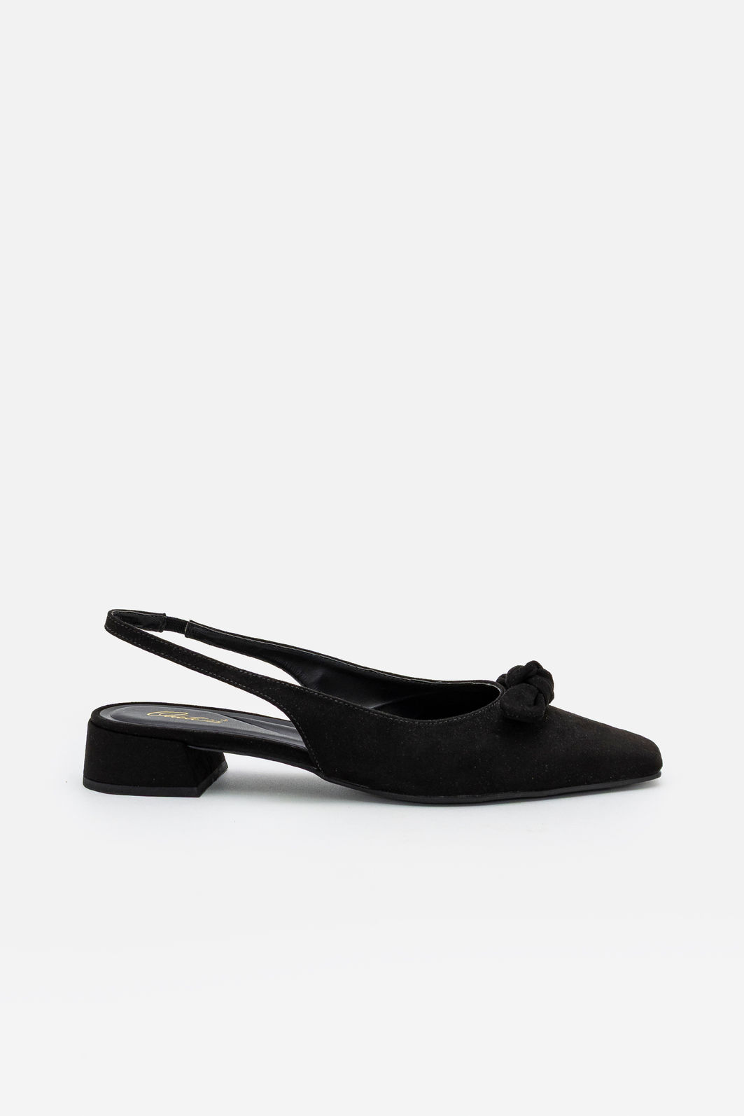 Confeccionado em camurça de toque macio e acabamento elegante, o modelo apresenta textura sofisticada que valoriza ainda mais a tonalidade preta. A silhueta minimalista é complementada pela tira traseira que se ajusta suavemente ao calcanhar, proporcionando leveza e praticidade ao calçar.
