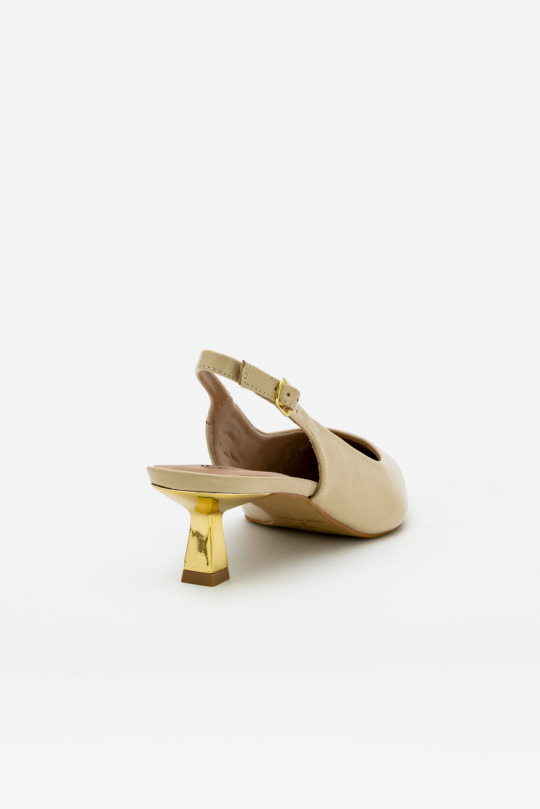 A tira traseira com fivela ajustável proporciona encaixe seguro e confortável, adaptando-se com facilidade ao pé. O salto cromado acrescenta um toque moderno e exclusivo ao modelo, elevando o design com sofisticação. A palmilha macia garante conforto durante o uso, ideal para acompanhar diferentes momentos do dia com leveza.