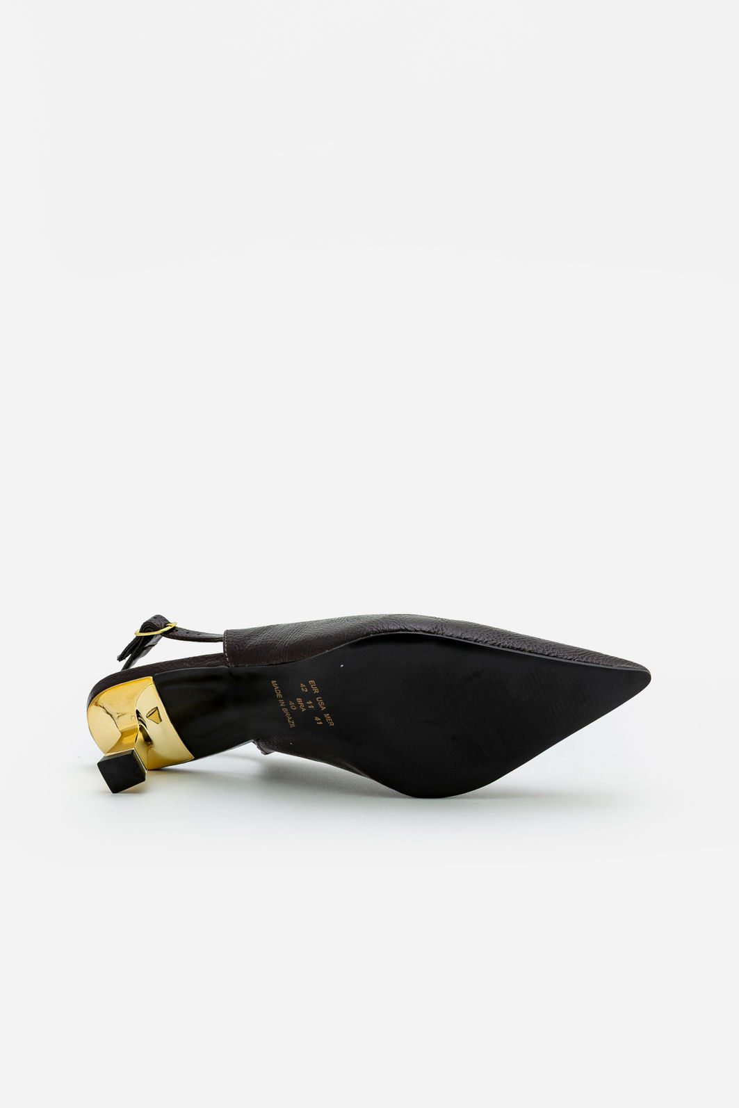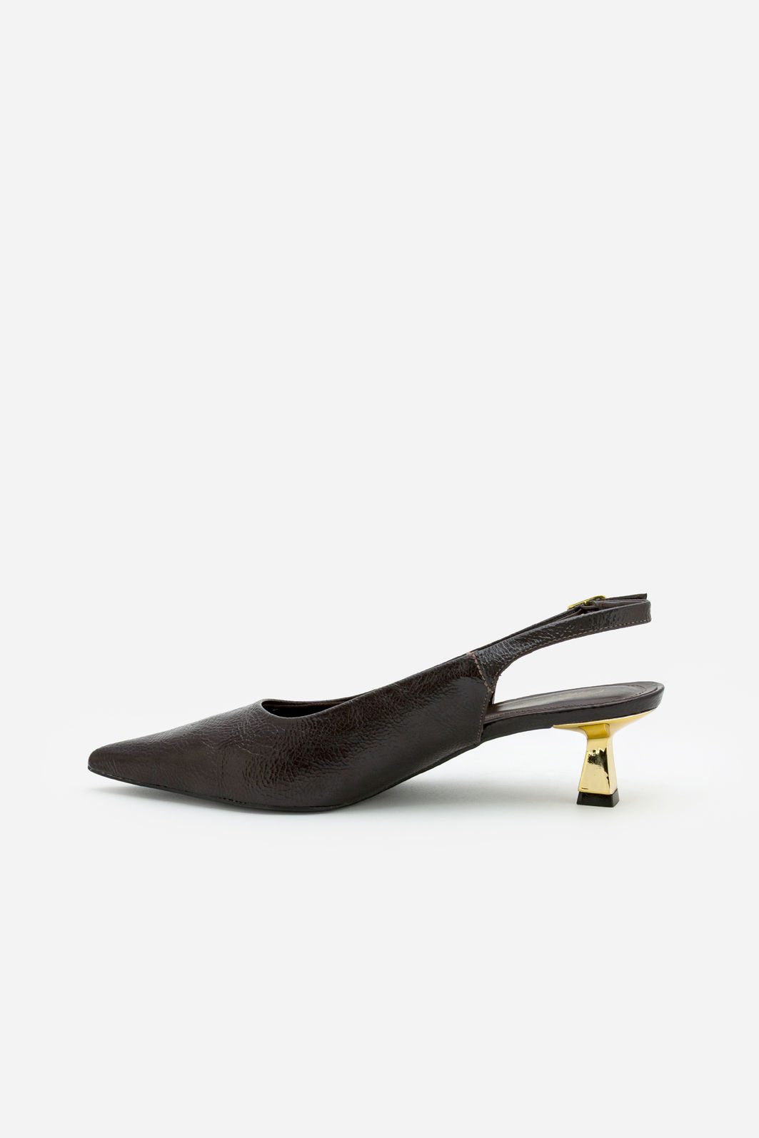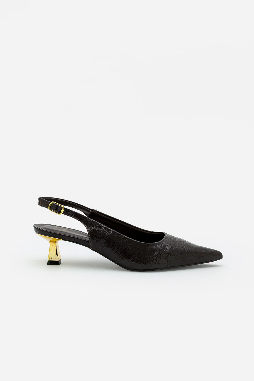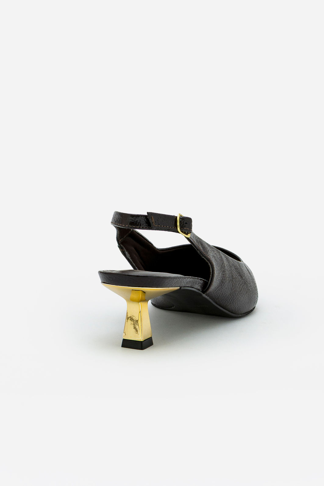 A tira traseira com fivela ajustável proporciona encaixe seguro e confortável, adaptando-se com precisão. O salto cromado é o grande diferencial, trazendo modernidade e sofisticação ao visual sem abrir mão da estabilidade. A palmilha macia garante conforto ao longo do uso, ideal para acompanhar a rotina com leveza.