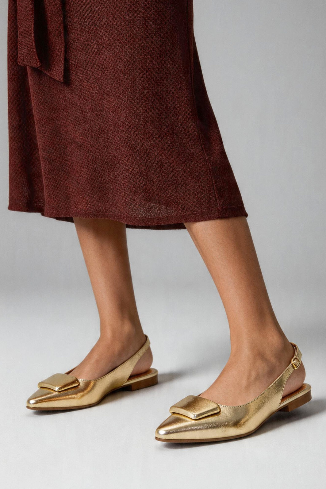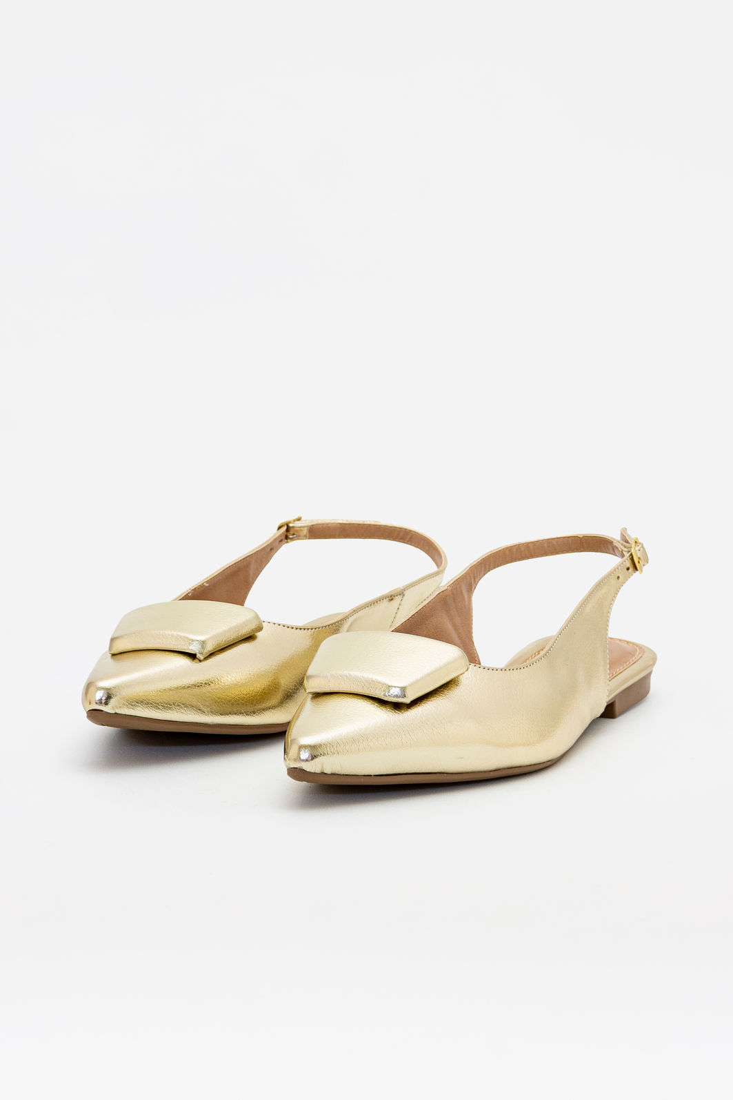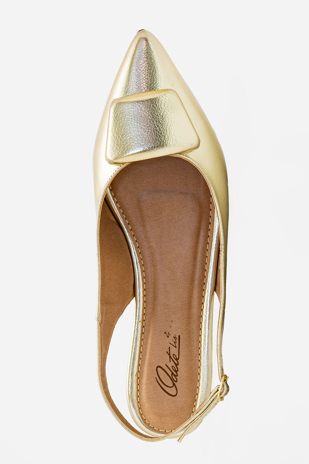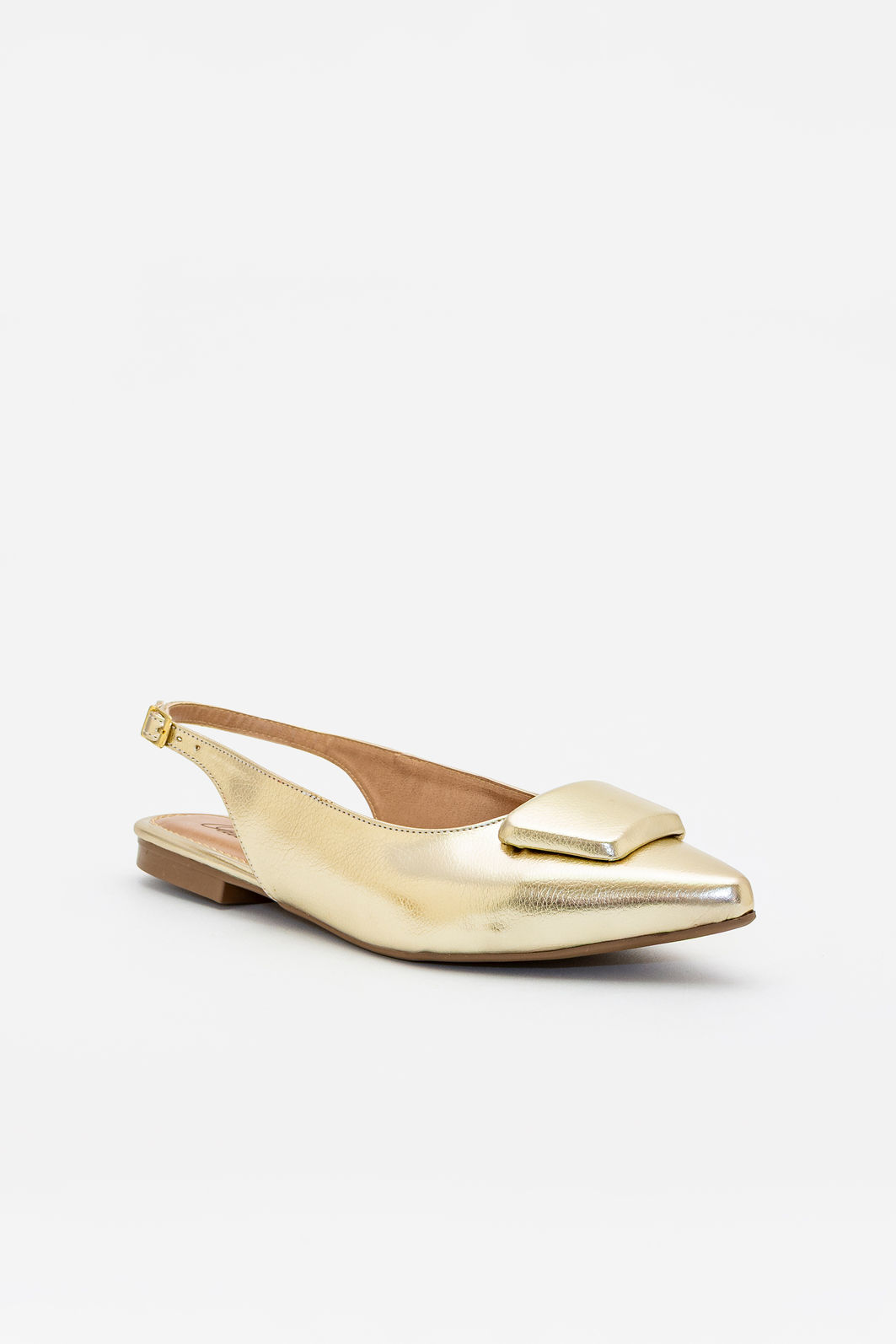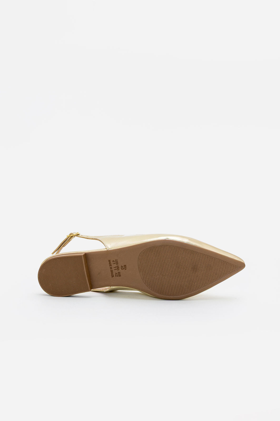 Produzido em material sintético com acabamento metalizado, apresenta visual refinado e textura suave, garantindo leveza e praticidade no uso diário. A tira traseira com fivela lateral permite regulagem precisa, proporcionando ajuste seguro e confortável. O bico levemente afinado contribui para um visual elegante e feminino, enquanto o salto rasteiro oferece estabilidade e conforto para acompanhar a rotina com tranquilidade.