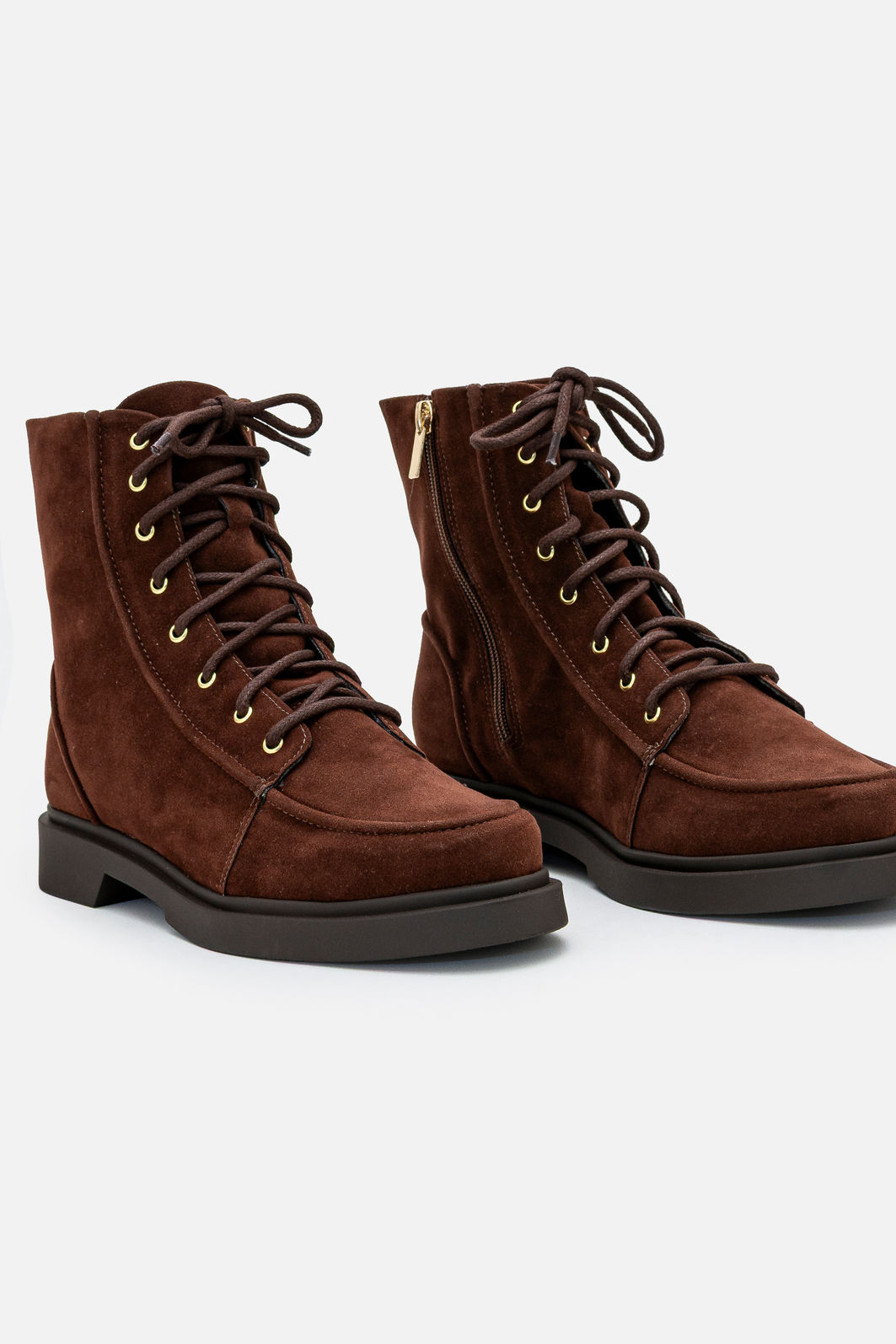 Confeccionado em camurça de alta qualidade, o modelo apresenta textura macia e acabamento sofisticado, que adiciona profundidade ao tom marrom e valoriza ainda mais o design do calçado. O fechamento em cadarço permite ajuste perfeito aos pés, enquanto os ilhós metálicos reforçam o estilo moderno e a durabilidade da peça.