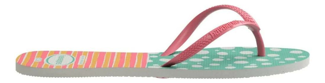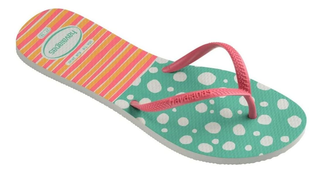 A Havaianas Flat Mix Pink combina charme, leveza e um visual descontraído que traduz perfeitamente o espírito do verão. O solado estampado com mix de cores e padrões cria um efeito alegre e atual, enquanto as tiras finas em tom pink garantem feminilidade e delicadeza ao design.
