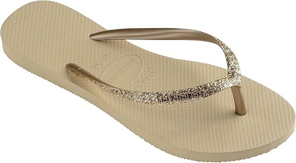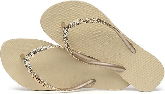 A Havaianas Slim Glitter II Ouro une brilho, leveza e elegância em um design que transforma o clássico em algo ainda mais especial. Suas tiras finas recebem aplicação de glitter dourado com acabamento delicado, criando um contraste sofisticado com a sola neutra e valorizando o efeito luminoso que destaca o modelo.