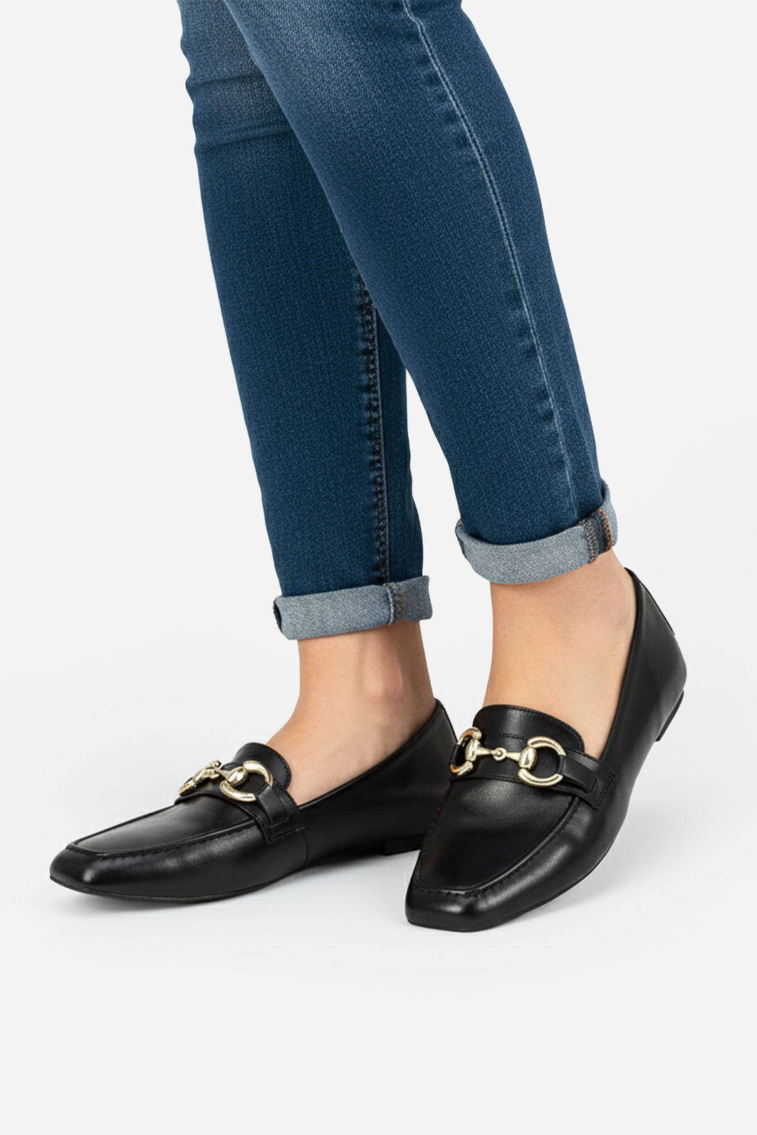 Elegante, atemporal e cheio de presença. Esse mocassim preto de bico quadrado é a escolha certa para quem quer unir sofisticação e conforto no dia a dia. O acabamento impecável se destaca pelo enfeite dourado no cabedal, que adiciona um toque de luxo ao visual sem exageros. A estrutura macia e o salto flat garantem praticidade para a rotina, enquanto o design refinado combina com alfaiataria, jeans ou vestidos. Um clássico que vai do escritório ao final de semana com muita classe.