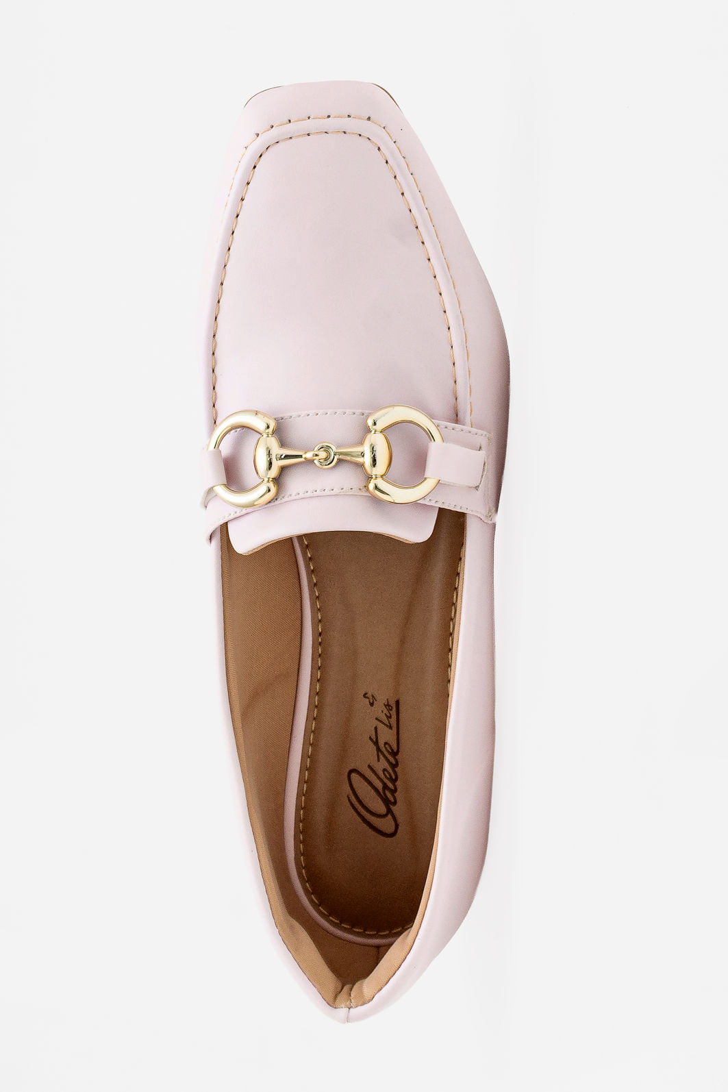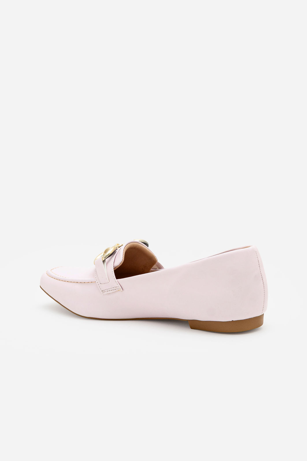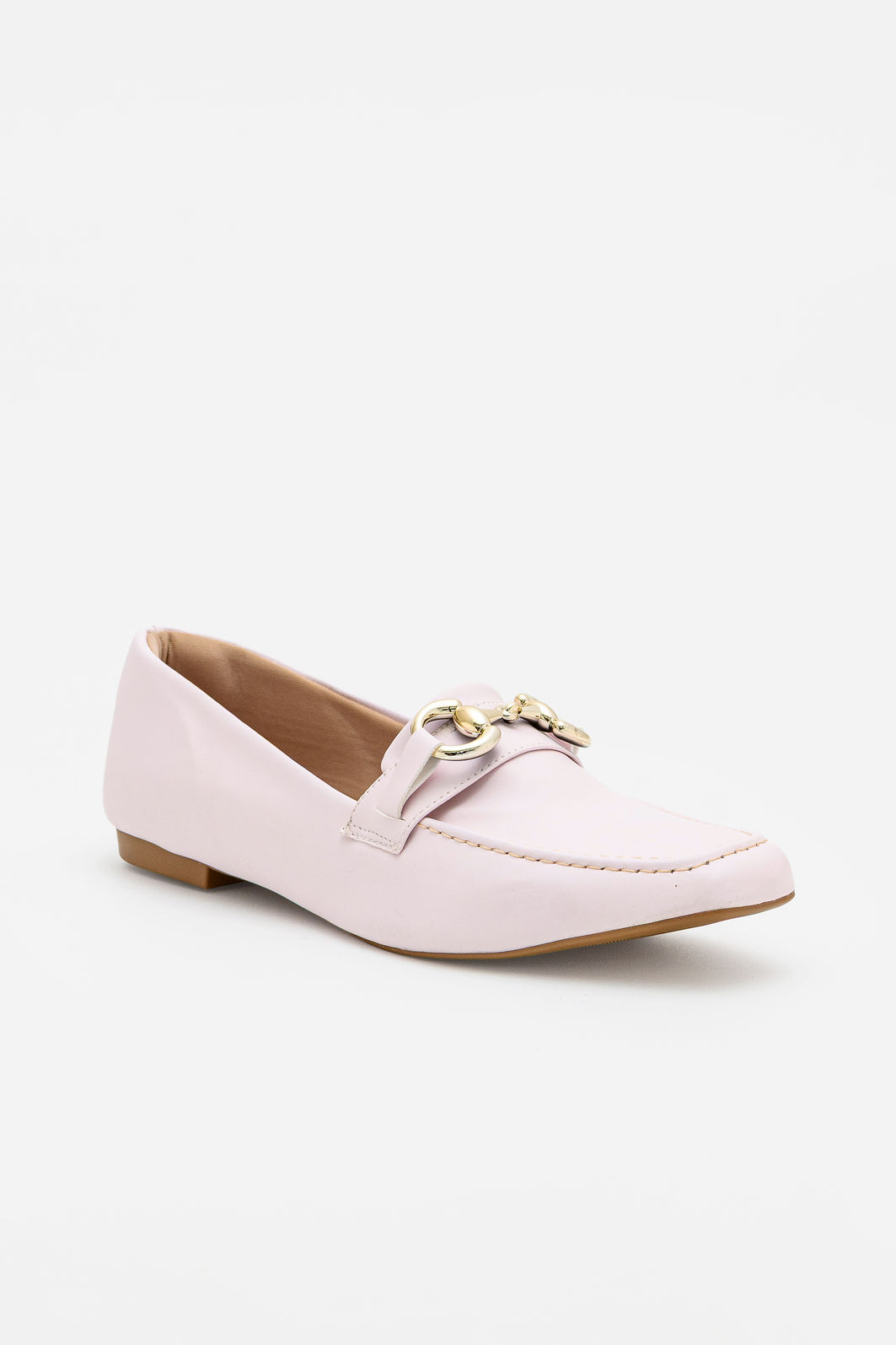 Delicado e sofisticado, o mocassim sintético rosé é a escolha perfeita para quem busca elegância em cada detalhe. O design em bico quadrado oferece um toque moderno e refinado, enquanto o enfeite metálico dourado realça a feminilidade com discrição e bom gosto.