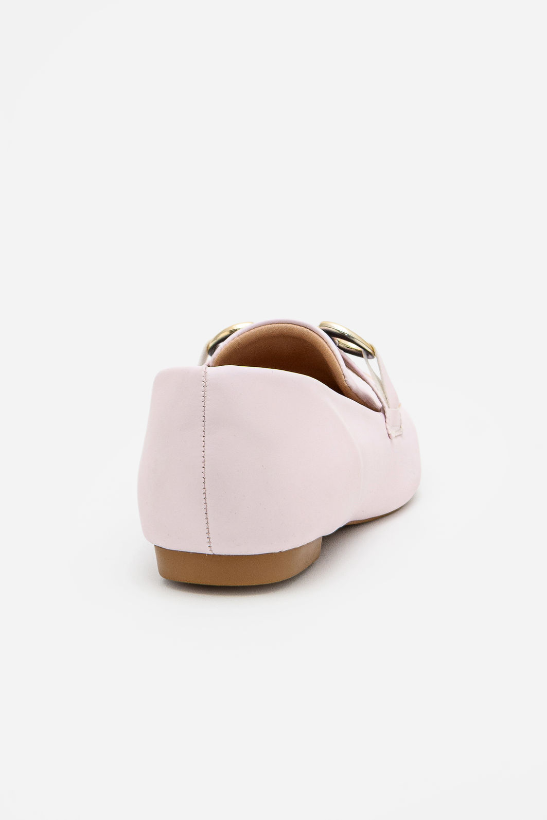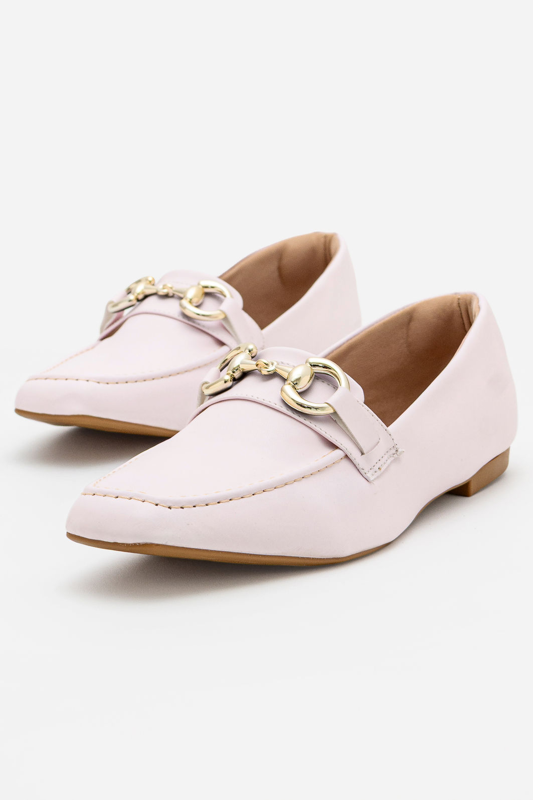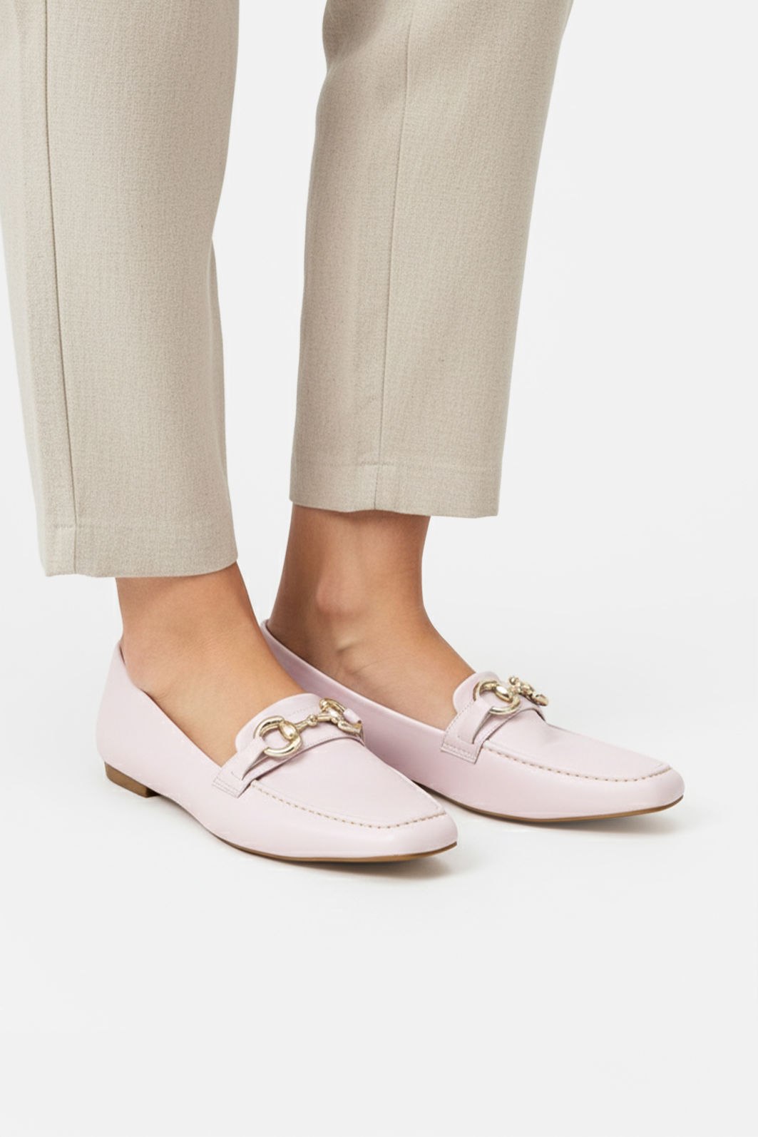 Delicado e sofisticado, o mocassim sintético rosé é a escolha perfeita para quem busca elegância em cada detalhe. O design em bico quadrado oferece um toque moderno e refinado, enquanto o enfeite metálico dourado realça a feminilidade com discrição e bom gosto.