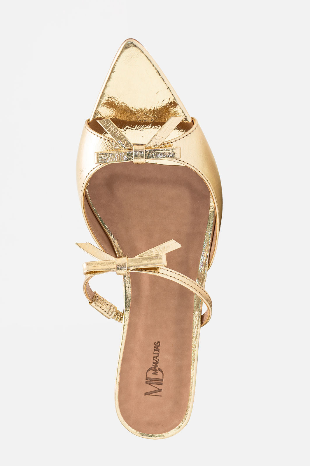 Eleve seu estilo com o charme sutil do Mule Delicado em Couro Ouro. Cada detalhe foi cuidadosamente pensado: o couro macio de alta qualidade proporciona acabamento impecável e durabilidade, enquanto o lacinho frontal adiciona um toque feminino e sofisticado. Sua palmilha acolchoada garante conforto durante todo o dia, tornando-o ideal para ambientes de trabalho, encontros sociais ou ocasiões especiais. Leve e versátil, combina perfeitamente com vestidos, saias e calças, garantindo elegância sem esforço em qualquer look.