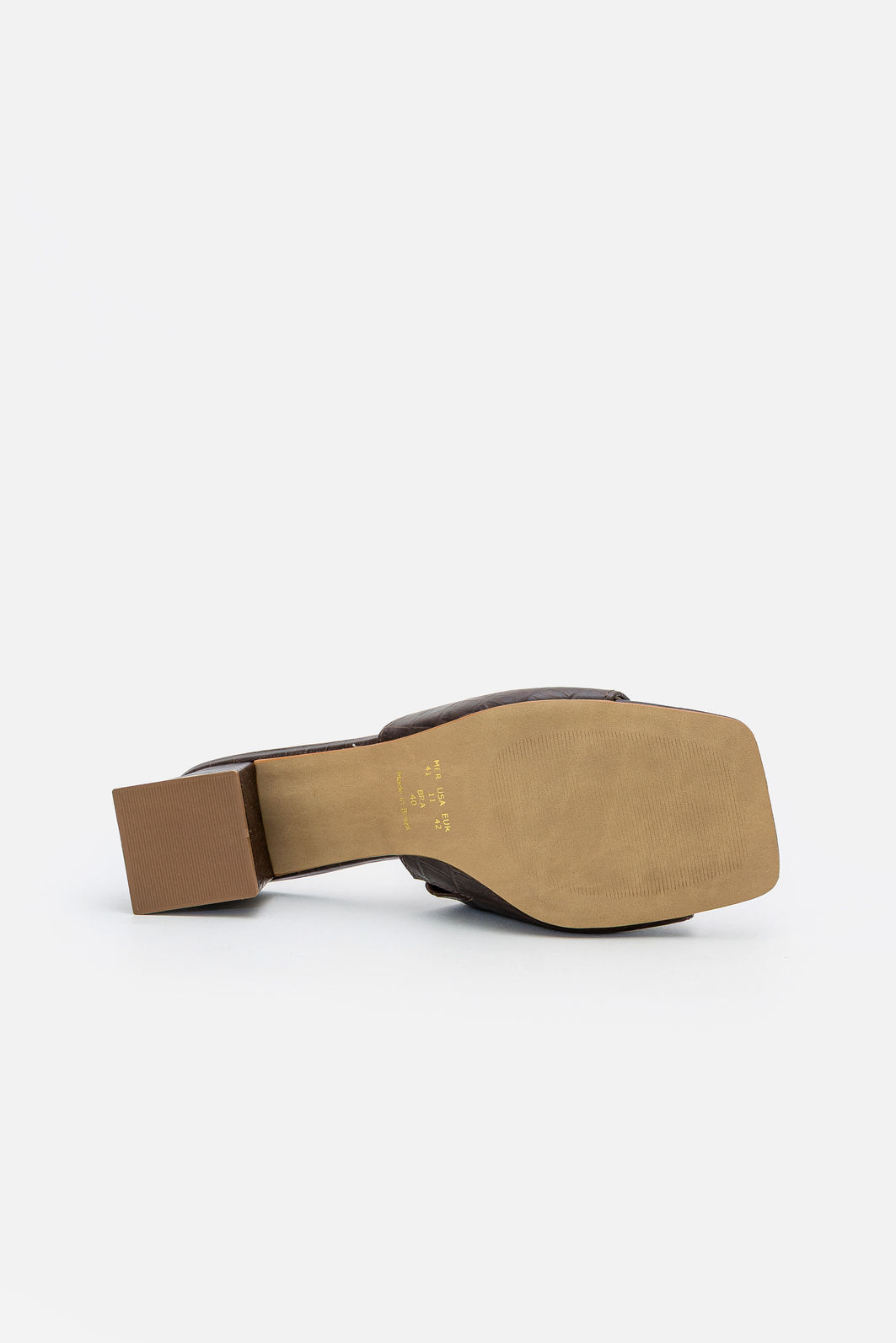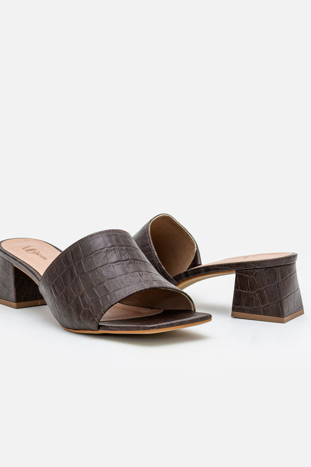 Elegante e contemporâneo, este mule em croco marrom é a escolha ideal para quem busca sofisticação com praticidade. O acabamento texturizado inspirado no couro croco confere profundidade visual e um toque de luxo discreto, elevando instantaneamente qualquer produção.