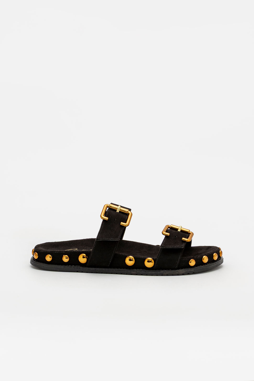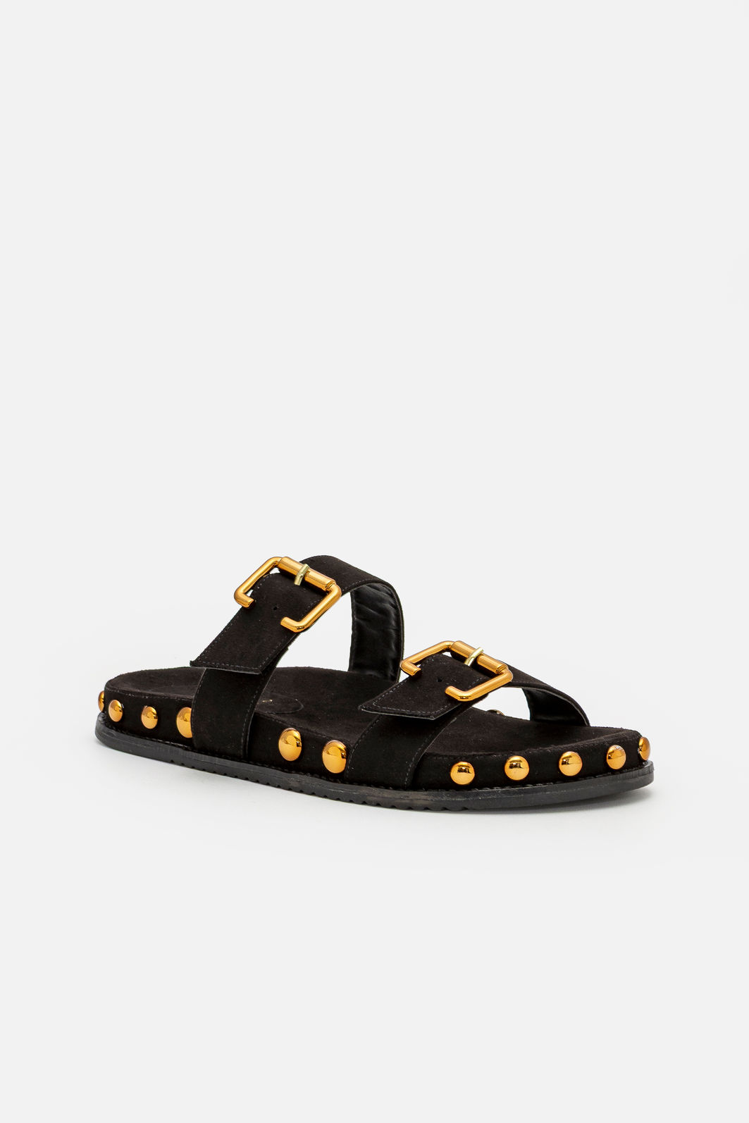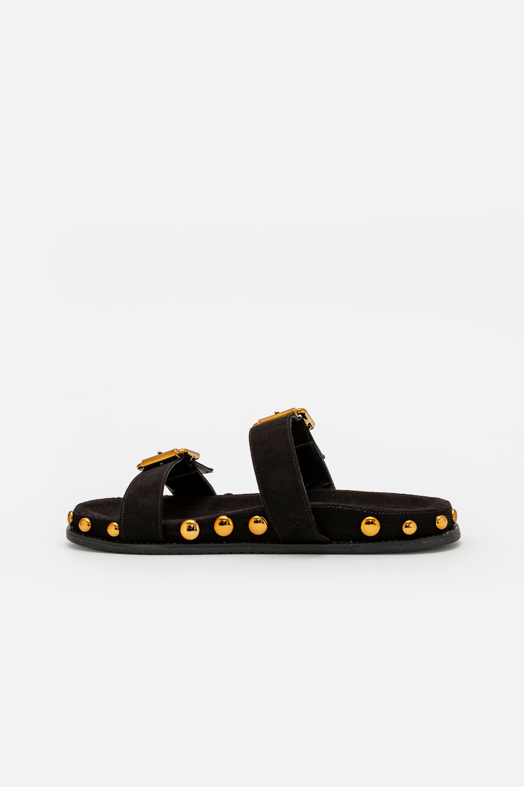Com estética contemporânea e atitude marcante, esta papete preta é a escolha ideal para quem valoriza estilo com praticidade. As tiras largas estruturam o visual com personalidade, enquanto as fivelas metálicas trazem um toque urbano sofisticado e permitem ajuste preciso aos pés.