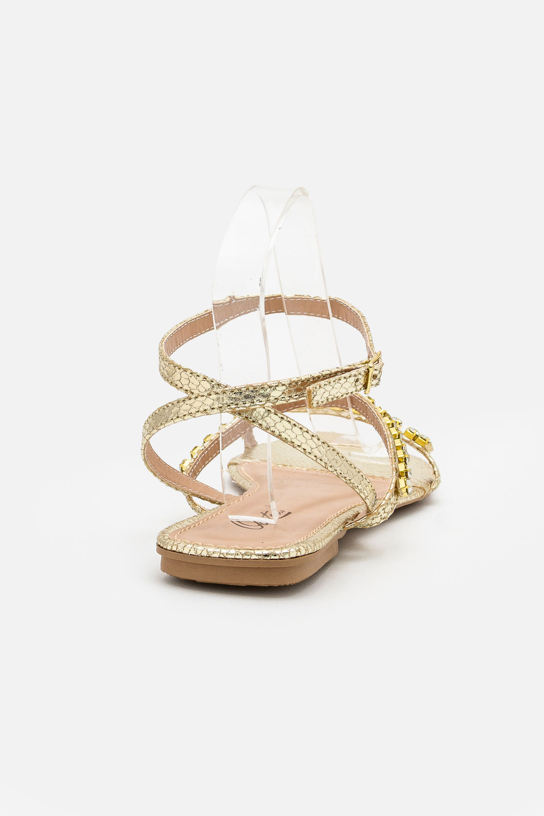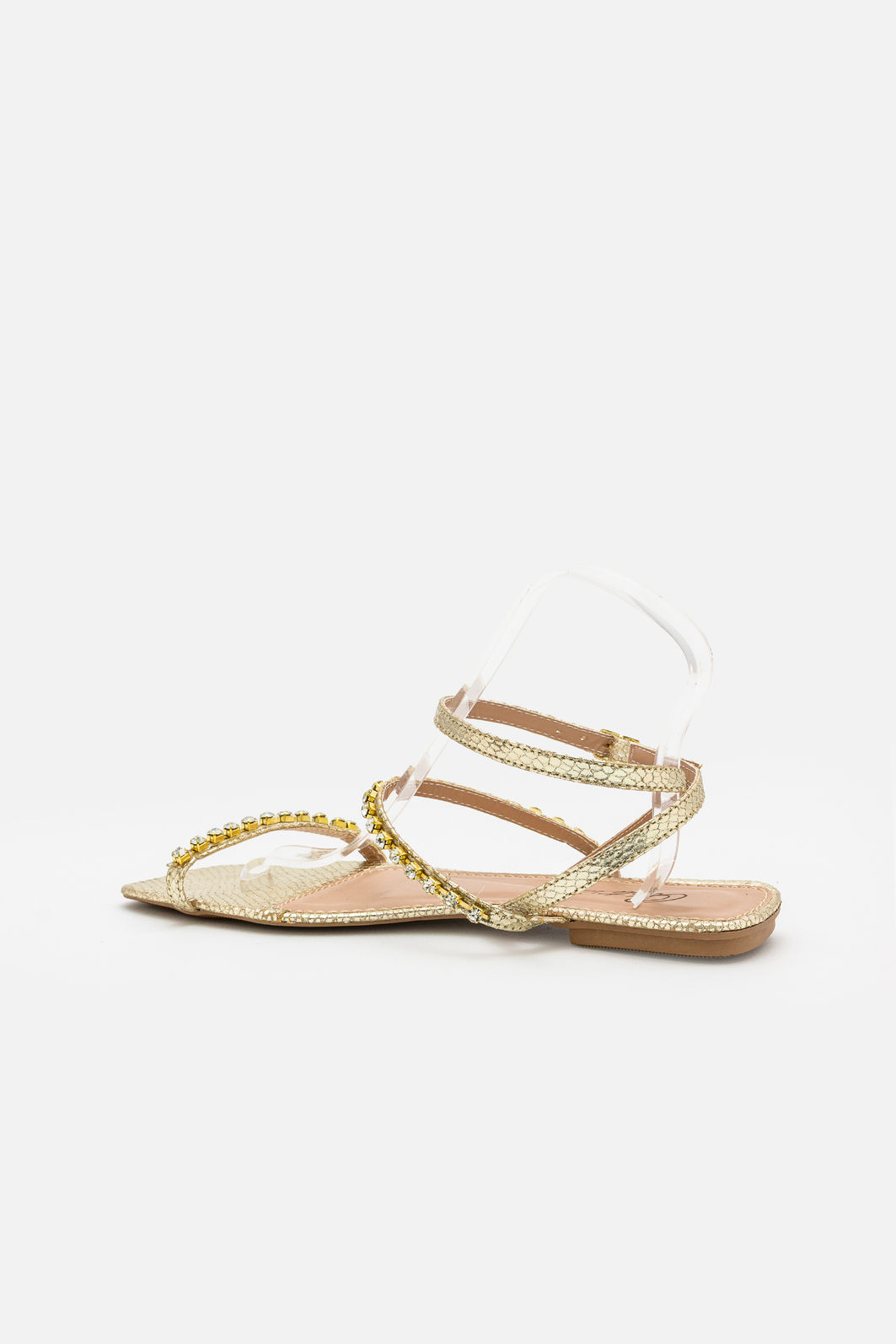Confeccionada em material sintético de alta qualidade com acabamento metalizado, oferece toque macio, boa durabilidade e aparência impecável. Os strass aplicados com precisão adicionam brilho na medida certa, elevando o visual do calçado com charme e sofisticação.