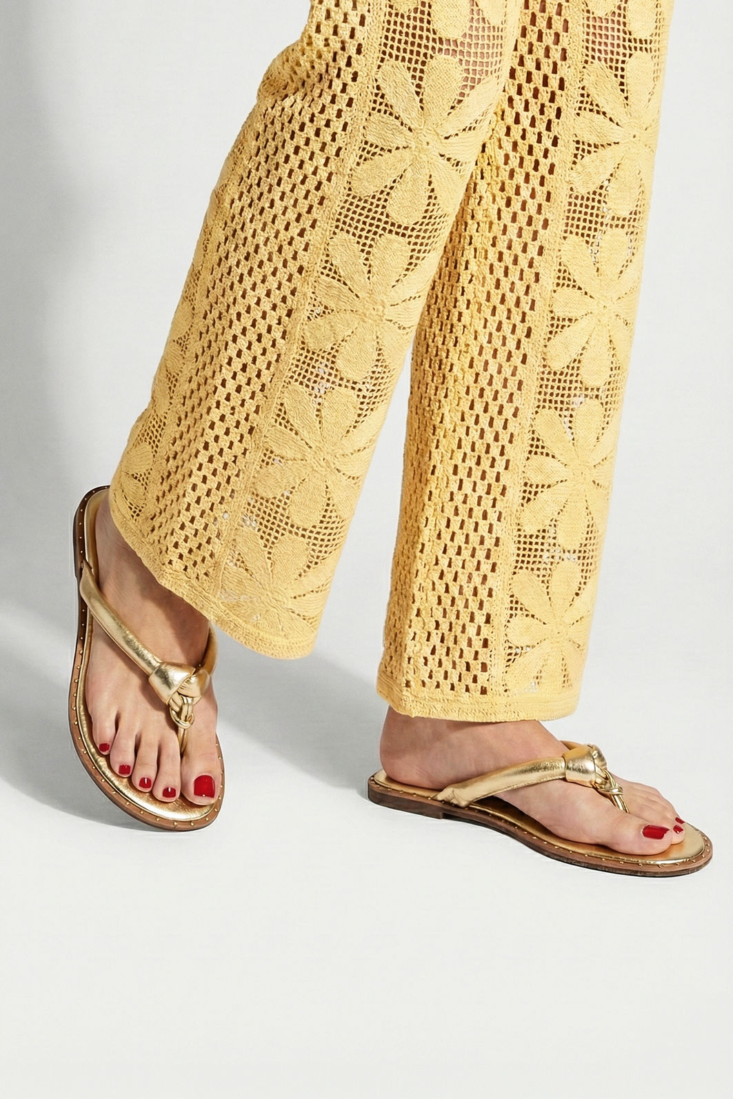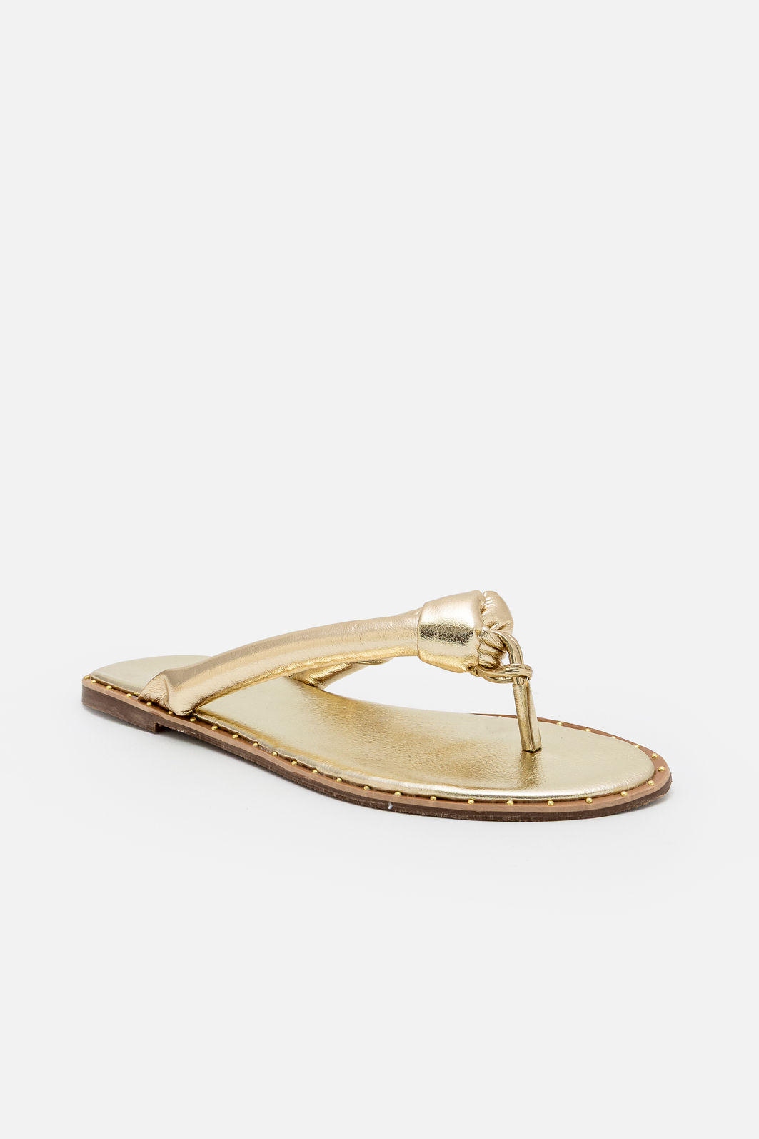 Elegância essencial para os dias em que o conforto precisa caminhar lado a lado com o estilo. Esta rasteira de dedo em tom ouro apresenta design contemporâneo com nó central que valoriza o pé com delicadeza e personalidade. O acabamento metalizado confere brilho na medida certa, elevando produções simples e complementando looks mais elaborados com naturalidade.