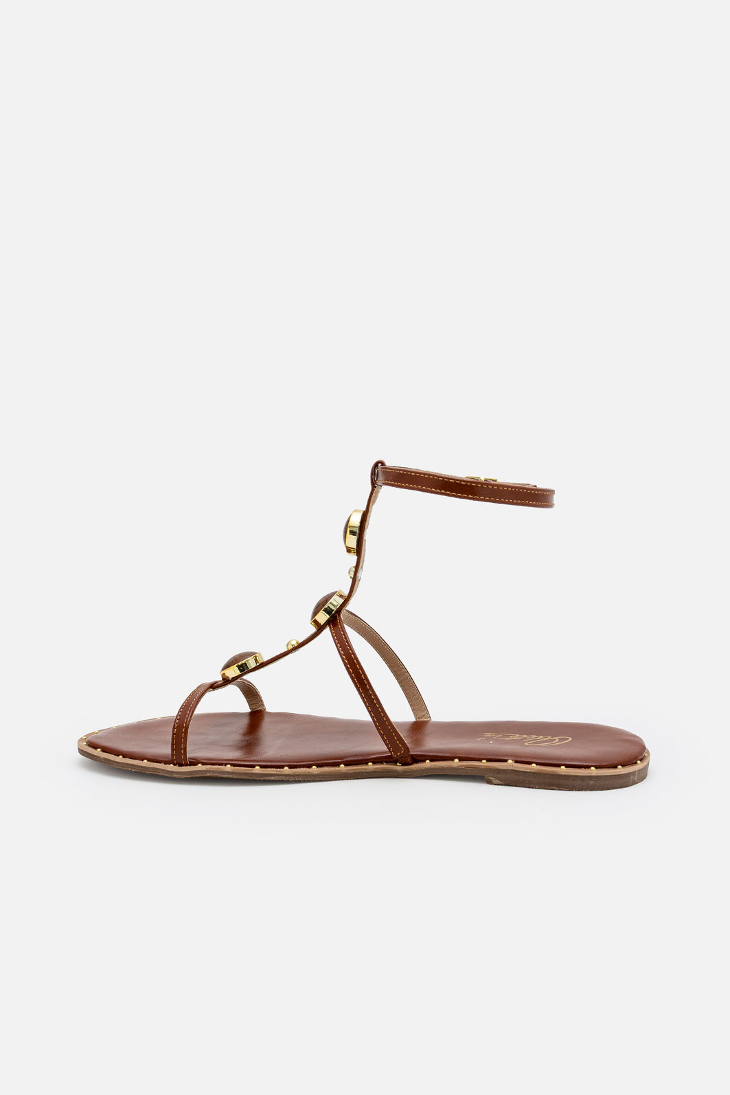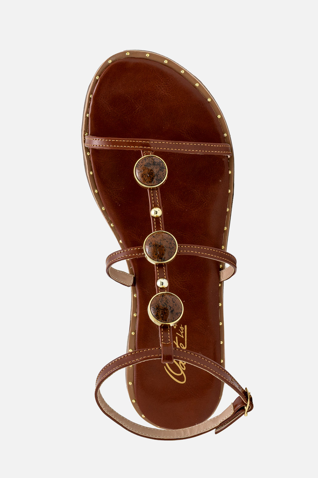 Com visual leve e acabamento refinado, esta rasteira feminina em tom tostado é a escolha ideal para quem busca elegância prática no dia a dia. O design delicado valoriza o pé com tiras finas e bem posicionadas, enquanto as pedras decorativas com aro dourado acrescentam um toque sofisticado e atemporal à composição.
