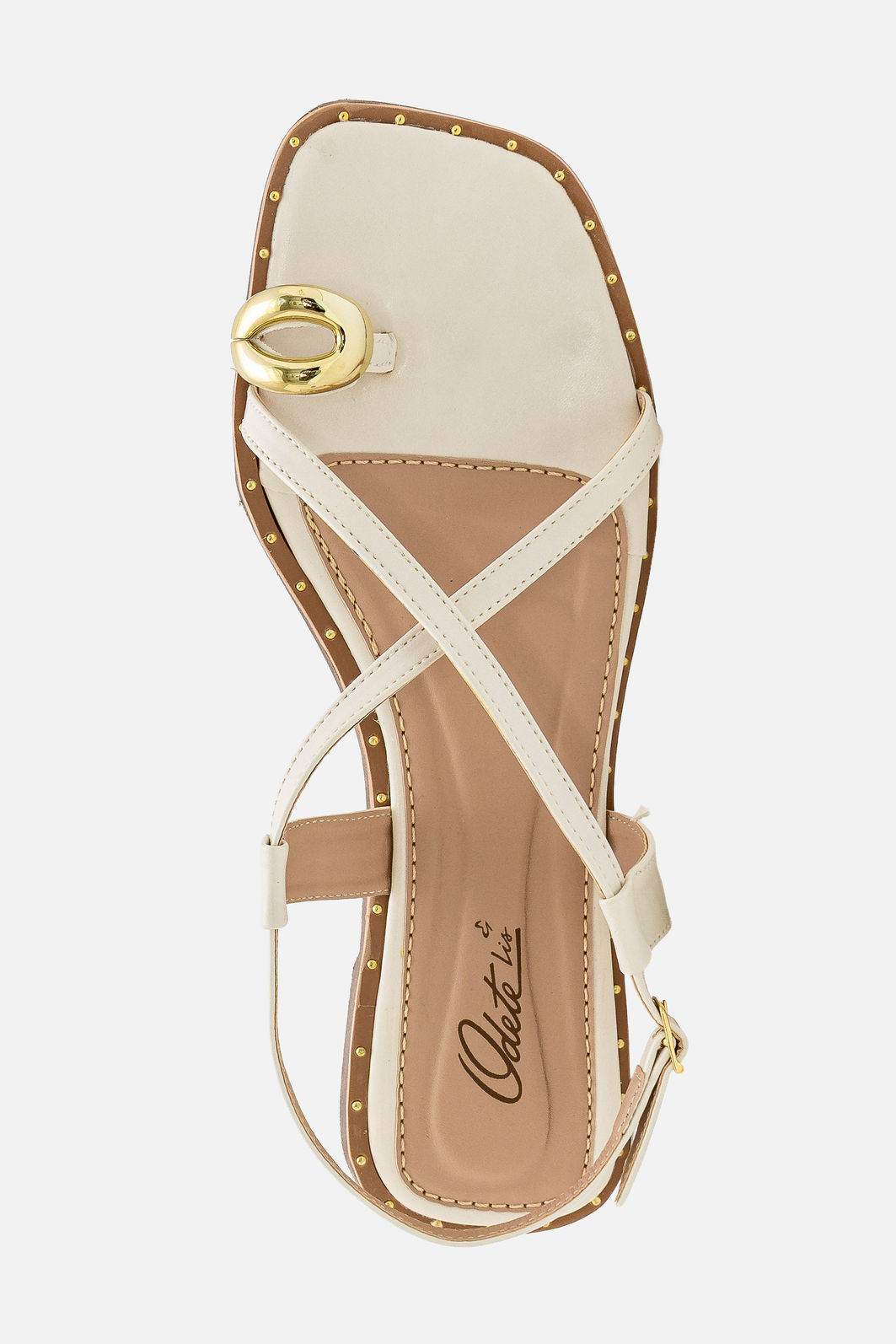 Delicada, elegante e atemporal, esta rasteira moderna com enfeite no dedão traduz leveza e sofisticação em um design limpo e contemporâneo. As tiras finas criam uma estética minimalista e feminina, enquanto o detalhe metálico dourado no dedo central adiciona um toque de brilho sutil, elevando a composição com refinamento e equilíbrio.