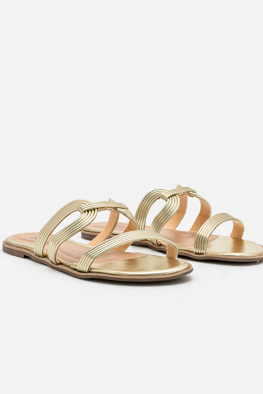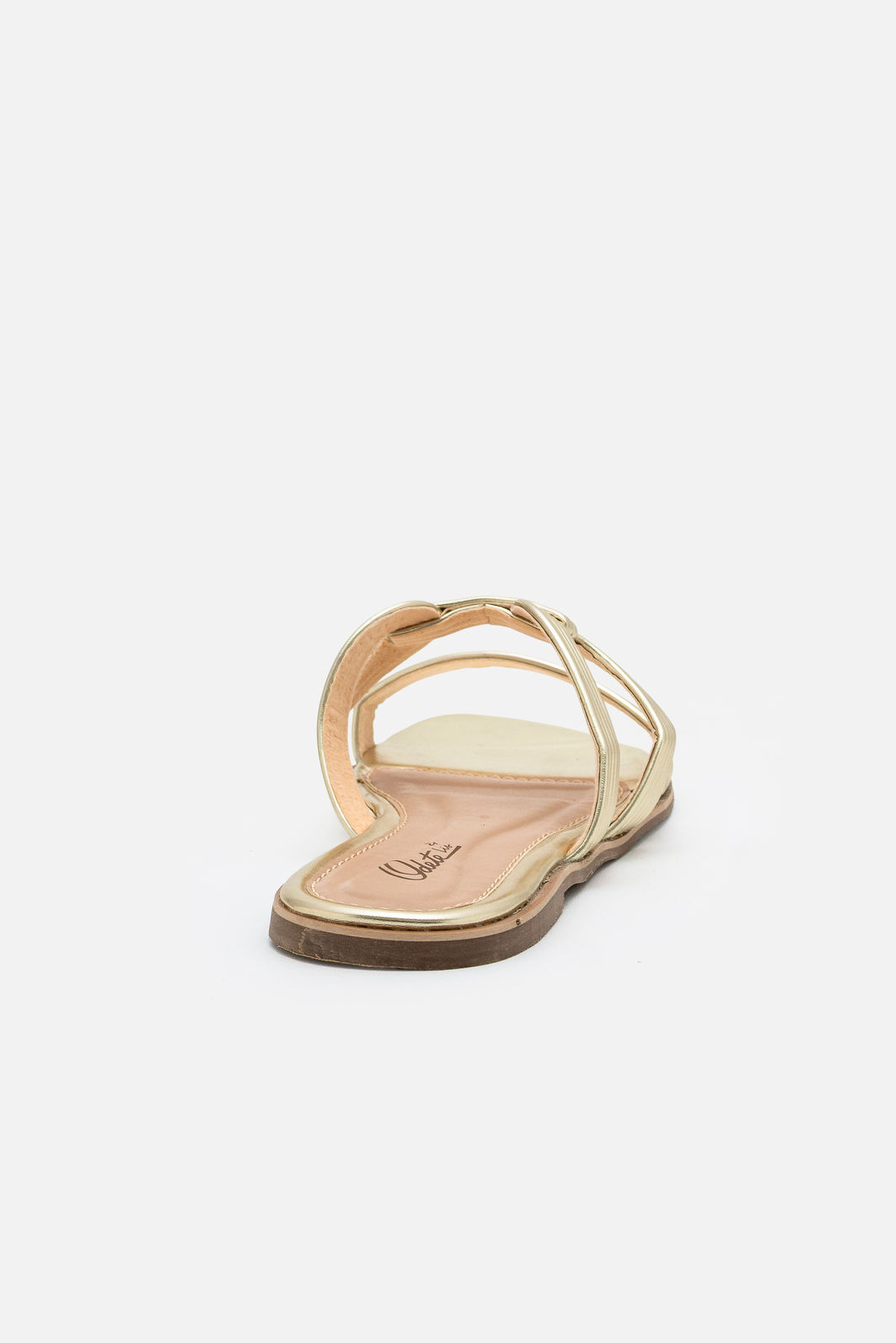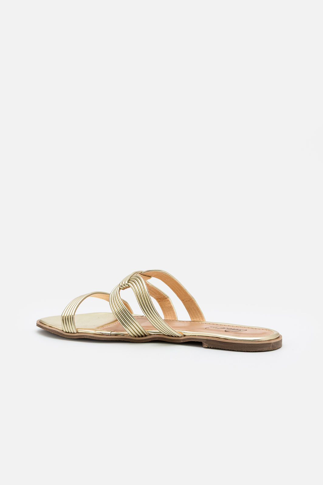 A Rasteira em Material Metalizado Champagne combina leveza, brilho sofisticado e acabamento impecável em um design que valoriza o pé com elegância. As tiras finas criam um traçado delicado e contemporâneo, enquanto o detalhe central entrelaçado adiciona personalidade sutil ao visual.