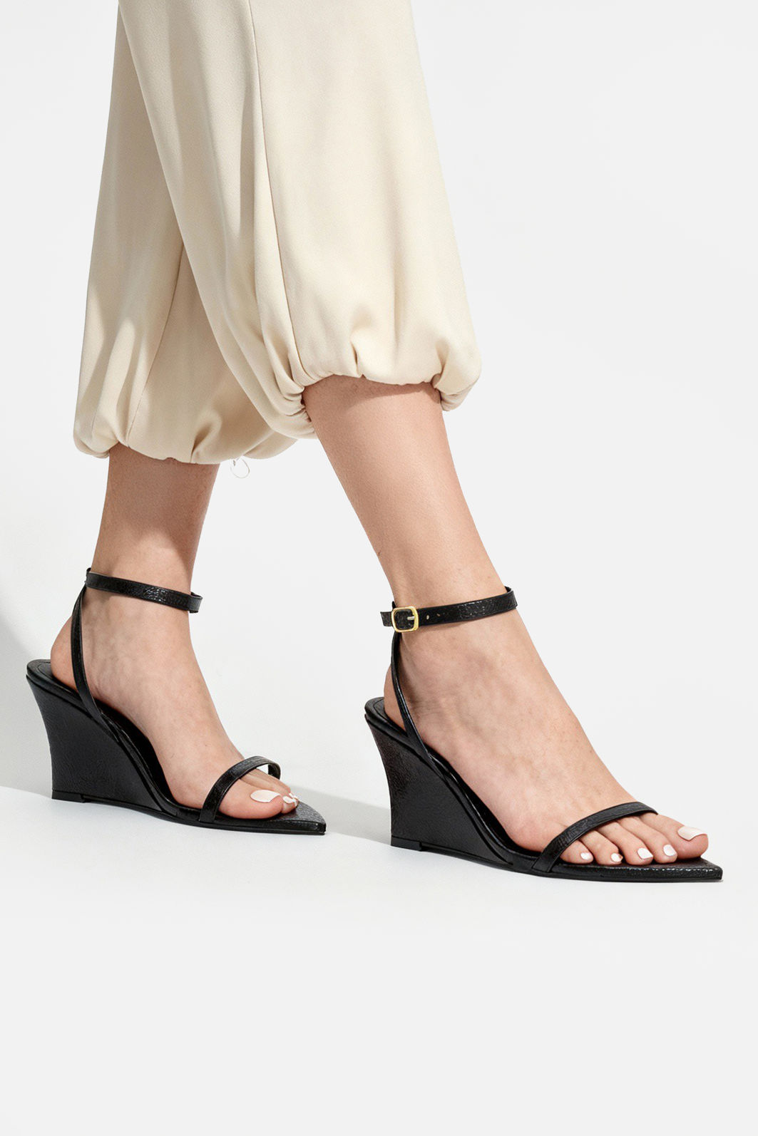 O fechamento com fivela ajustável no tornozelo oferece segurança e um encaixe perfeito, acompanhando o movimento natural dos pés. O couro de textura suave e acabamento impecável reforçam a qualidade premium do modelo, que se adapta facilmente a diferentes produções.