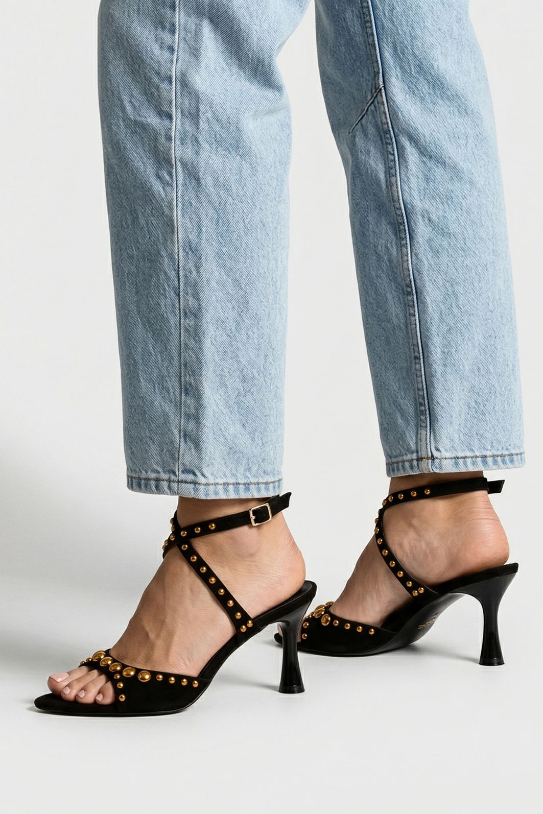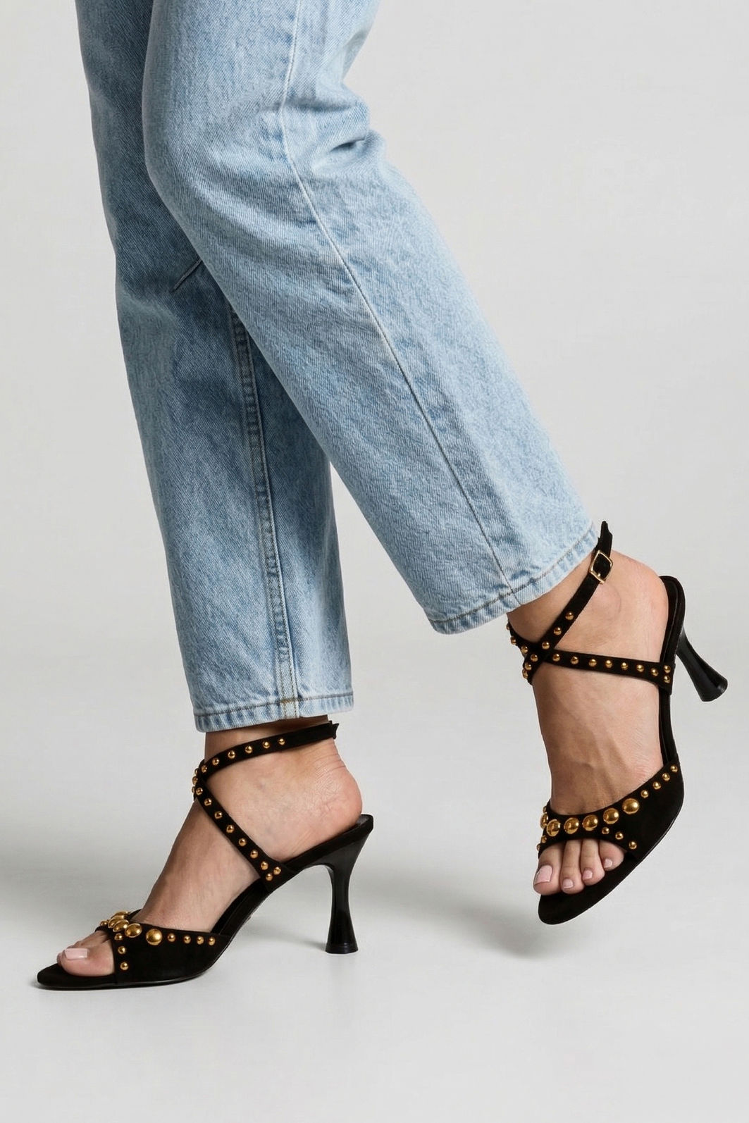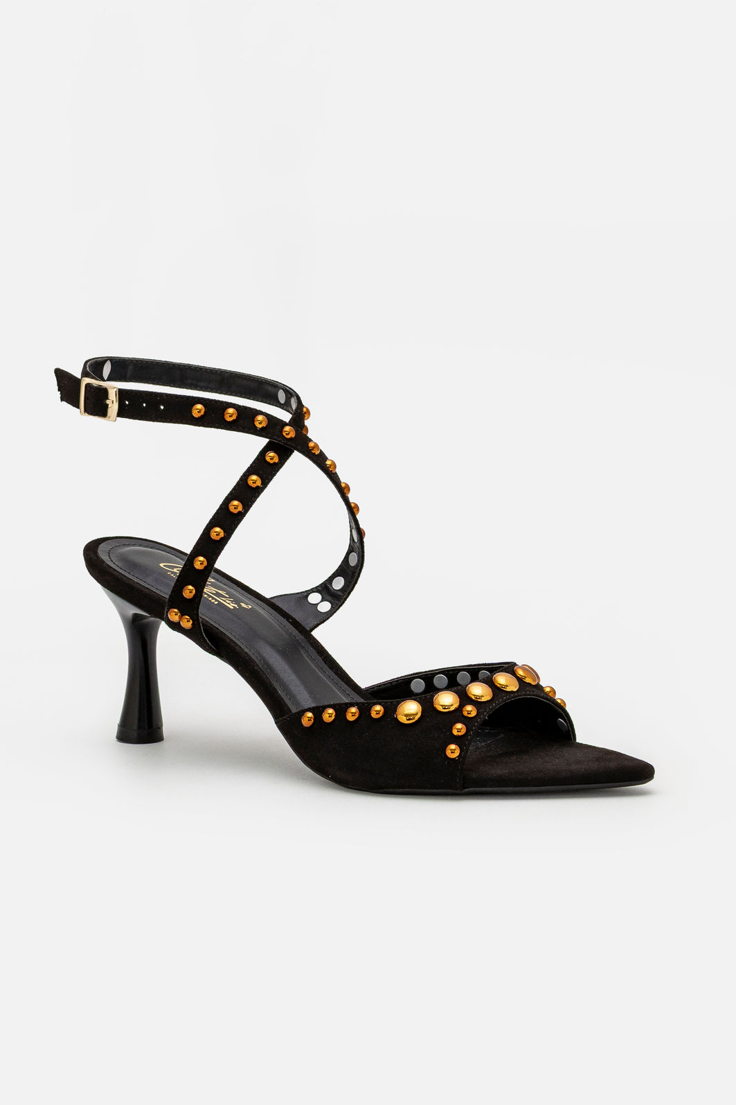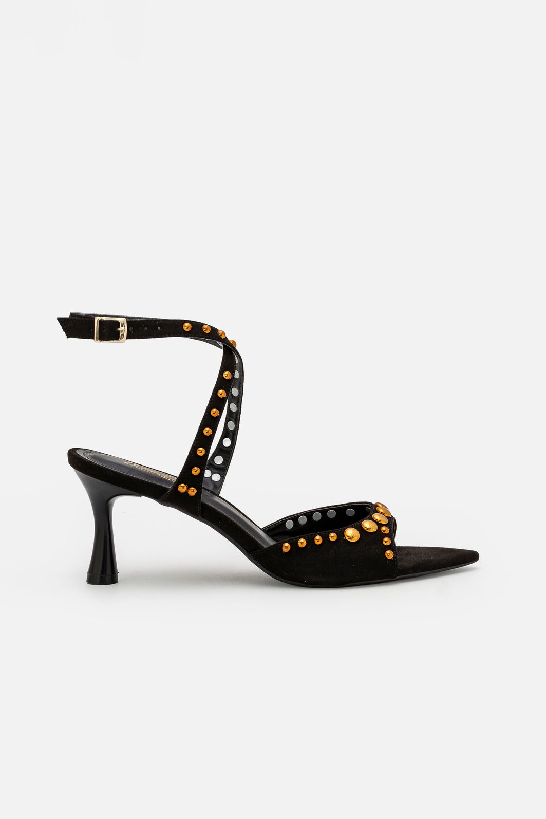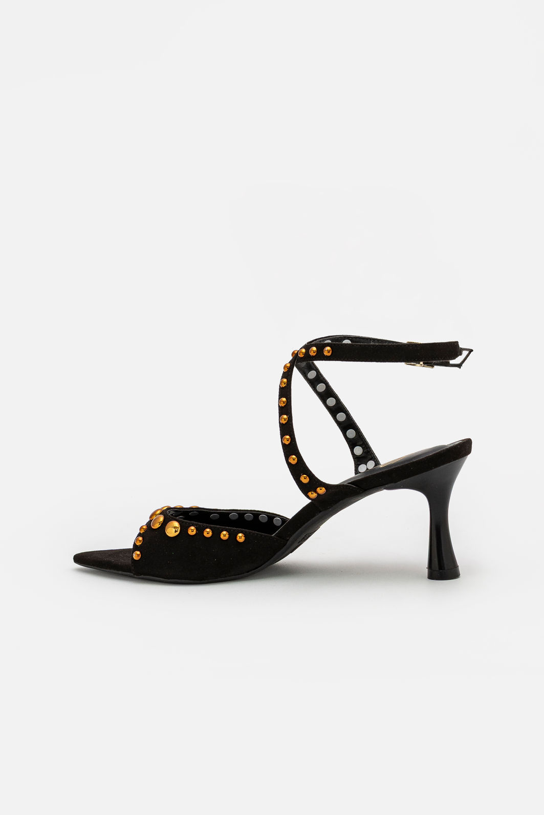 Marcante e sofisticada, esta sandália preta com rebites é a escolha ideal para quem busca elegância com personalidade. O design com bico folha alongado valoriza a silhueta dos pés, criando um visual refinado e contemporâneo. Os rebites metálicos aplicados de forma estratégica trazem um toque moderno e cheio de atitude, destacando o modelo com sutileza e estilo.