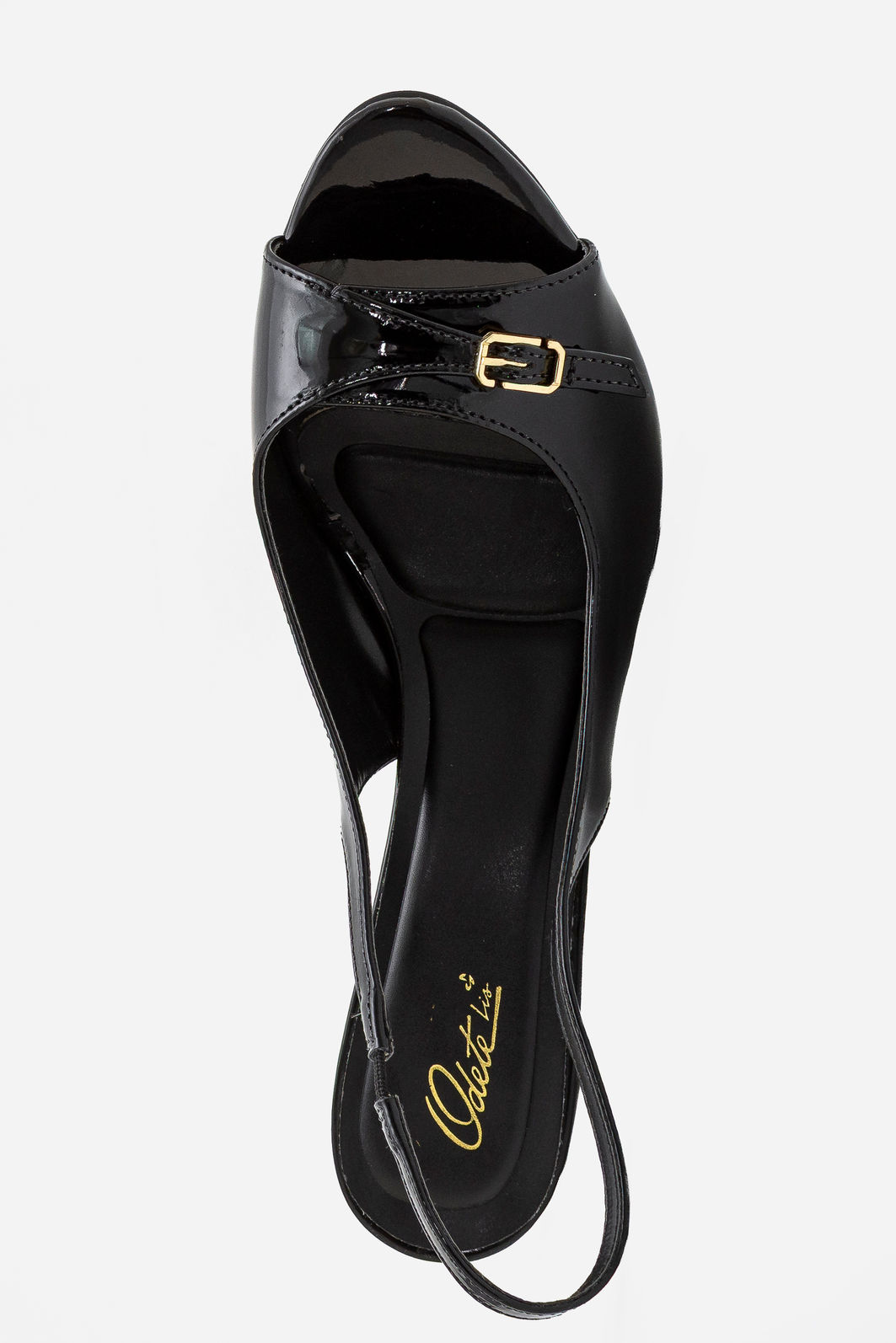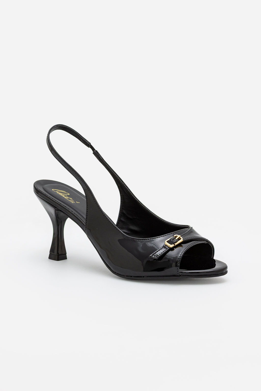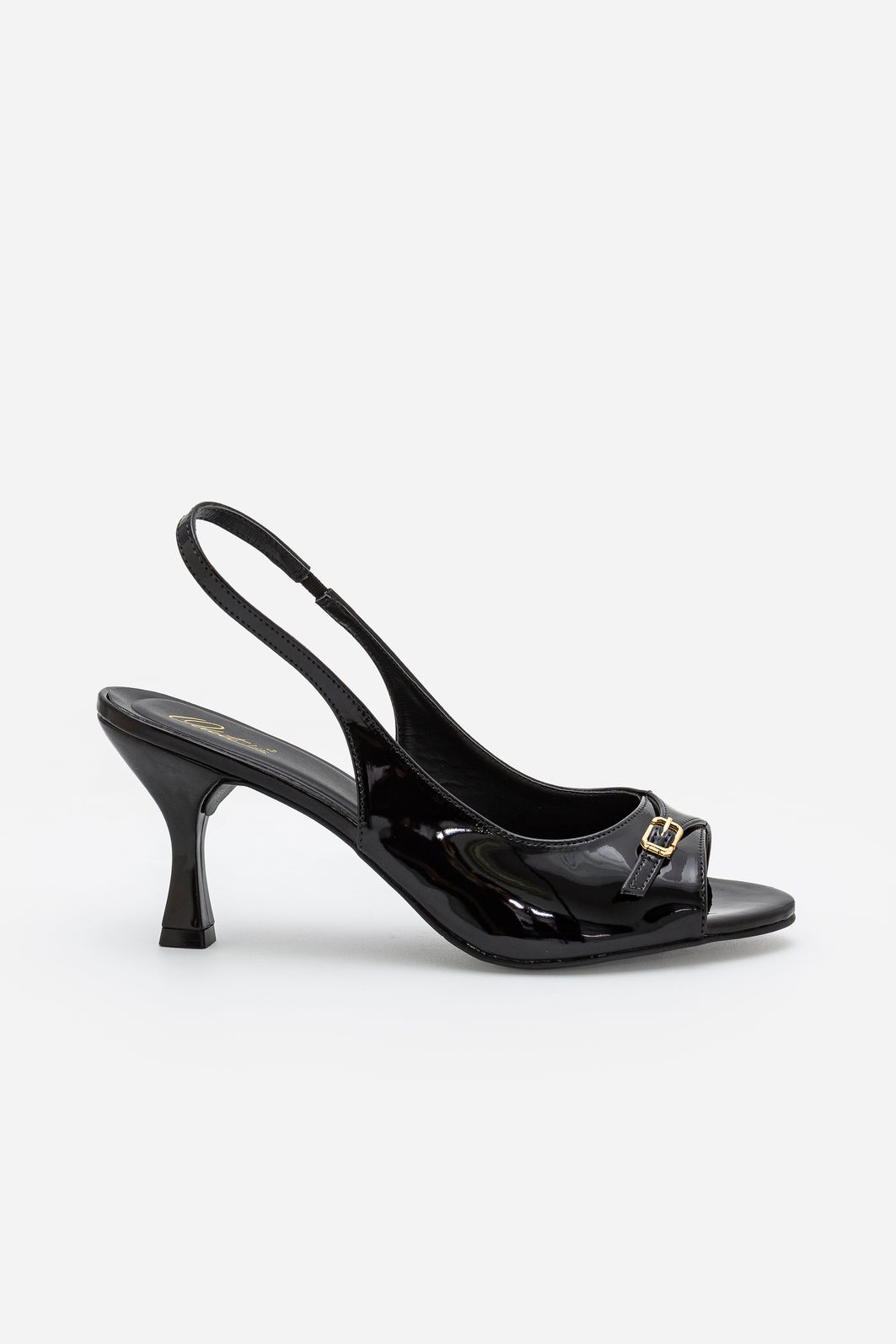 Com um equilíbrio perfeito entre sofisticação e modernidade, esta sandália em verniz preto é a escolha certa para elevar qualquer produção. O acabamento espelhado do verniz confere brilho elegante e presença marcante, enquanto o design de tiras finas e a fivela metálica na parte frontal adicionam um toque clássico e feminino.