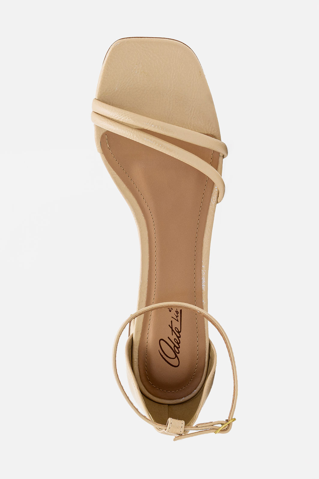Minimalista e sofisticada, esta sandália em tom bege é a definição de elegância leve e atemporal. O design com tiras finas valoriza os pés com delicadeza, criando uma estética clean que alonga a silhueta de forma sutil e refinada.