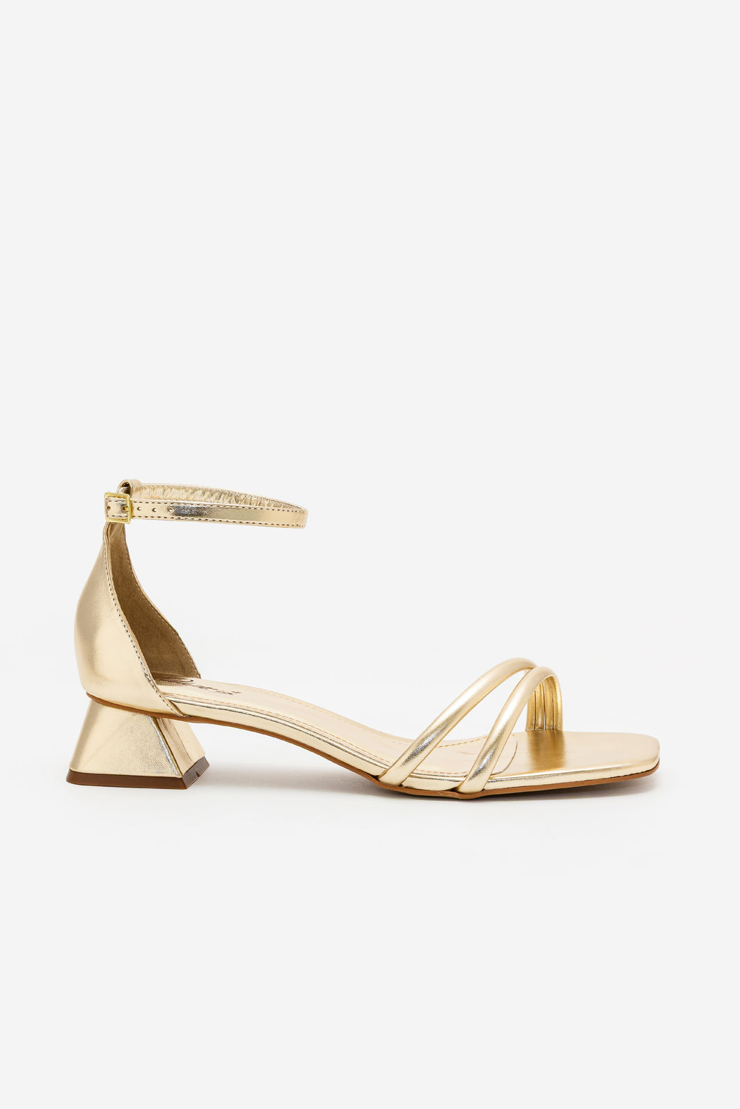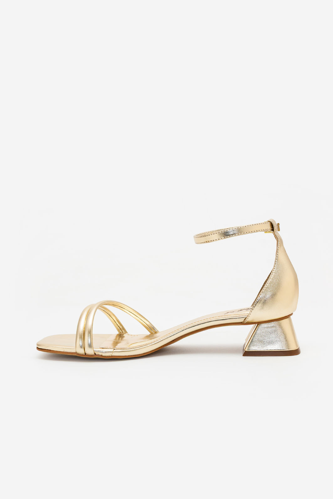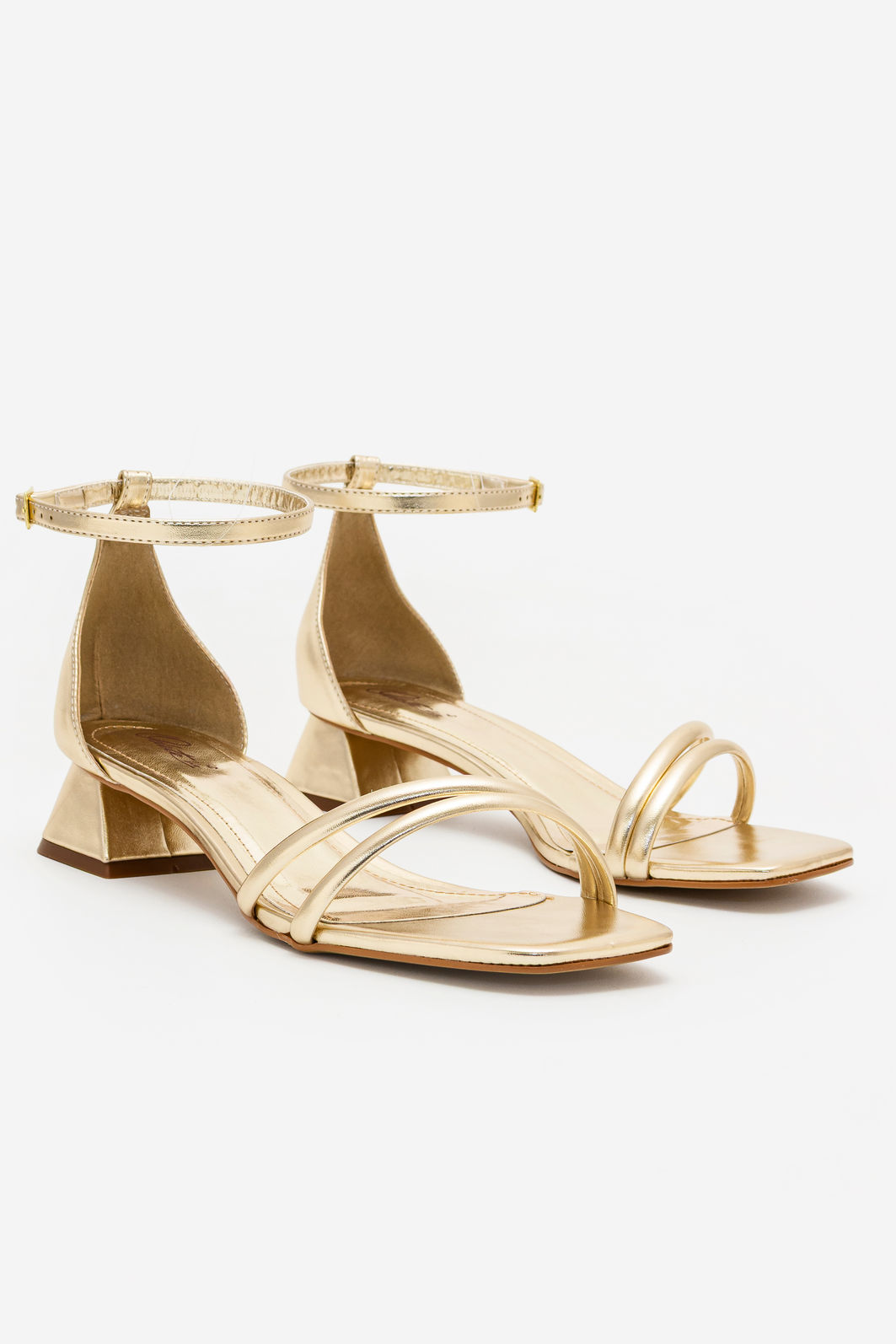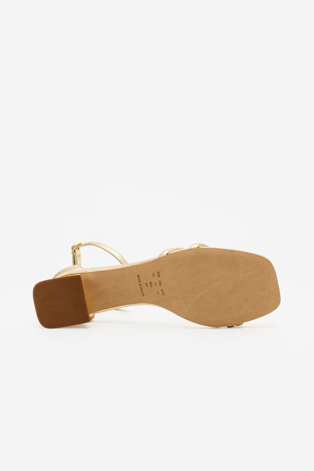O acabamento metalizado em tom champagne acrescenta brilho na medida certa, elevando qualquer produção com modernidade e requinte. O salto geométrico baixo garante estabilidade e conforto, permitindo aproveitar longos eventos sem abrir mão da elegância.