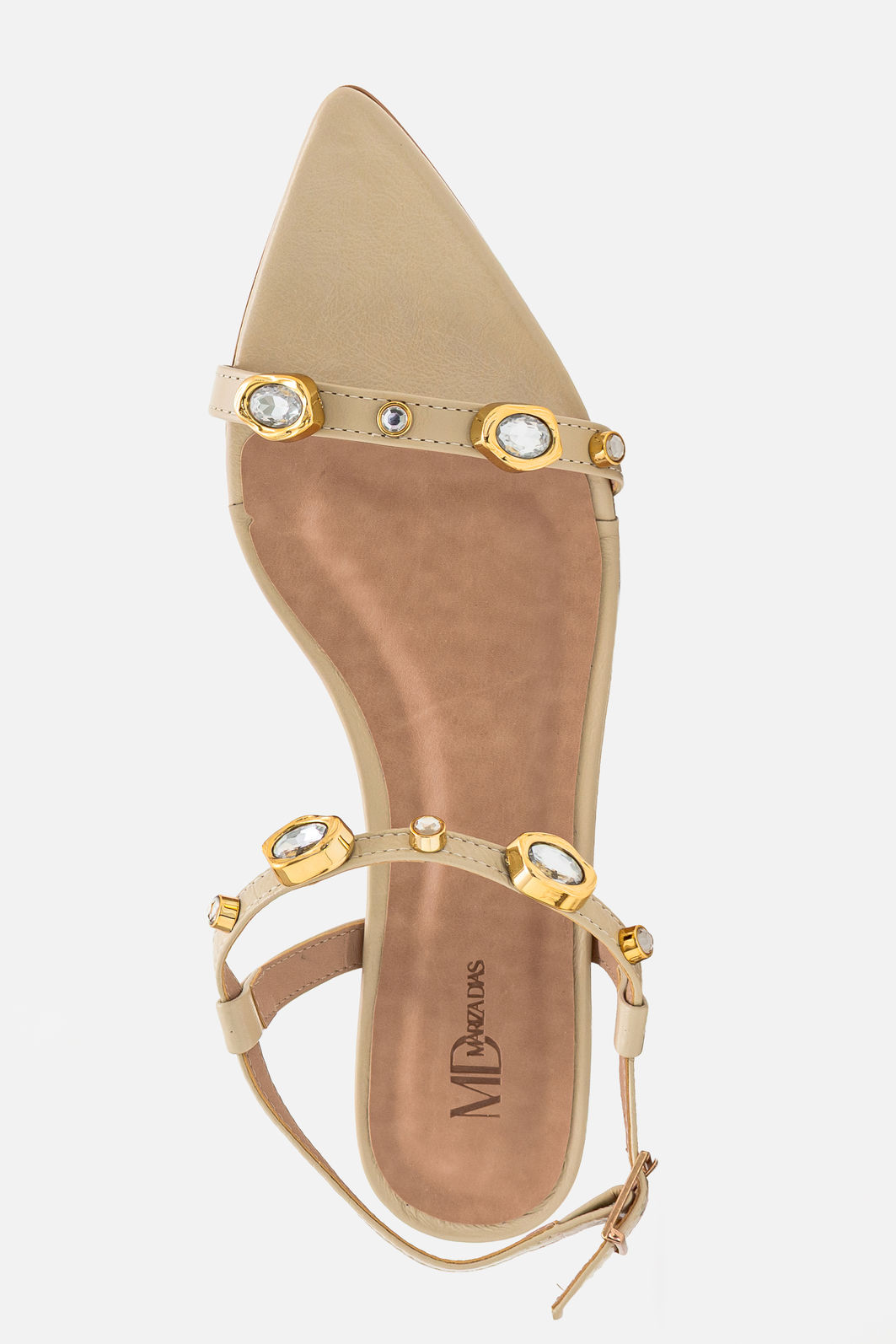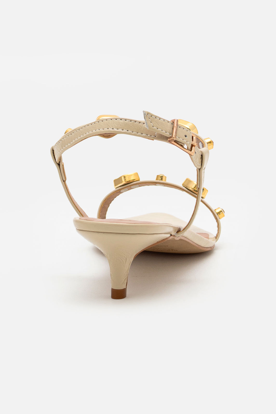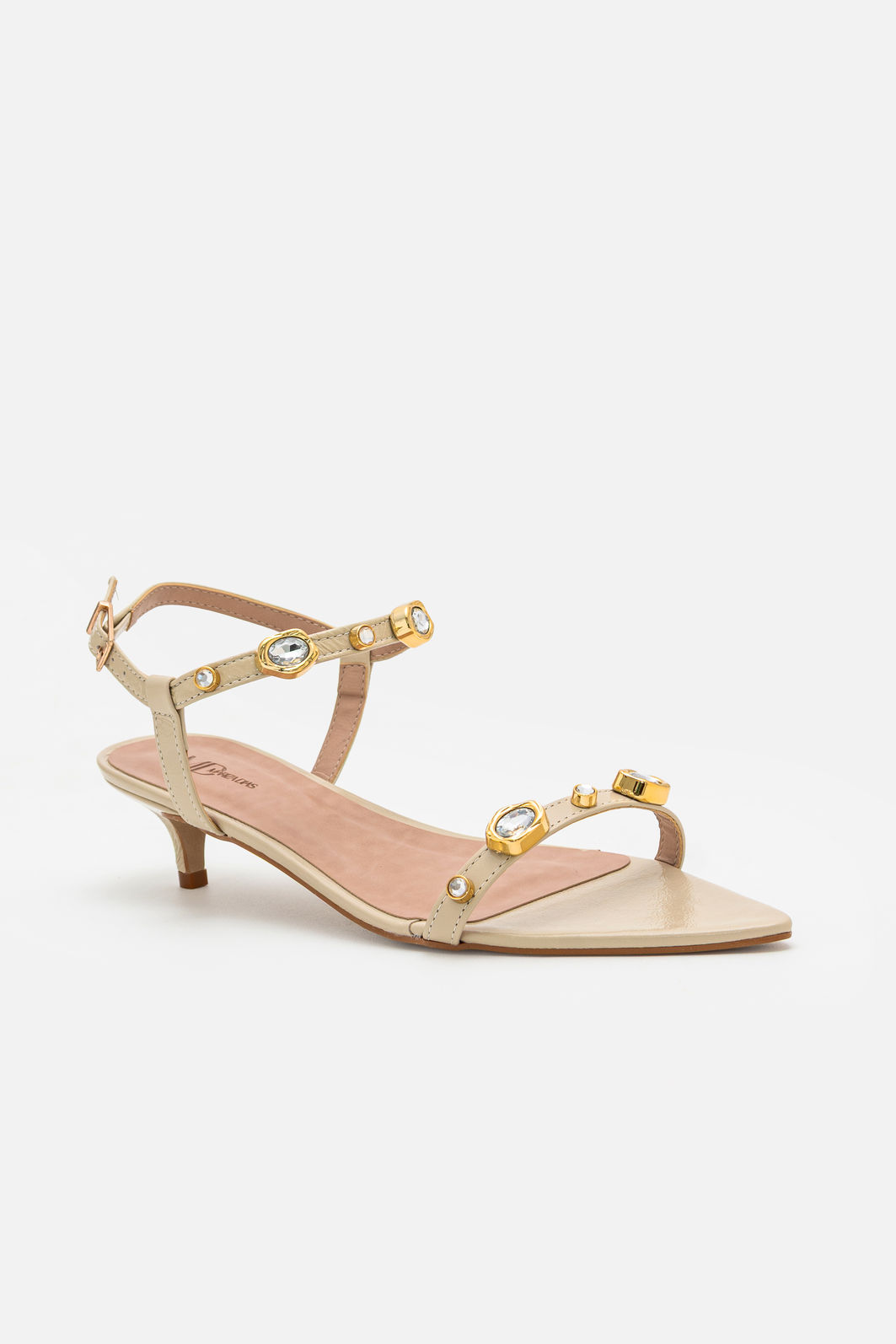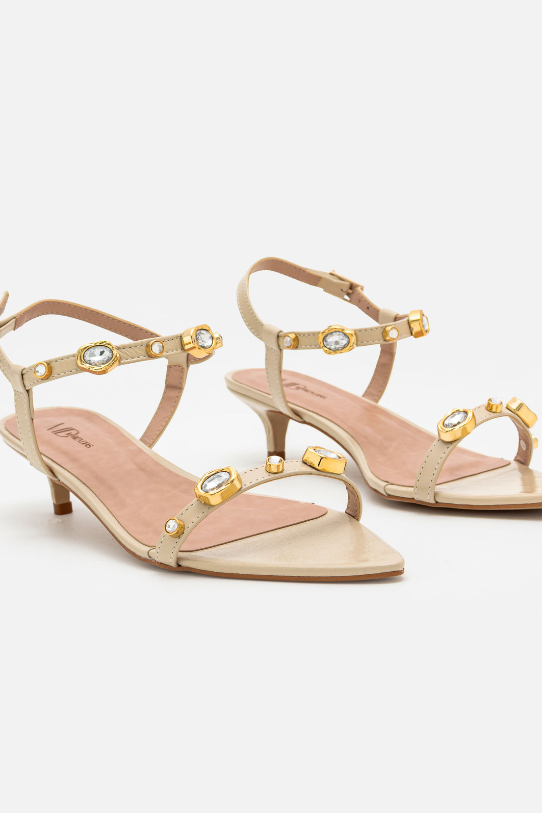 Elegância e leveza se unem nesta sandália feminina em verniz bege, criada para quem busca sofisticação sem abrir mão do conforto. O design delicado valoriza o pé com tiras finas adornadas por pedrarias lapidadas em molduras douradas, conferindo brilho na medida certa. O salto baixo e fino garante uma postura elegante, ideal para longos períodos de uso com total estabilidade.