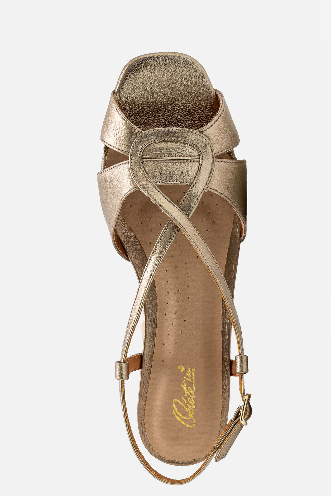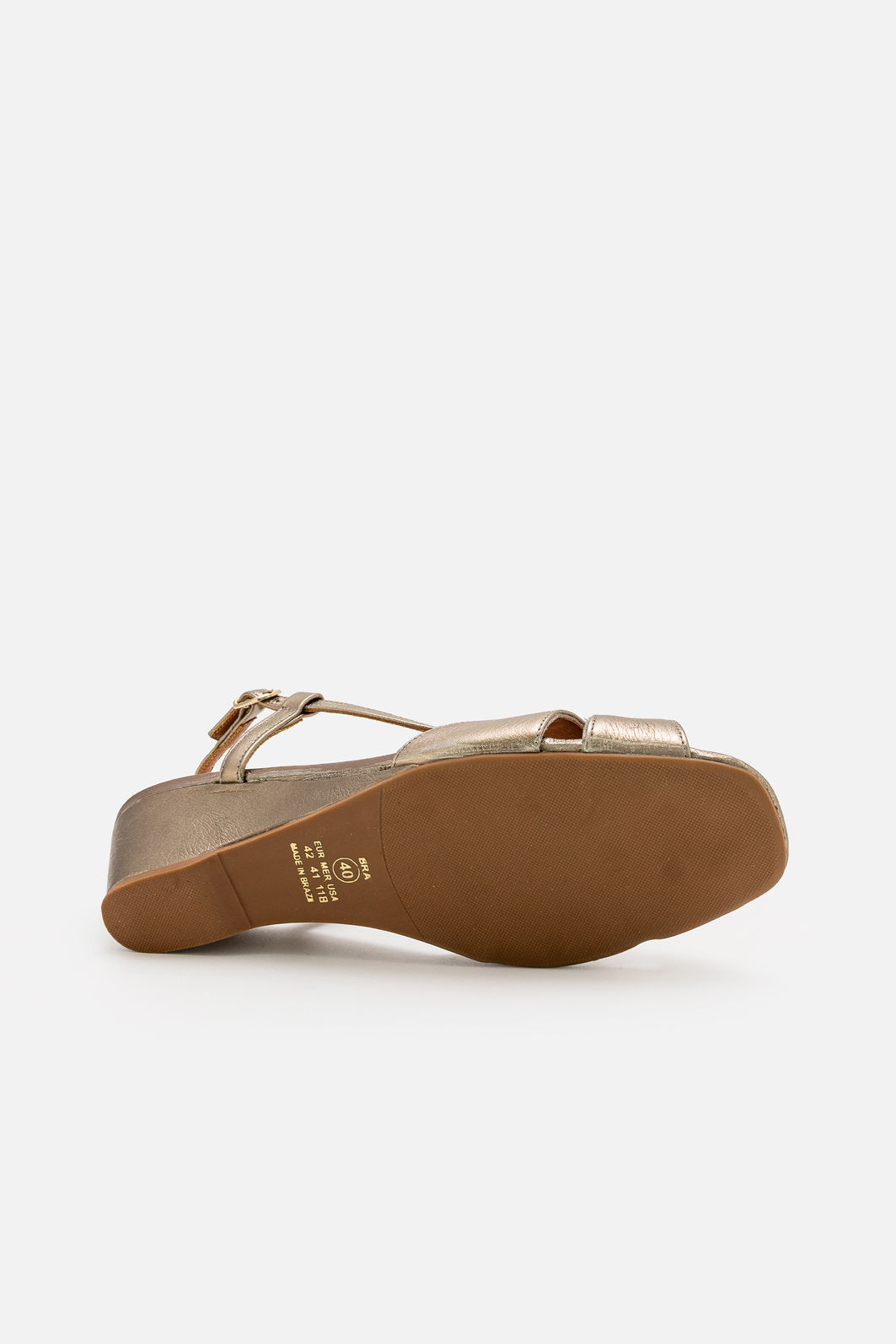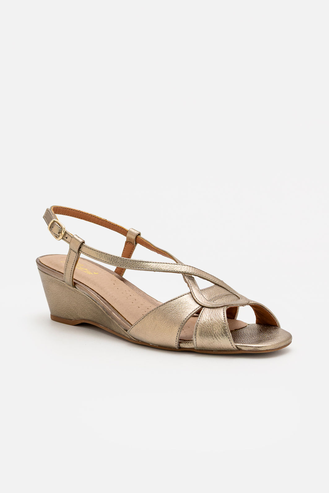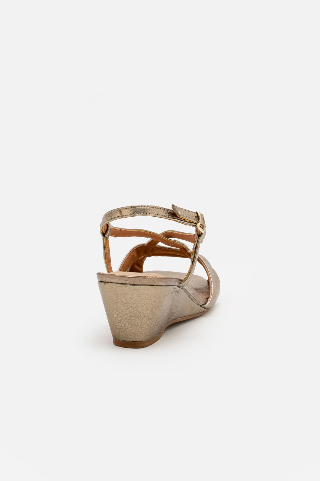 A Sandália em Couro Champagne com Salto Anabela Elegante é aquela peça que ilumina o look sem esforço. Suas tiras delicadamente entrelaçadas criam um visual feminino e atemporal, enquanto o couro metalizado entrega um brilho sutil nunca exagerado.