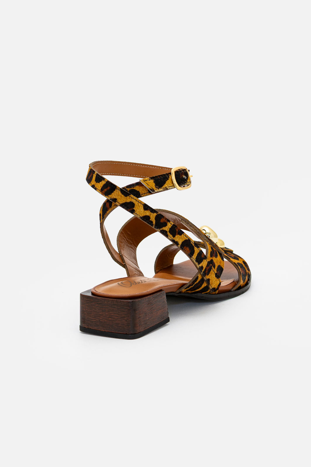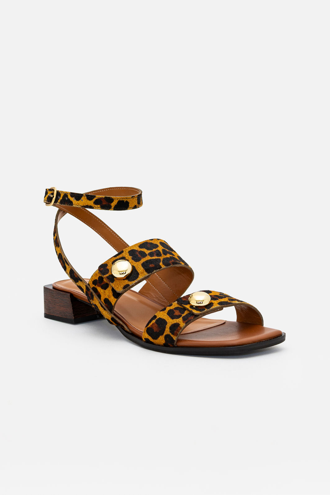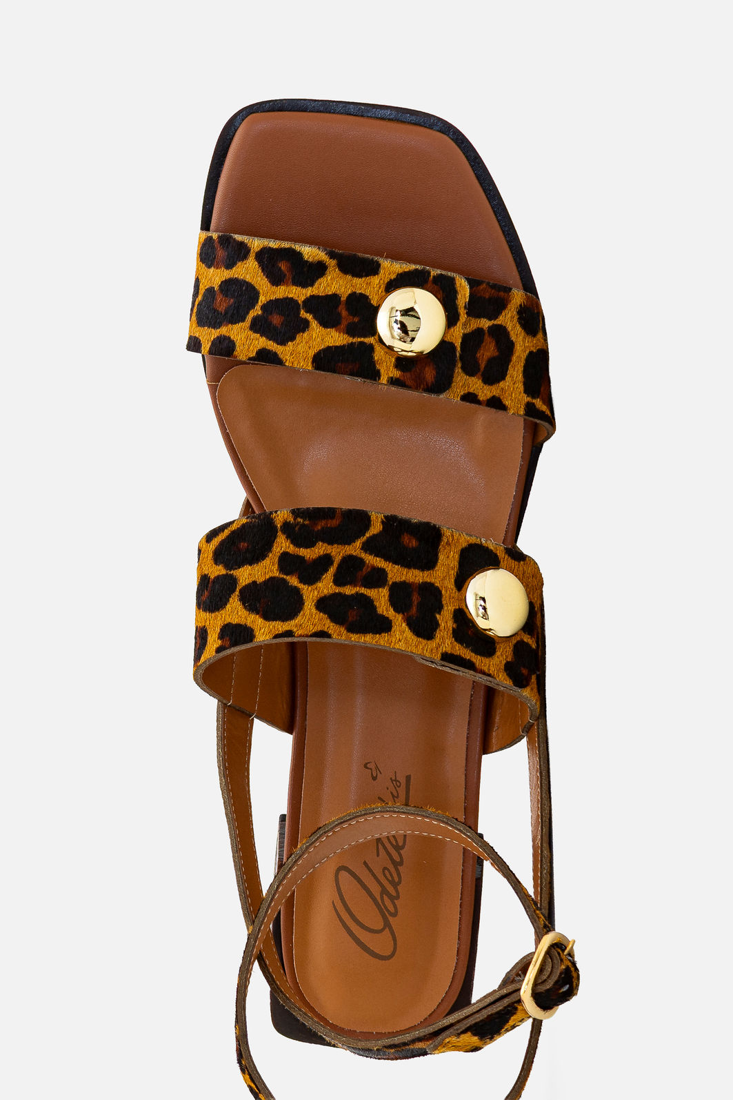 Marcante e sofisticada, esta sandália em couro com estampa onça é a escolha perfeita para quem busca um visual moderno com personalidade. As tiras largas valorizam o design e proporcionam um encaixe firme e elegante, enquanto o animal print traz um toque ousado na medida certa.