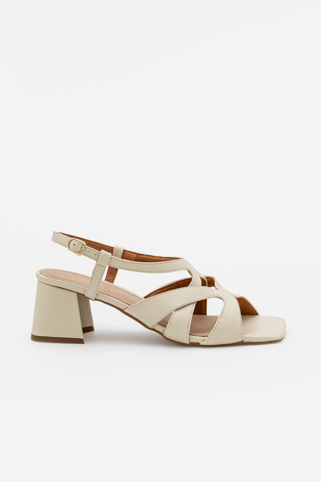 Elegante, confortável e atemporal, esta sandália em couro off white combina linhas delicadas com um design arquitetônico que valoriza os pés com sofisticação. As tiras bem posicionadas formam recortes fluidos, garantindo um visual leve e moderno sem abrir mão da segurança ao caminhar.