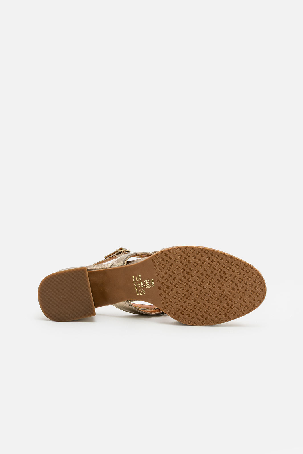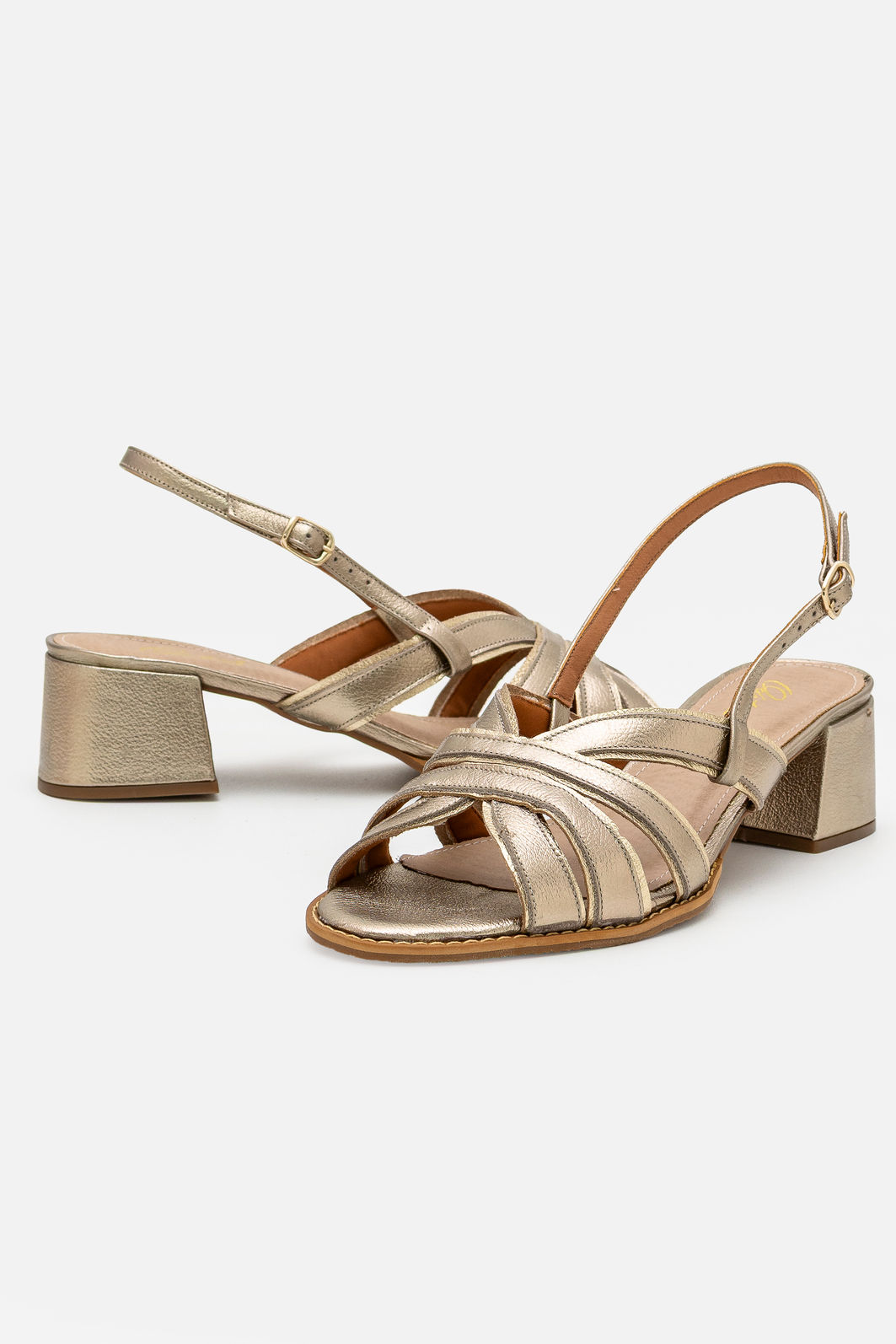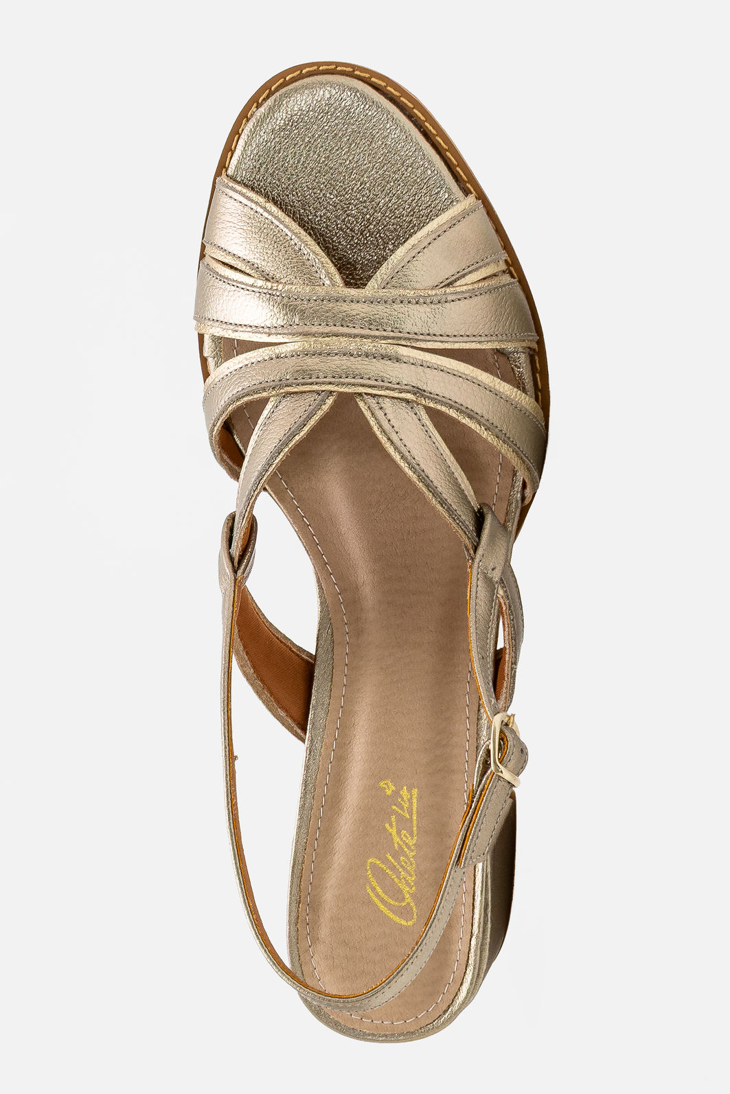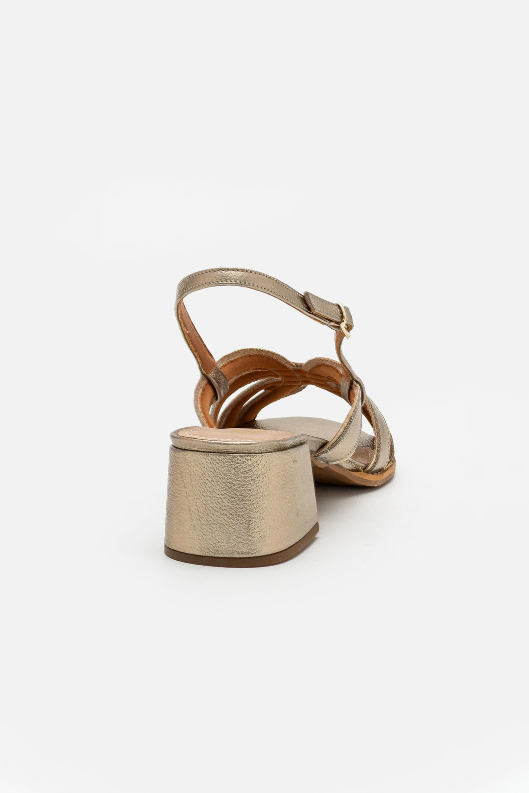 Elegante e atemporal, esta sandália em couro foi criada para mulheres que valorizam sofisticação aliada ao conforto. O design com tiras delicadamente cruzadas confere charme e feminilidade, enquanto o acabamento metalizado champagne adiciona um toque refinado e luminoso ao visual.
