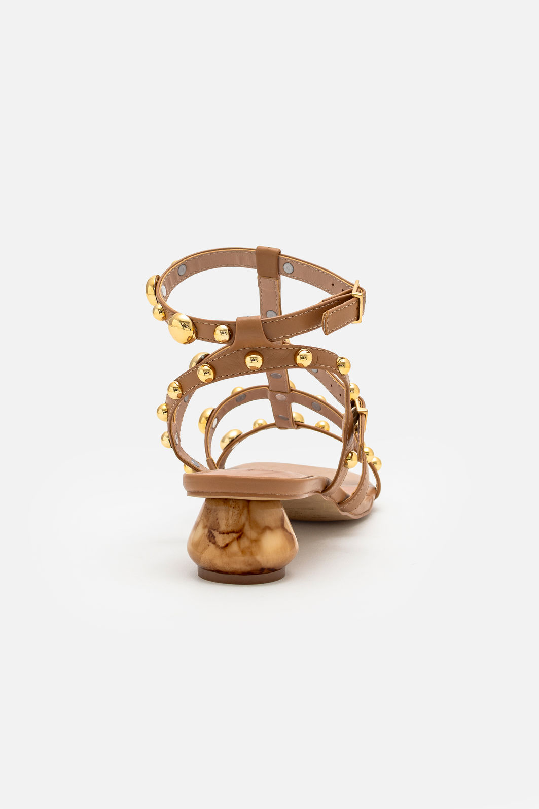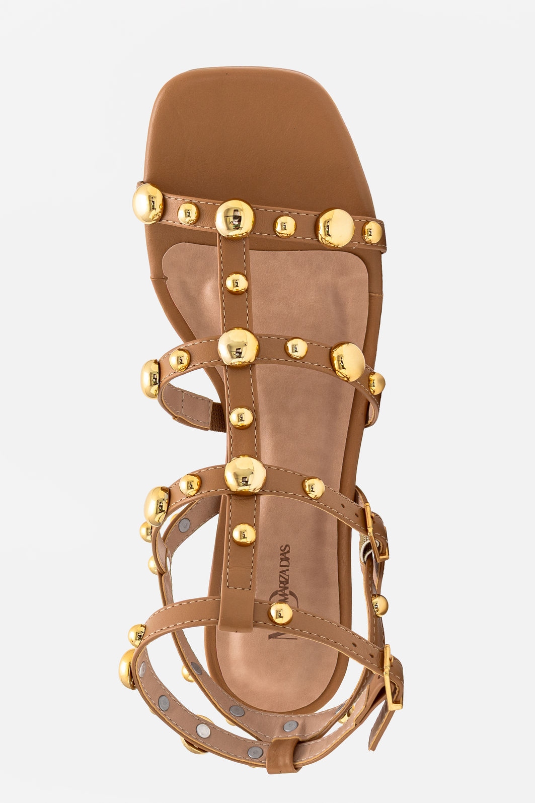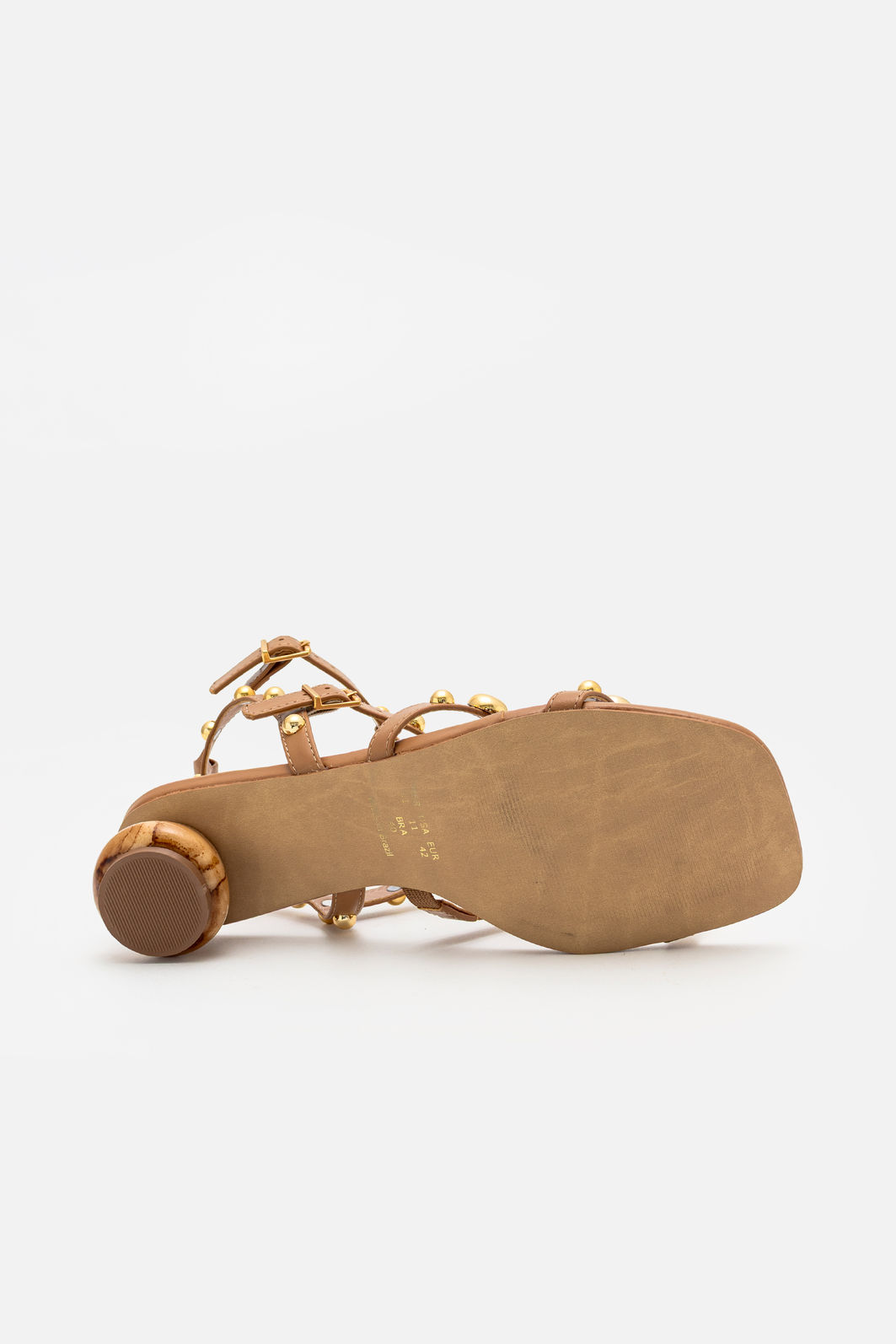 A Sandália Sofisticada com Enfeites Amêndoa é o equilíbrio perfeito entre estilo e personalidade. Seu design moderno traz tiras delicadas adornadas com esferas metálicas douradas, que criam um contraste elegante com o tom amêndoa e adicionam um toque de glamour contemporâneo.