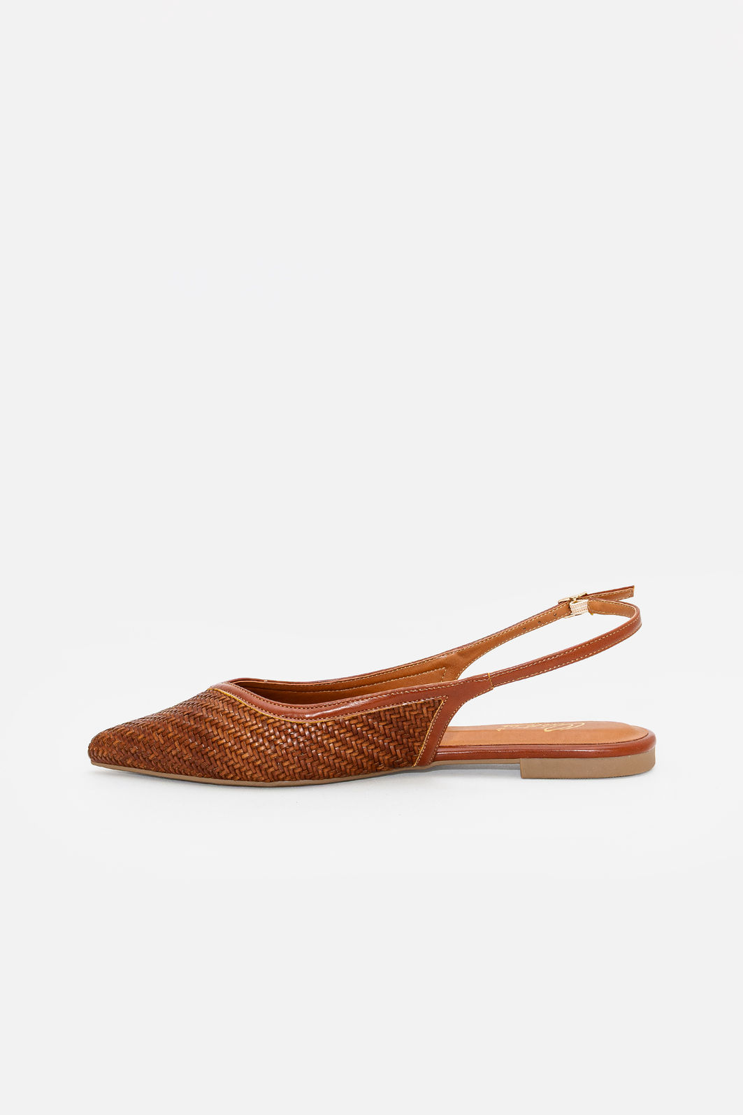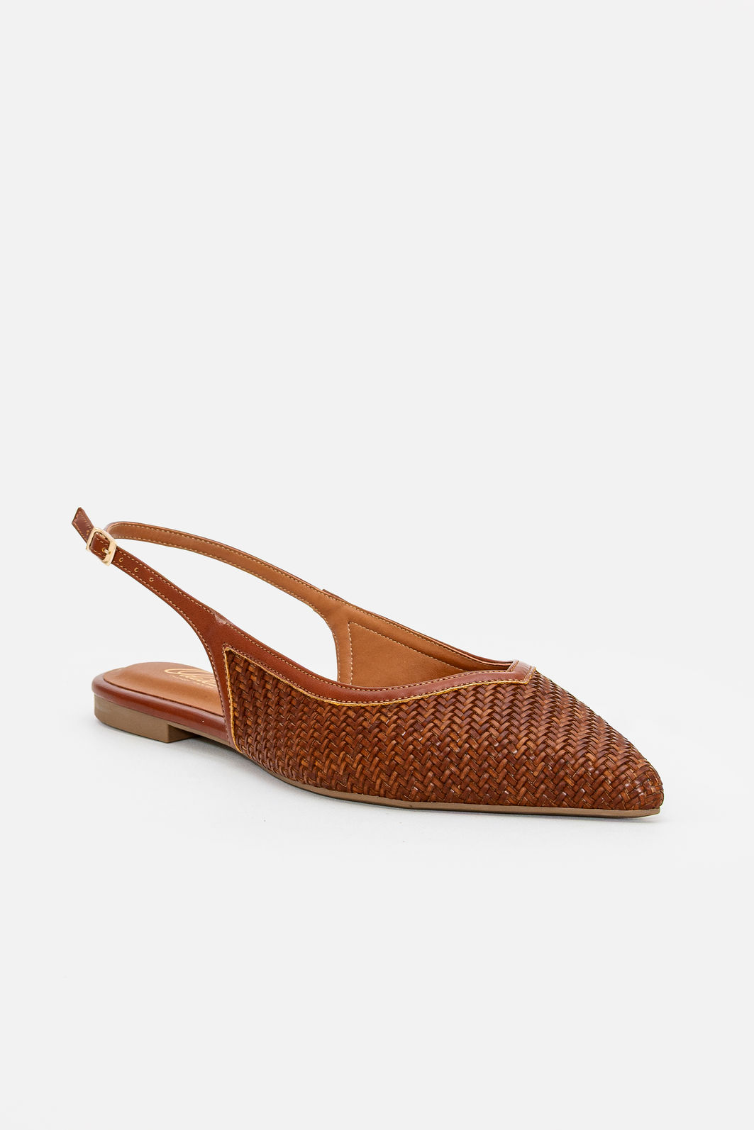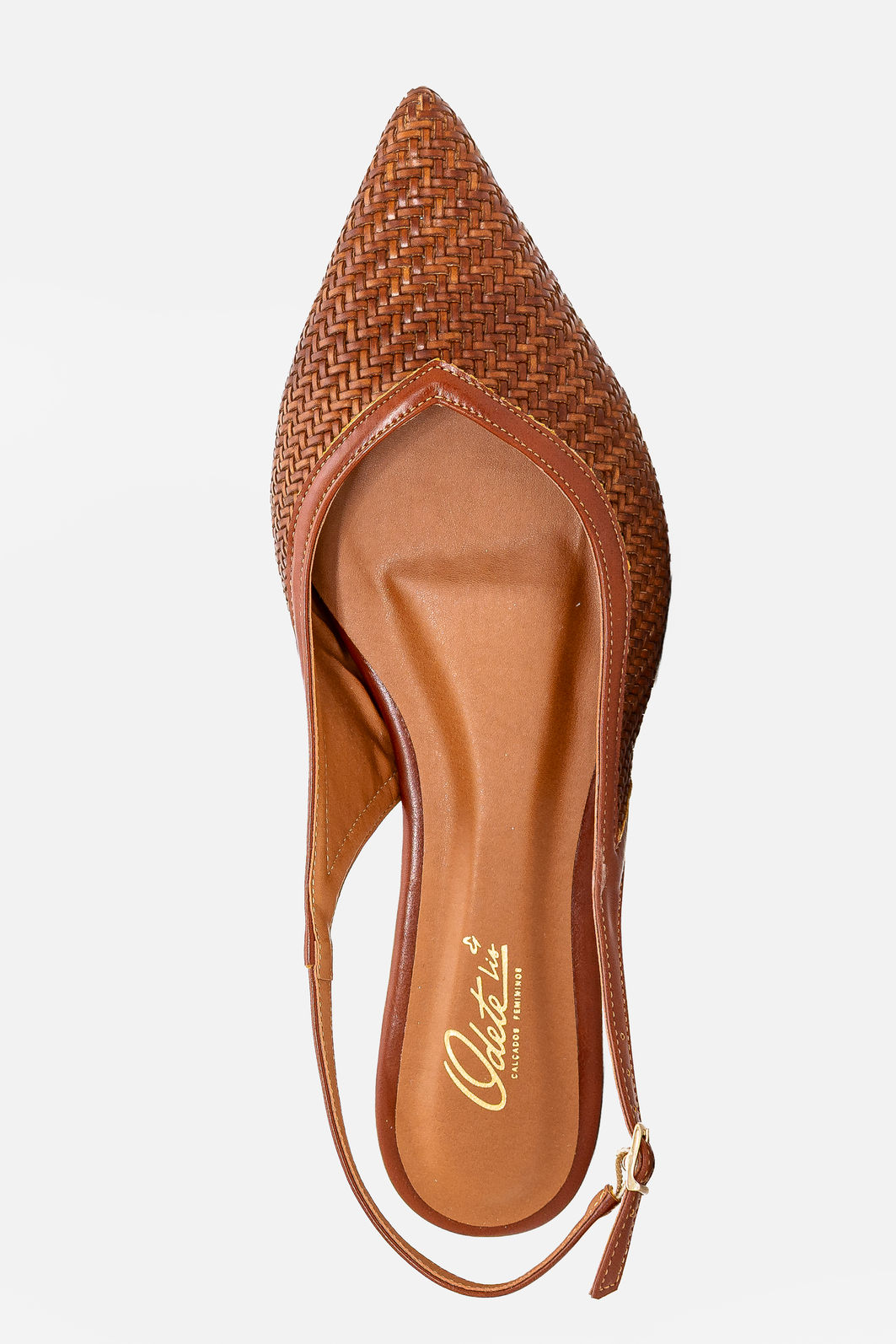 Produzido em material sintético de alta qualidade, oferece leveza, flexibilidade e fácil manutenção no dia a dia. A construção aberta no calcanhar com tira ajustável garante encaixe seguro e confortável, enquanto o bico levemente afinado proporciona uma silhueta mais alongada e feminina.