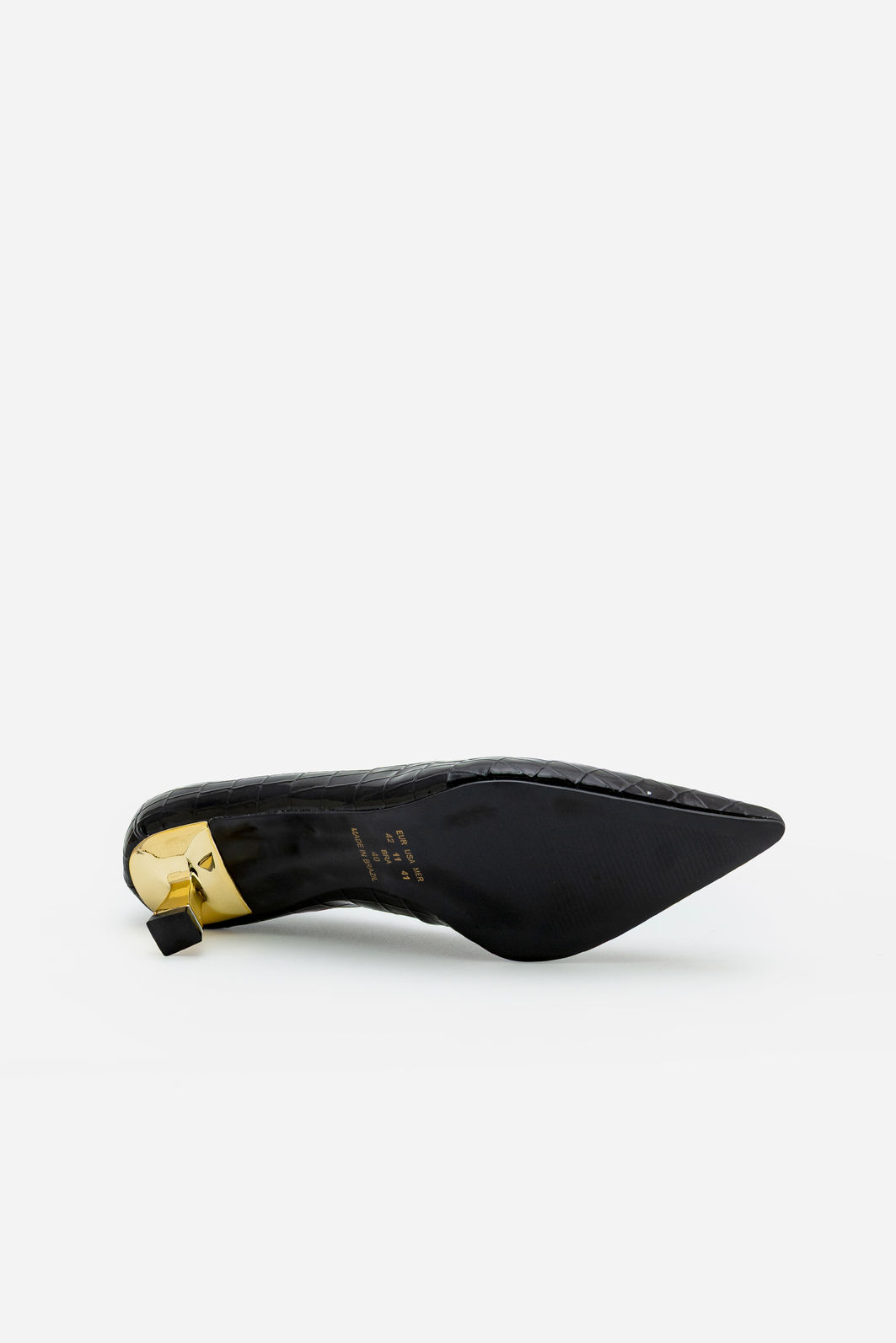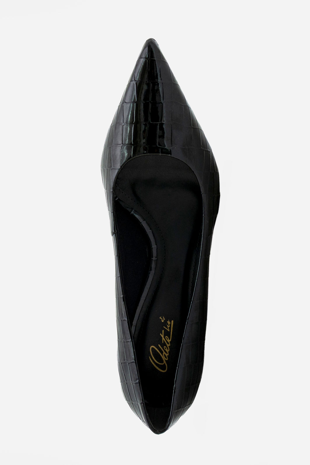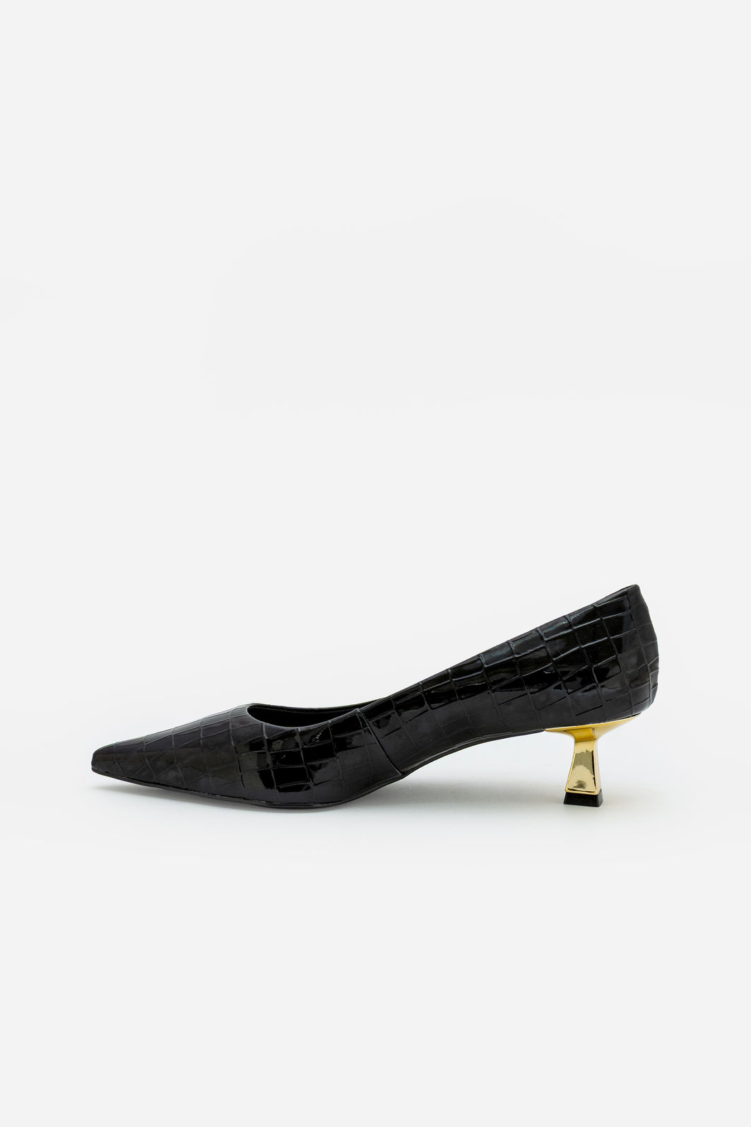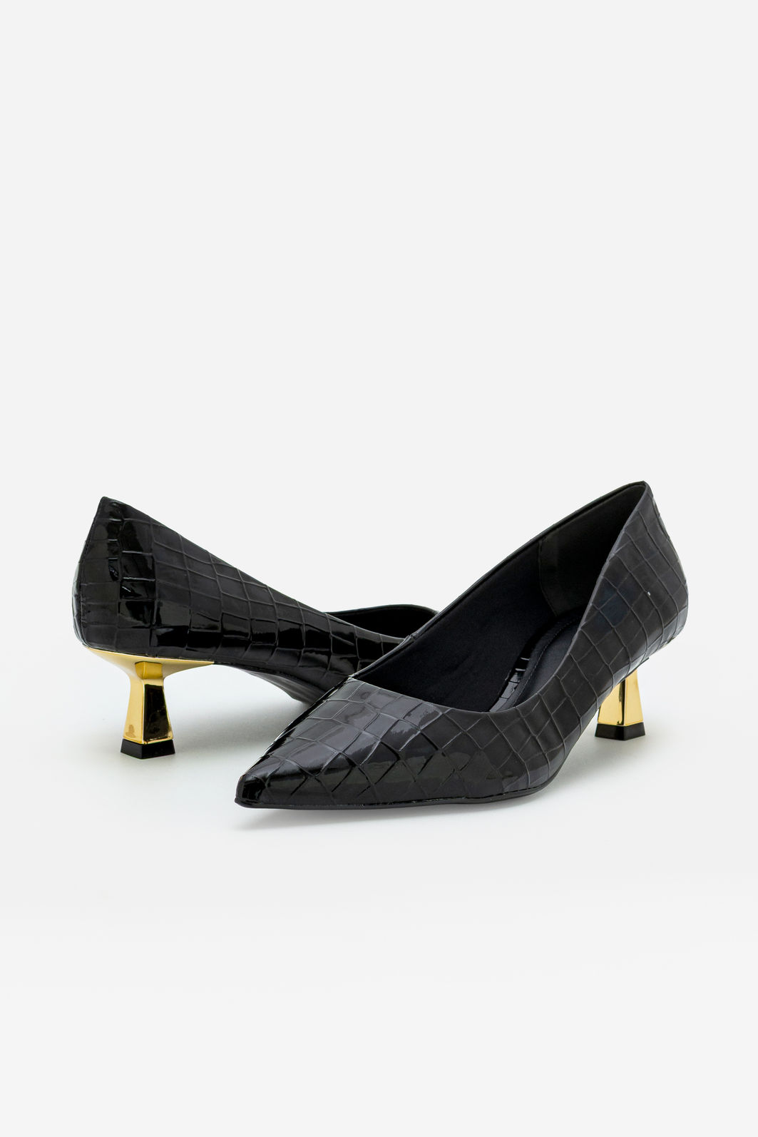O scarpin preto em croco verniz é um clássico revisitado com sofisticação contemporânea. A textura croco combinada ao brilho elegante do verniz cria um visual marcante e refinado, ideal para quem valoriza estilo com personalidade. O bico fino alonga a silhueta e confere um acabamento impecável ao look.