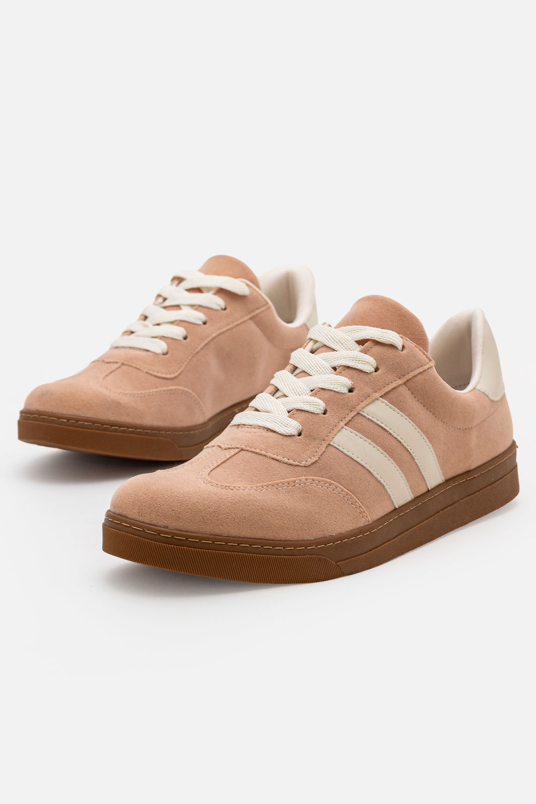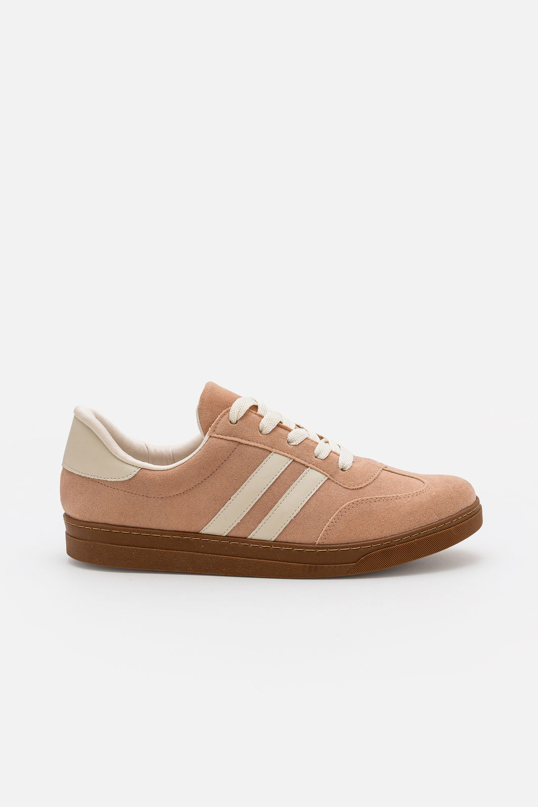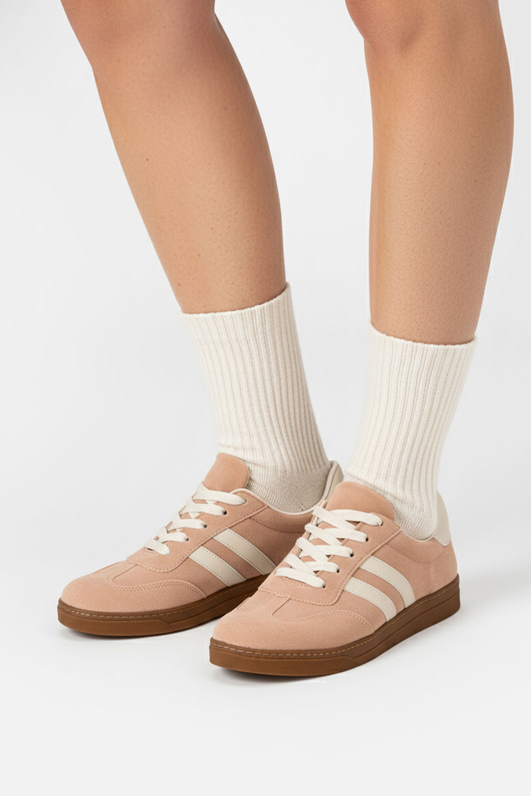 O Tênis Casual em Camurça Rose Antigo traduz a elegância do estilo minimalista com um toque delicado de cor. Seu design combina linhas clássicas e acabamento impecável em camurça macia, resultando em um visual leve e sofisticado. O tom rose antigo traz feminilidade com discrição, enquanto as listras laterais em tom neutro reforçam o equilíbrio visual e a estética atemporal.