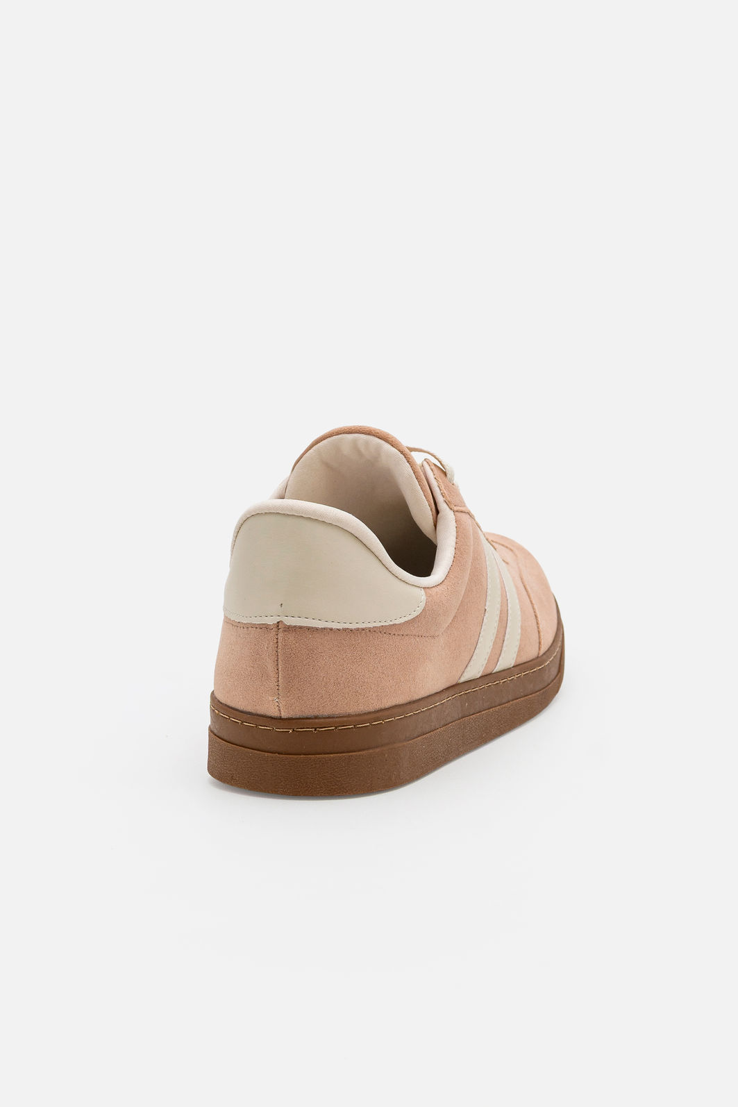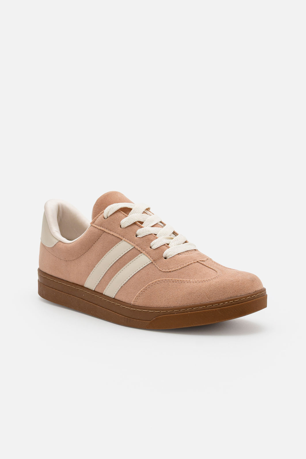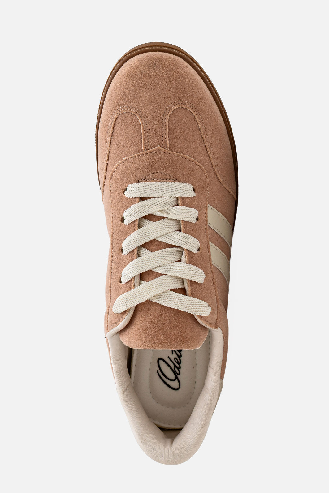 O Tênis Casual em Camurça Rose Antigo traduz a elegância do estilo minimalista com um toque delicado de cor. Seu design combina linhas clássicas e acabamento impecável em camurça macia, resultando em um visual leve e sofisticado. O tom rose antigo traz feminilidade com discrição, enquanto as listras laterais em tom neutro reforçam o equilíbrio visual e a estética atemporal.