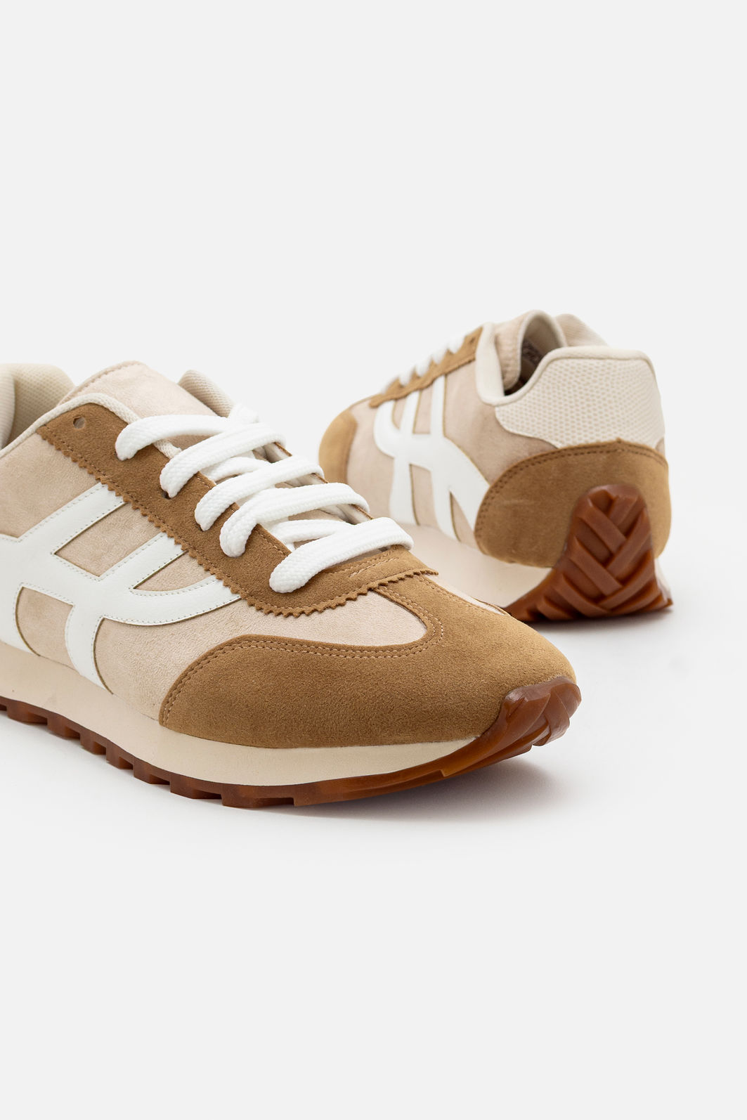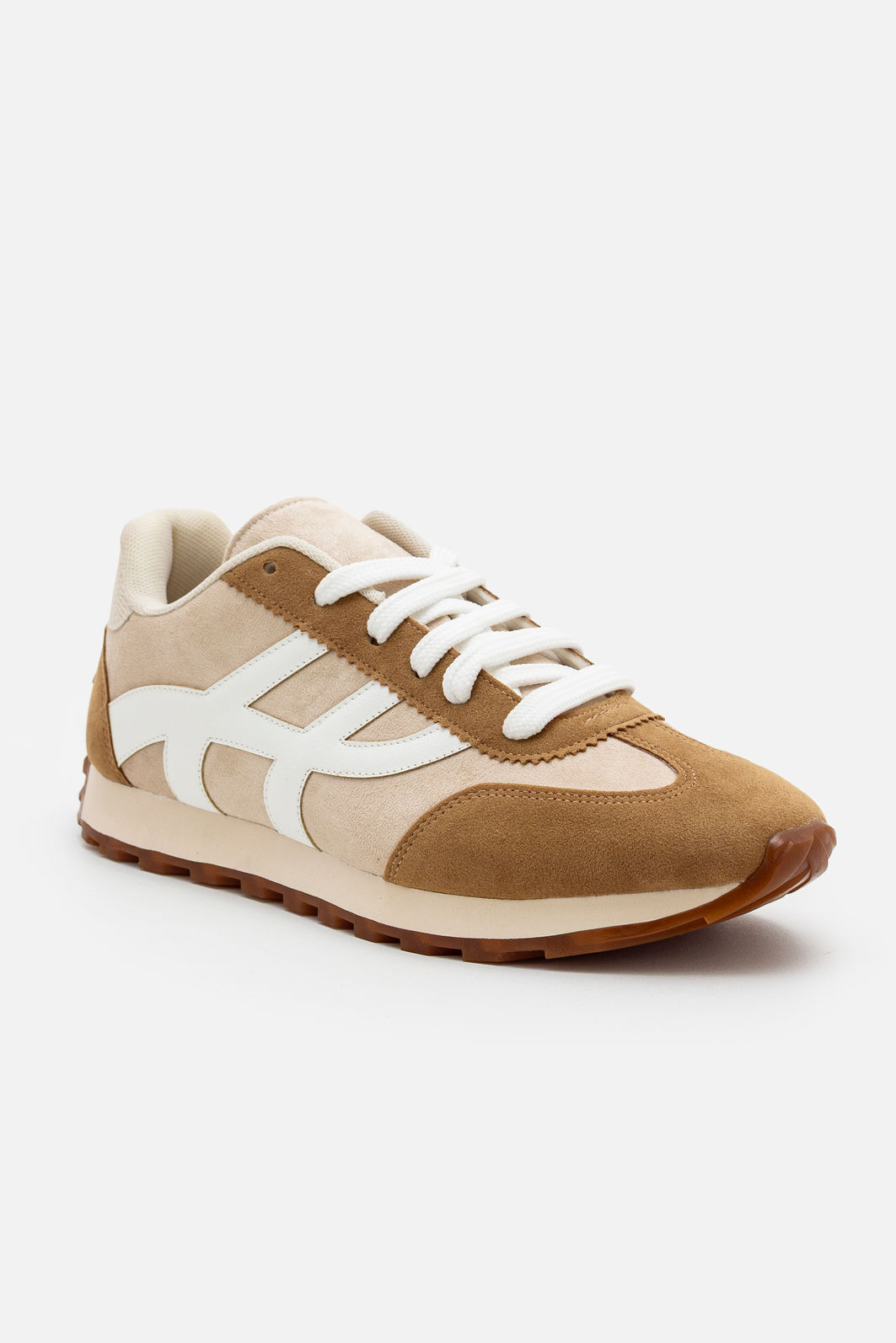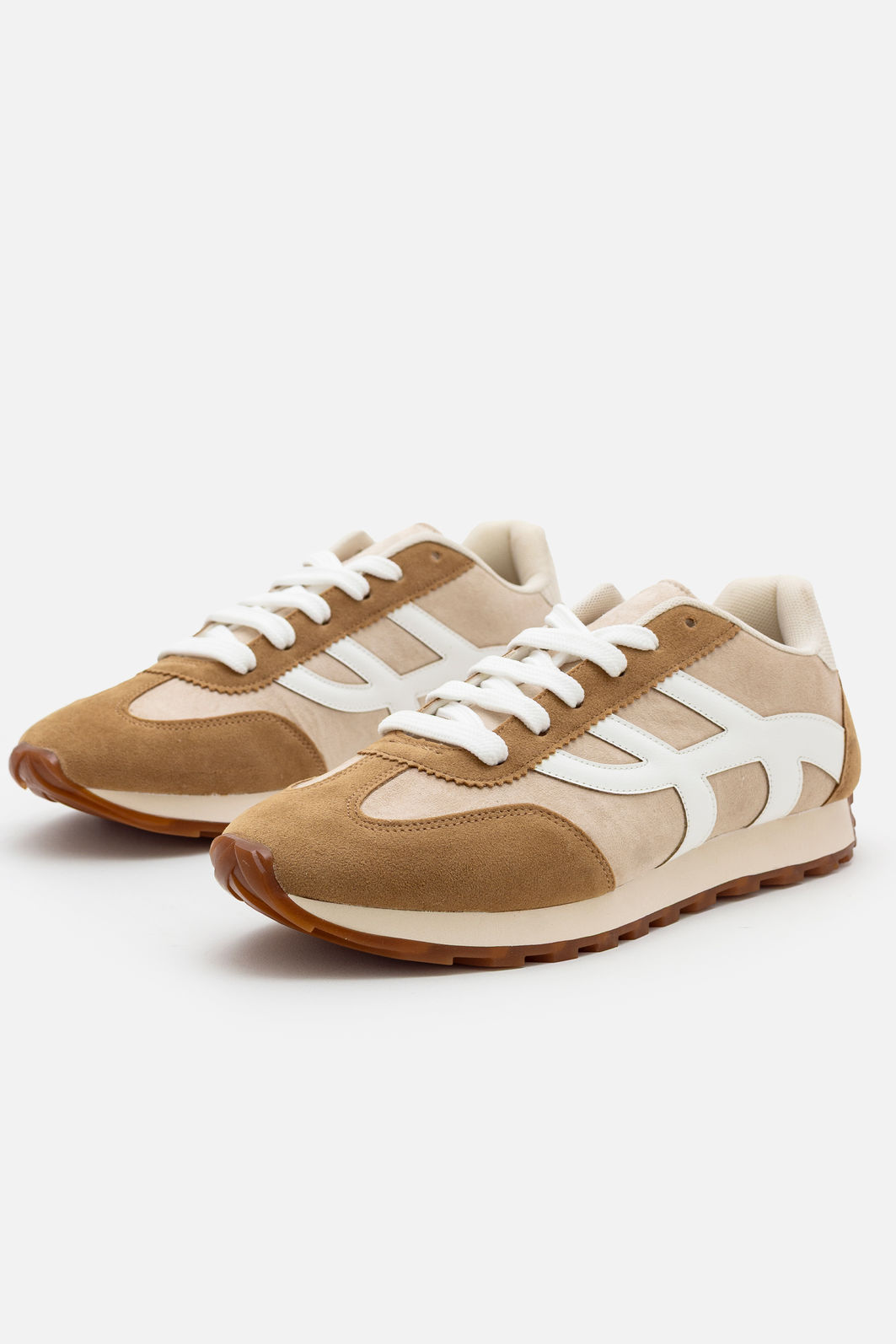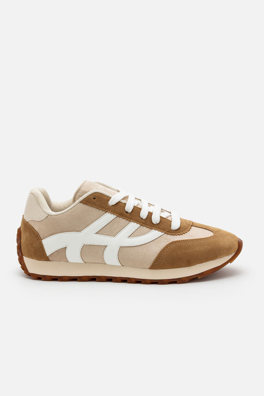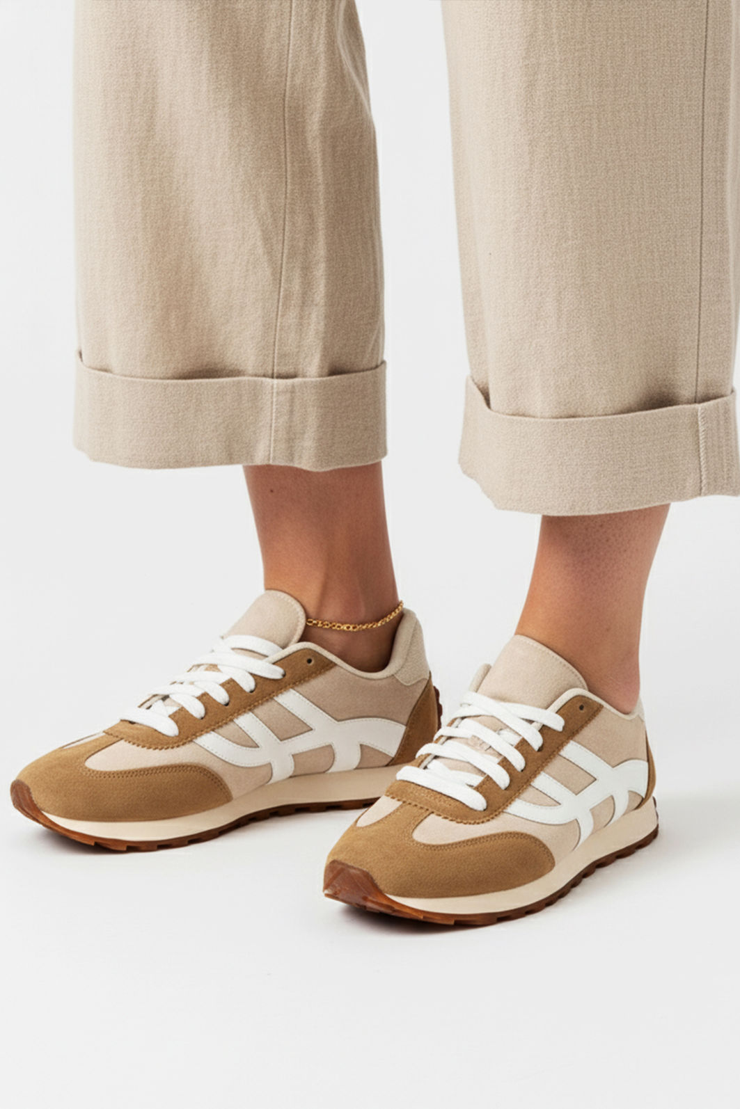 Com design moderno e um toque retrô irresistível, este tênis em camurça é a escolha ideal para quem valoriza estilo e conforto no dia a dia. A combinação de tons neutros em bege e branco cria um visual sofisticado e fácil de coordenar, perfeito para composições elegantes e descontraídas.